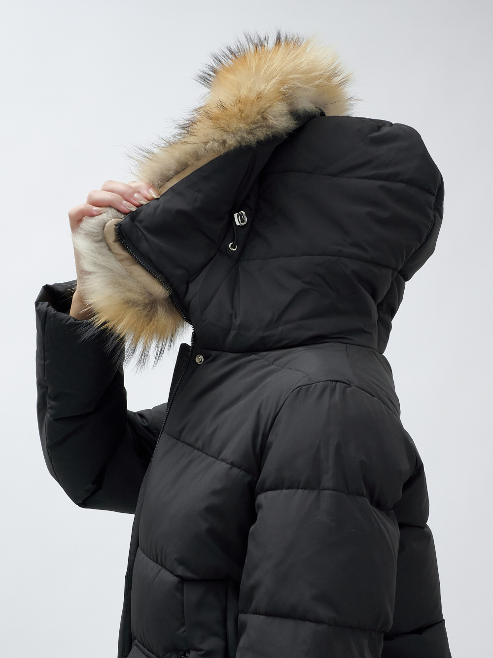 — Натуральный мех енота: Съемная опушка придает куртке шикарный вид и надежно защищает от холода. Вы можете легко менять образ в зависимости от настроения!