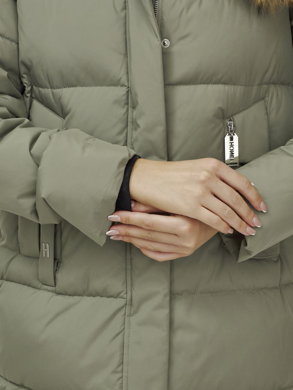 — Утягивающий объем фиксатор в подоле: Позволяет регулировать силуэт куртки, подчеркивая вашу фигуру и обеспечивая идеальную посадку.