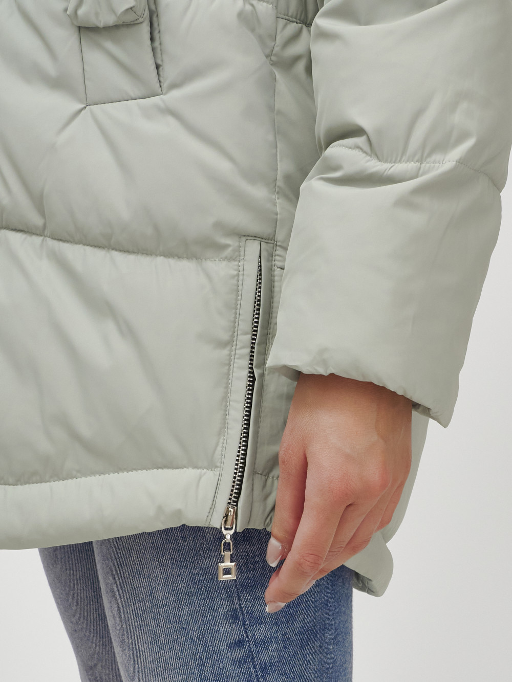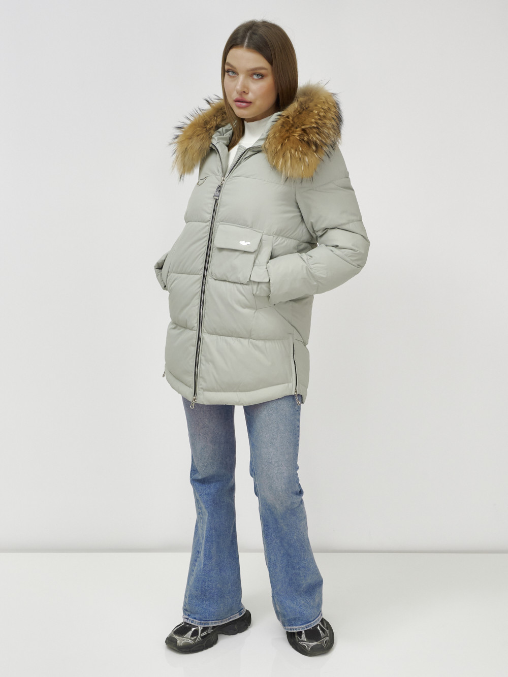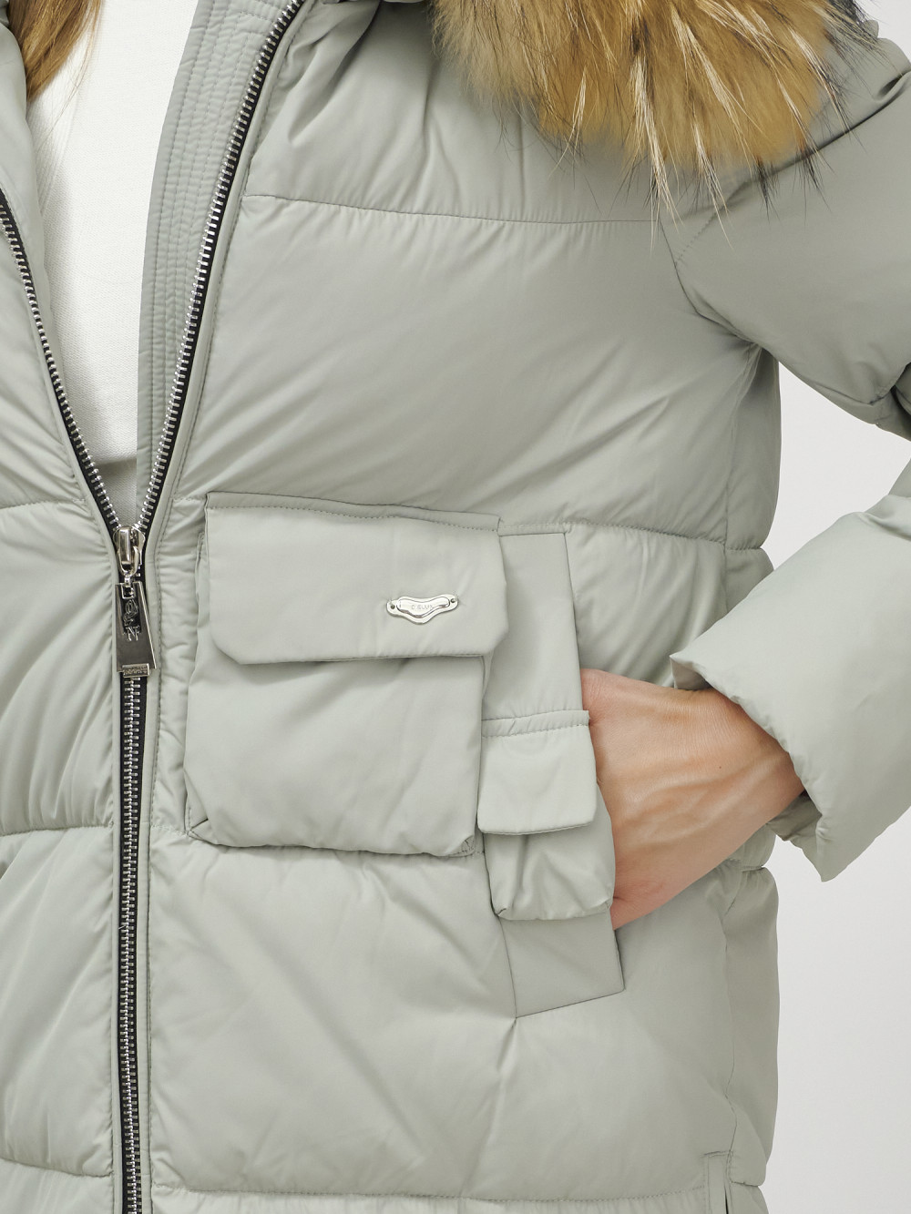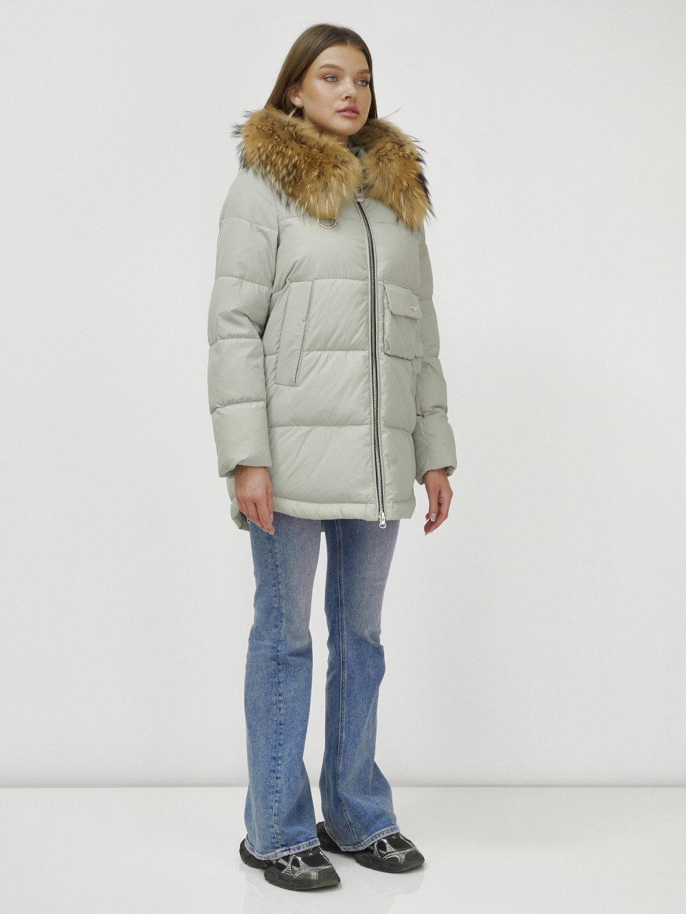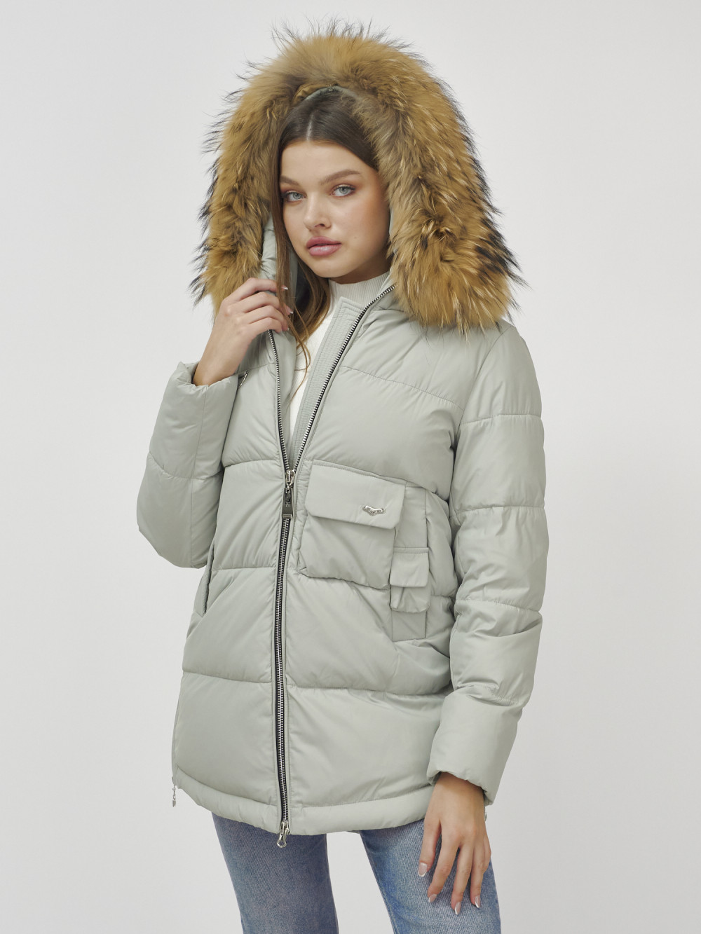 Куртка женская зимняя с мехом енот премиум класса светло-зеленого цвета 3146ZS — Visdeer