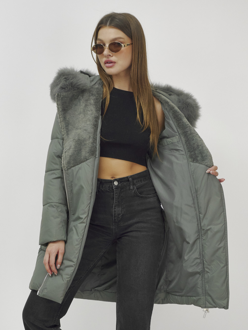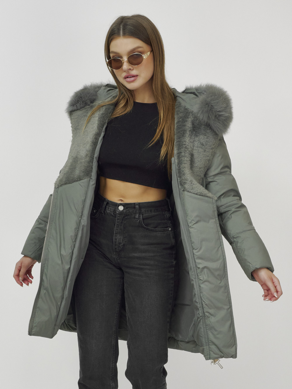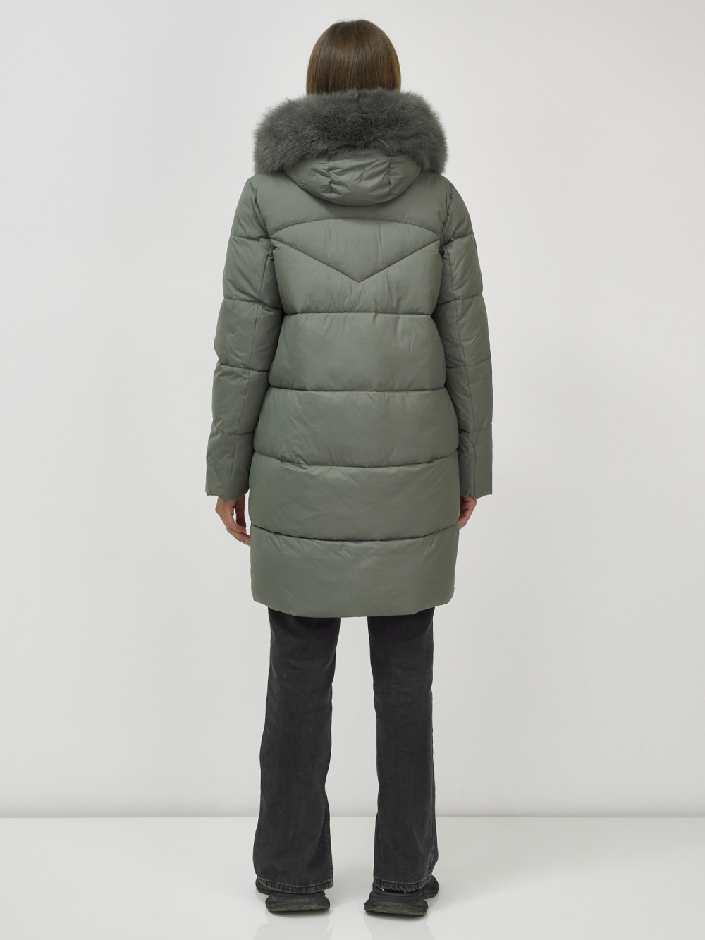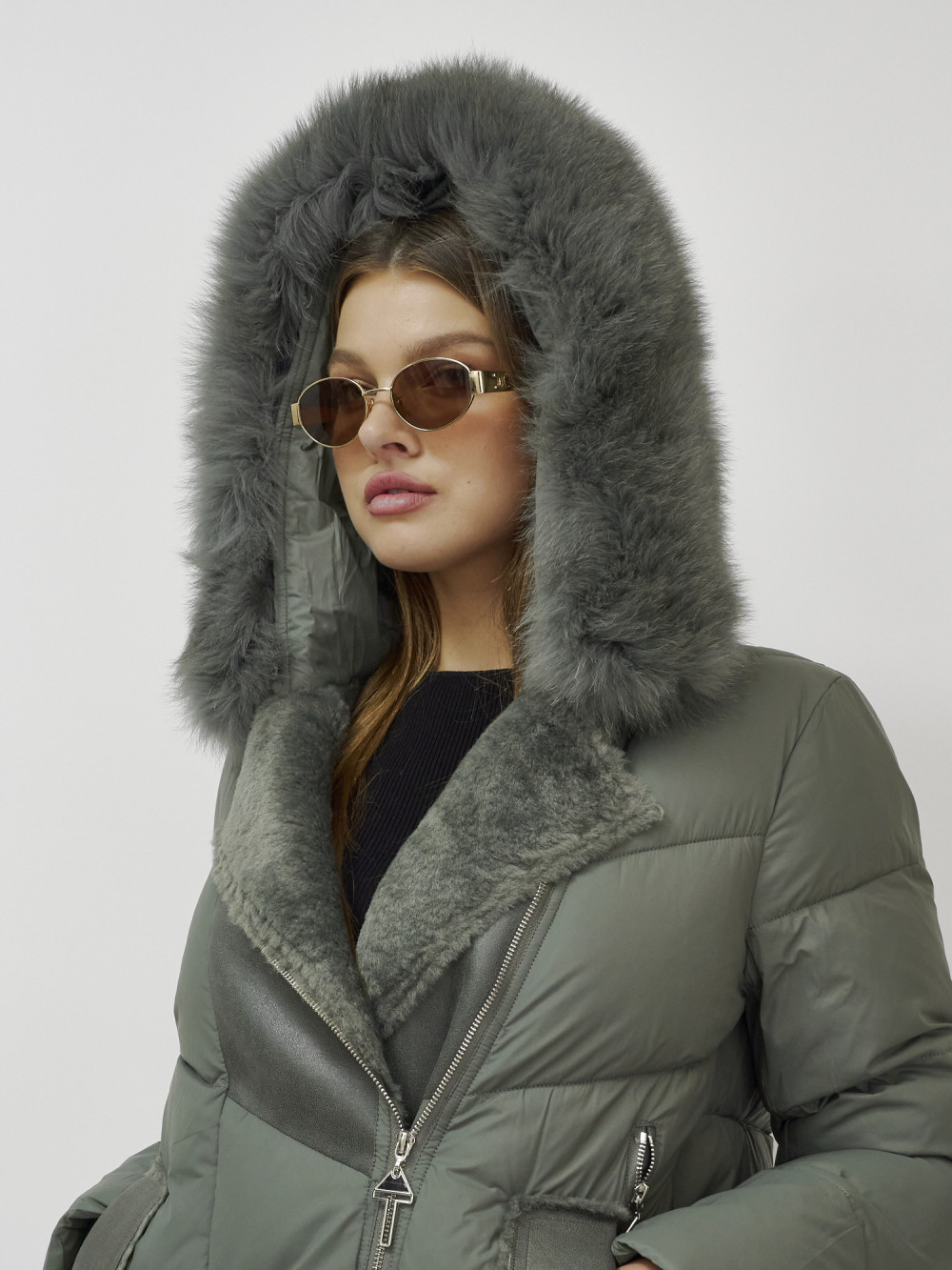 Куртка женская зимняя с мехом енот премиум класса зеленого цвета 3132Z — Visdeer