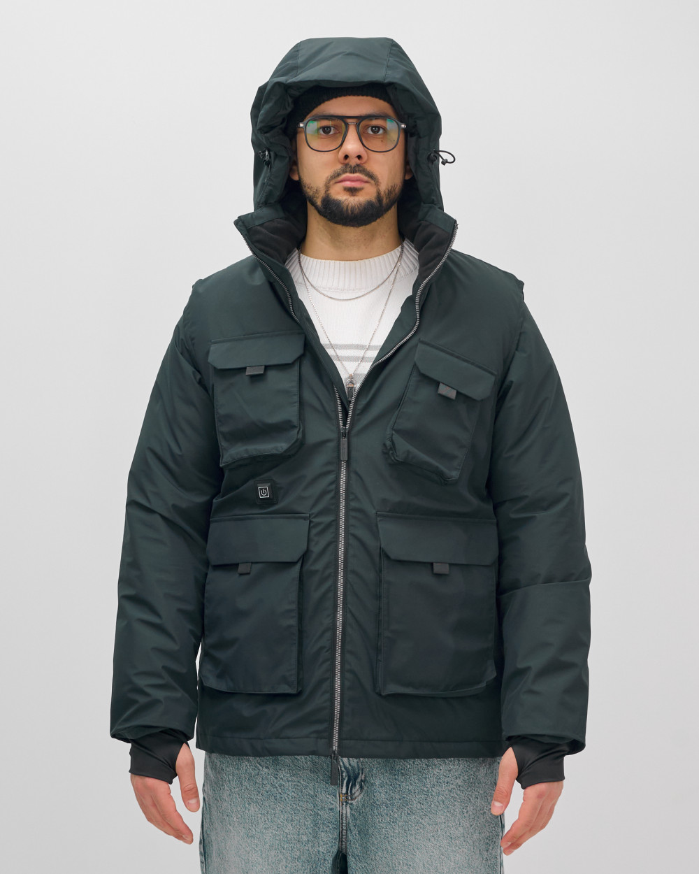 Трансформер 2 в 1. Куртка-жилетка с подогревом – это современная одежда, которая обеспечивает дополнительную защиту от холода и сохраняет тепло в течение длительного времени. Куртка 2 в 1 идеально подходит для тех, кто проводит много времени на открытом воздухе или занимается активными видами спорта в холодные времена года. Куртка с подогревом – это одежда, способная сохранять тепло и защищать от холода. Куртка сочетает в себе комбинацию из двух изделий куртки и жилетки. Съемные рукава позволяют меняться изделию по Вашему усмотрению. Куртка влагостойкая и ветрозащитная. Заряжается от пауэрбанка и имеет специальный нагревательный элемент, который работает на основе термоэлектрической подкладки. Кнопка включения находится у правого кармана. Пауэрбанк подключается внутри. Это позволяет сохранять тепло внутри куртки и предотвращать его выход наружу. Куртка с подогревом удобна и функциональна, с накладными карманами для хранения вещей, регулируемым съемным капюшоном и манжетами, чтобы помочь вам подстроиться под погоду. Она также водонепроницаемая и ветрозащитная, чтобы обеспечить вам дополнительную защиту от непогоды. Одна из особенностей куртки с подогревом – это возможность ее использования с помощью аккумулятора или пауэрбанка. Это позволяет вам не зависеть от розетки и использовать куртку в любом месте и в любое время. Аккумуляторы обычно имеют различную емкость и время работы, поэтому вы можете выбрать подходящий вариант для себя. Куртка с подогревом также может быть стильным аксессуаром, который поможет вам выглядеть модно и трендово. В целом, жилет с подогревом – это отличное решение для тех, кто хочет быть защищенным от холода и сохранять комфортную температуру в любых погодных условиях. Она сочетает в себе функциональность, стиль и инновационные технологии, делая ее идеальным выбором для активного образа жизни и повседневного использования. Желаем Вам позитива и крепкого здоровья. Уверены, Вы по достоинству оцените высокое качество нашей продукции.