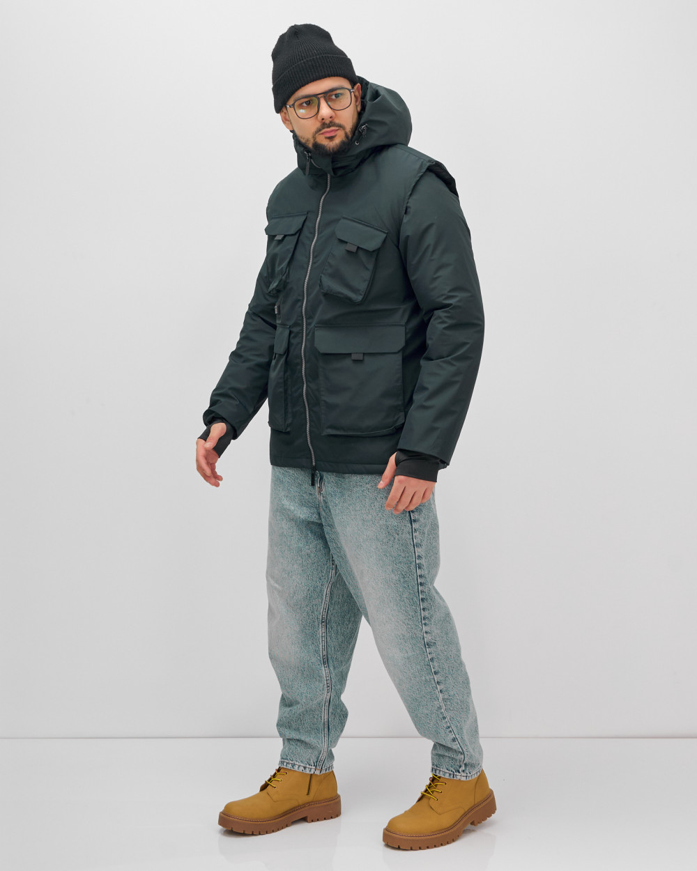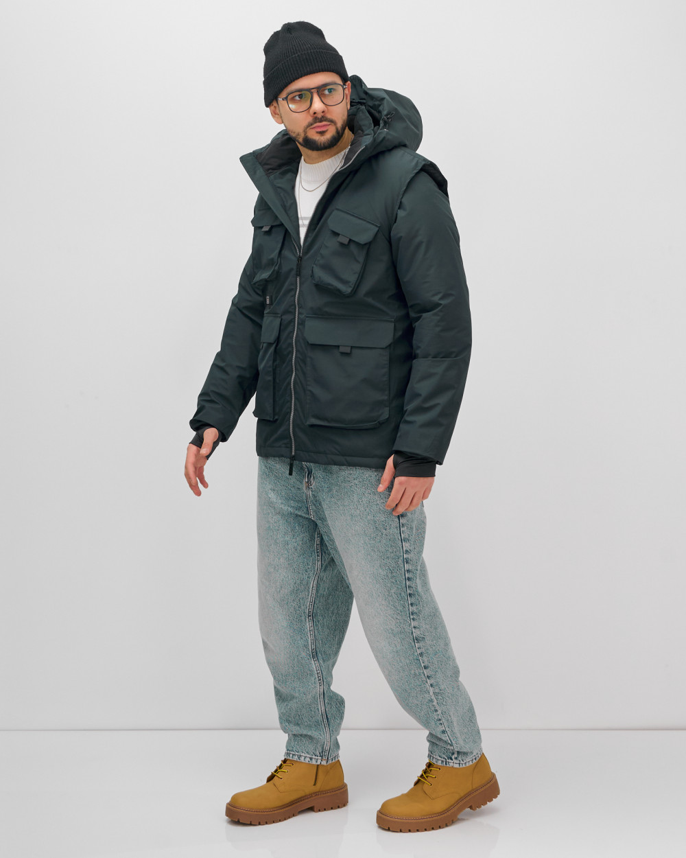 Куртка — жилетка трансформер с подогревом 2 в 1 мужская зимняя темно-синего цвета 6668TS