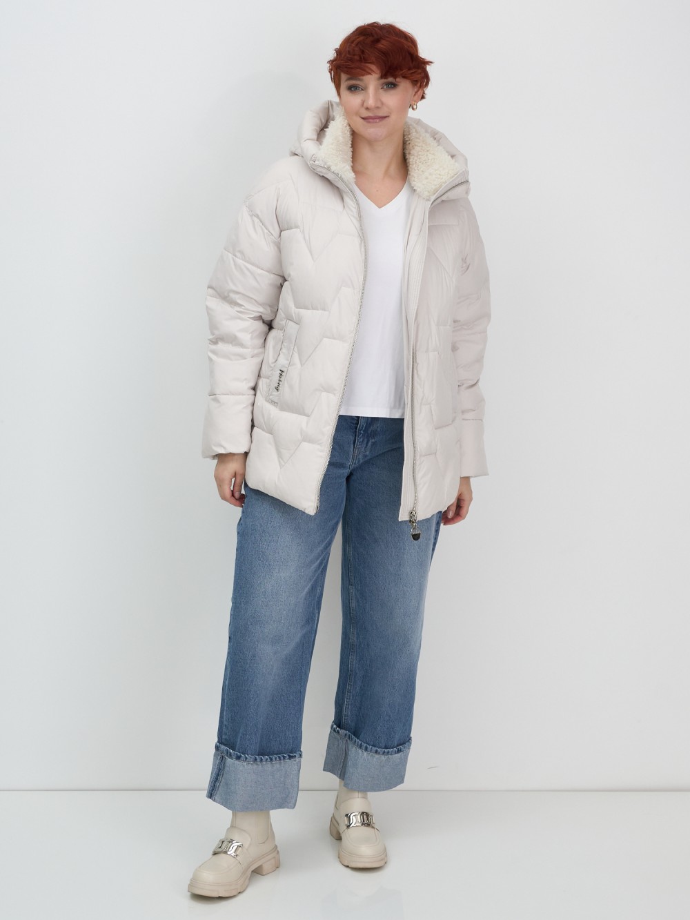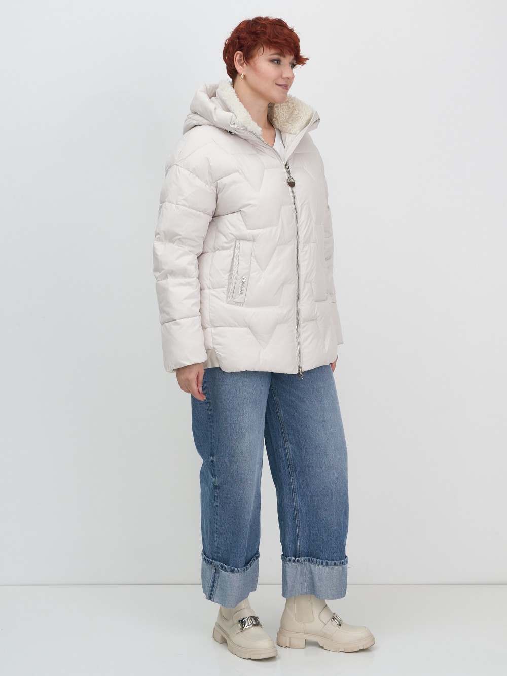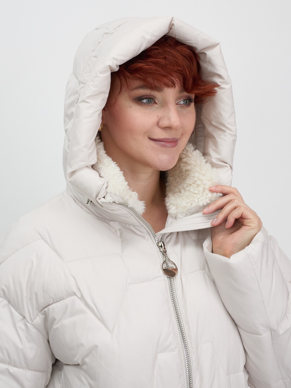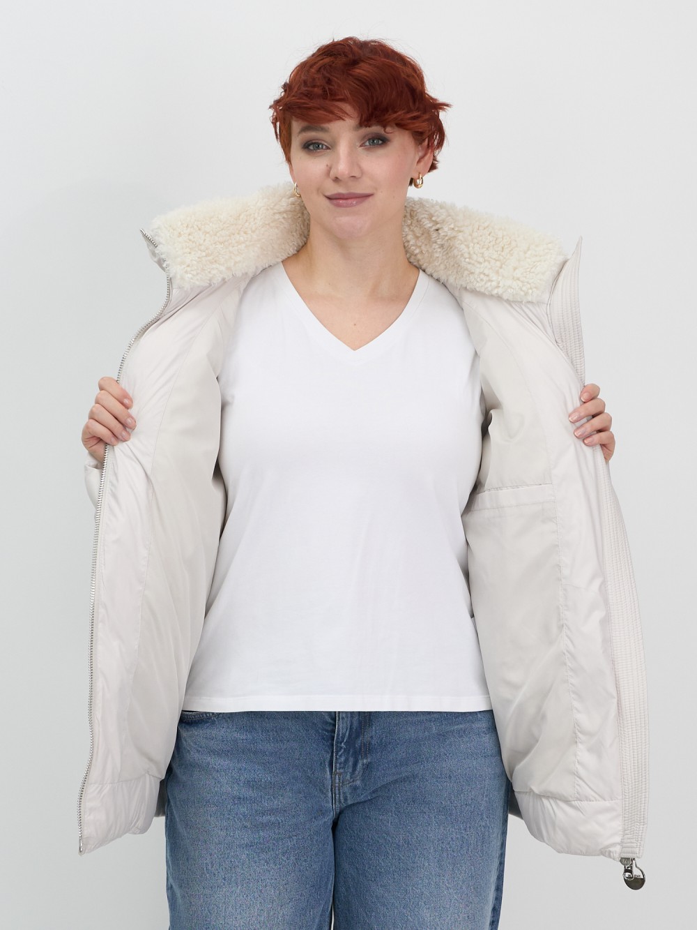 Куртка зимняя женская из овчина стильная и модная бежевого цвета 7309B — Visdeer