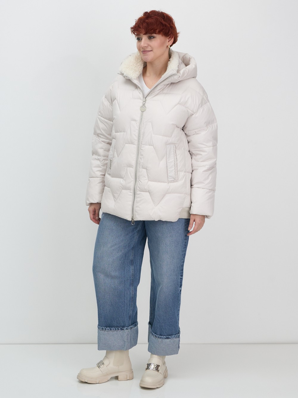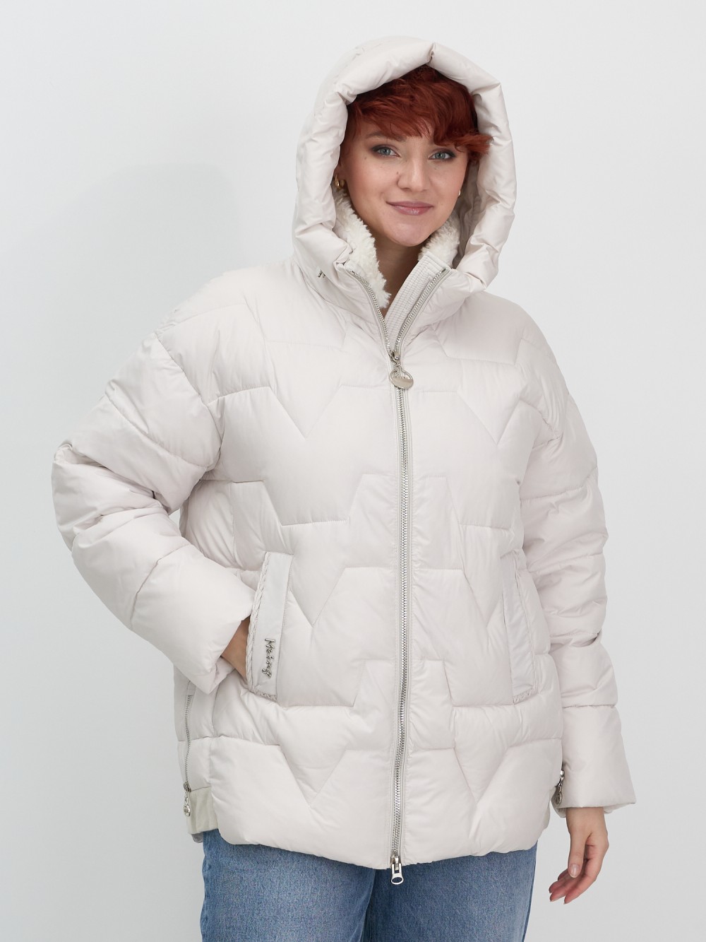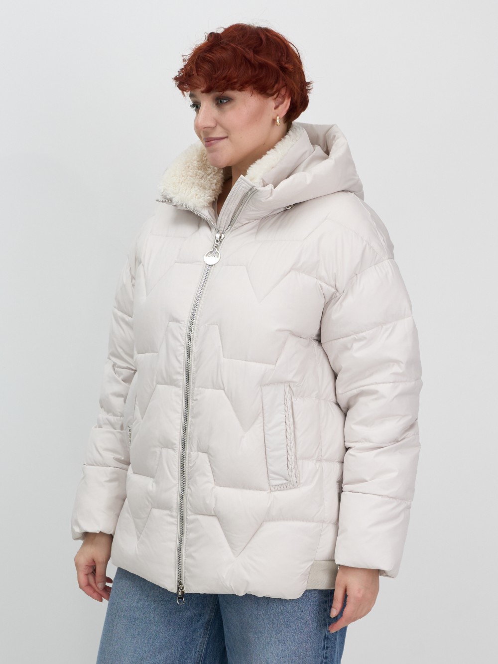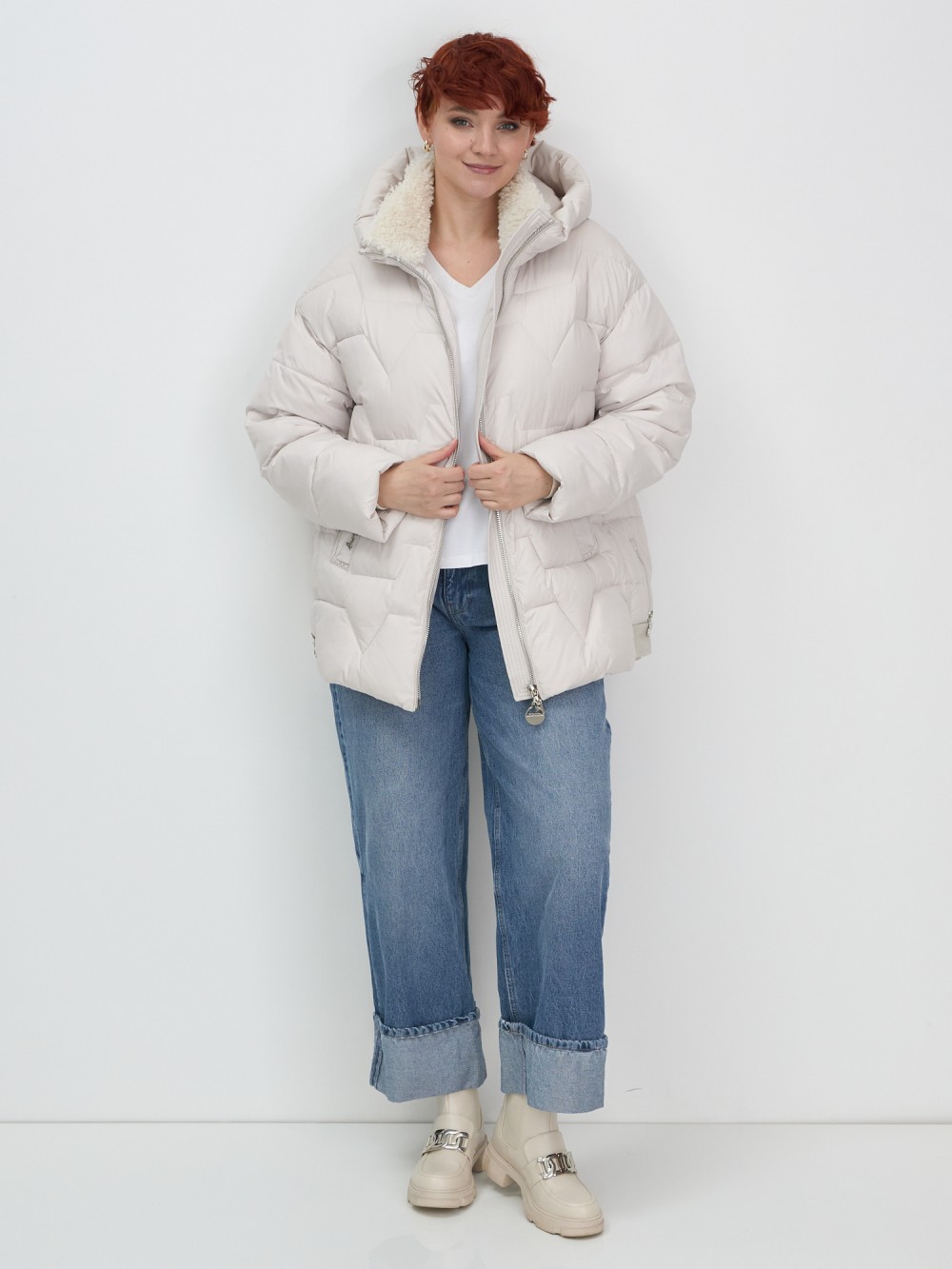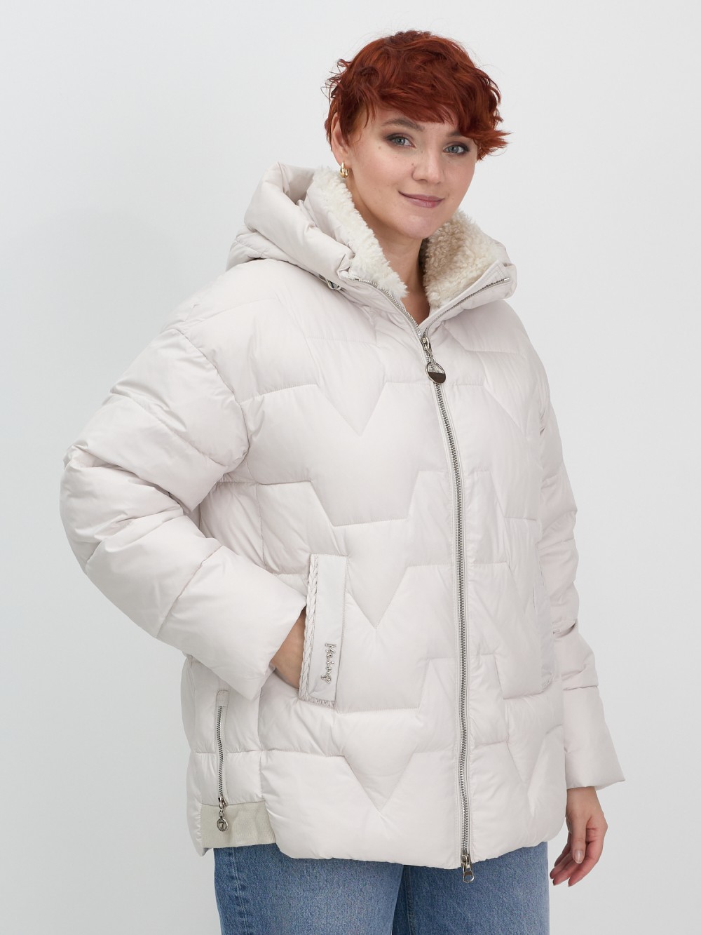 Куртка зимняя женская из овчина стильная и модная бежевого цвета 7309B — Visdeer