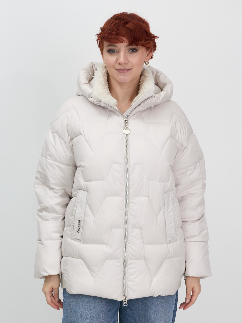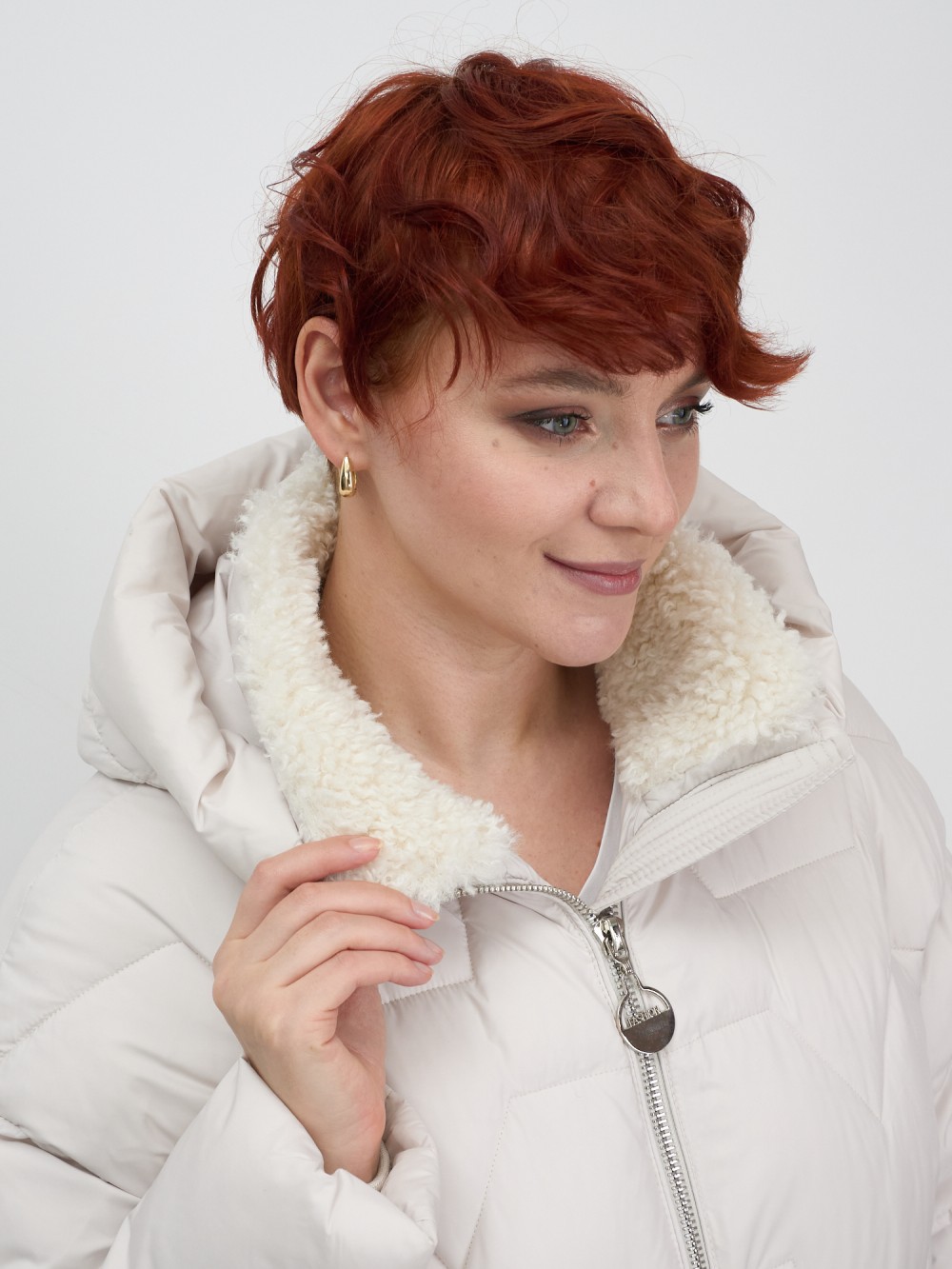 Куртка зимняя женская из овчина стильная и модная бежевого цвета 7309B