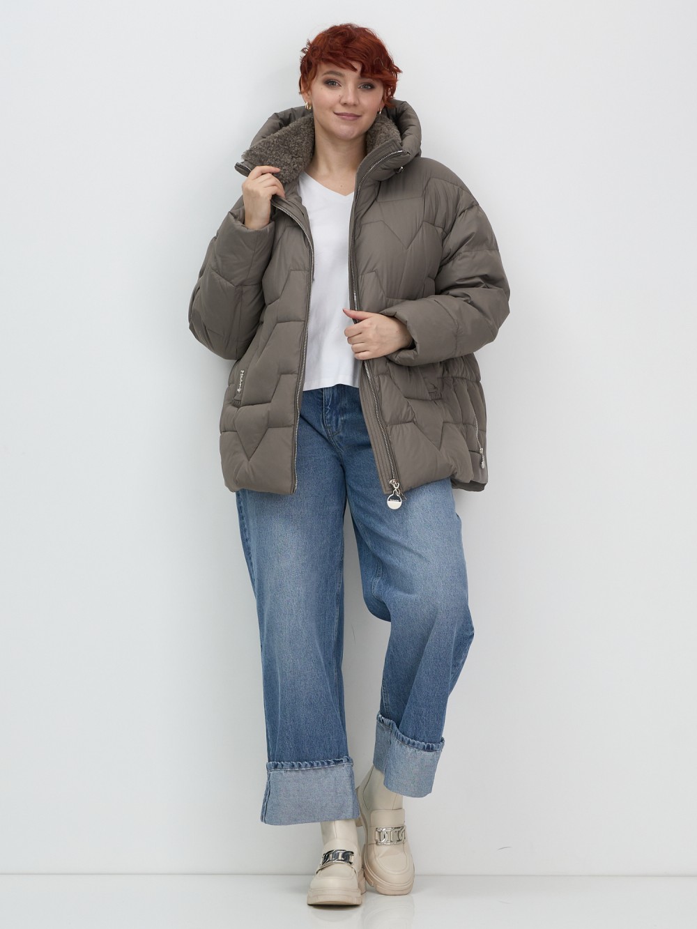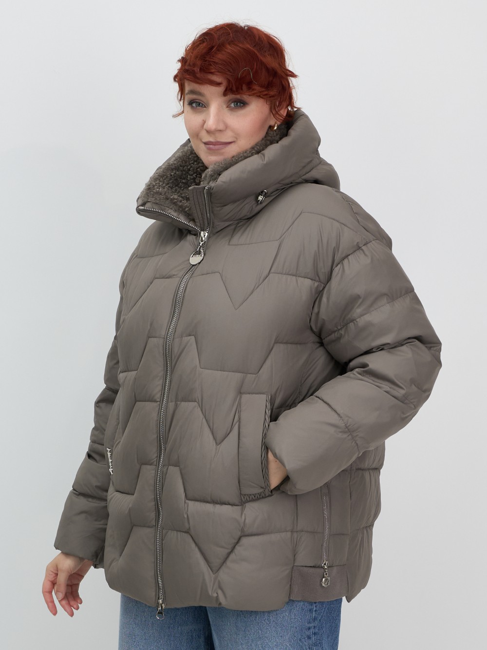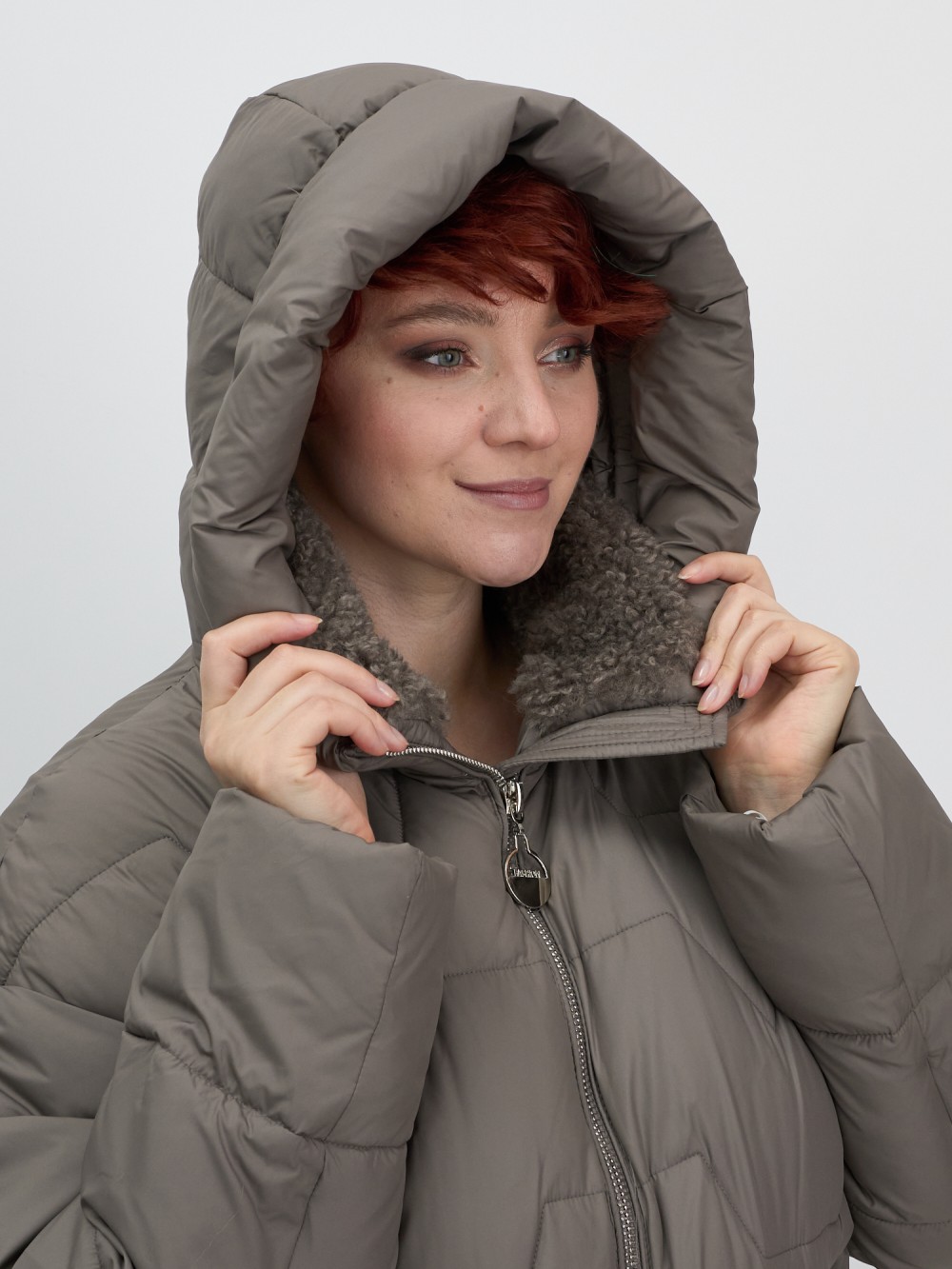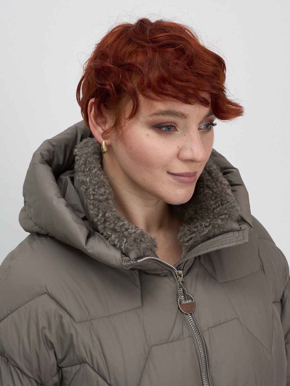 Куртка зимняя женская из овчина стильная и модная коричневого цвета 7309K — Visdeer