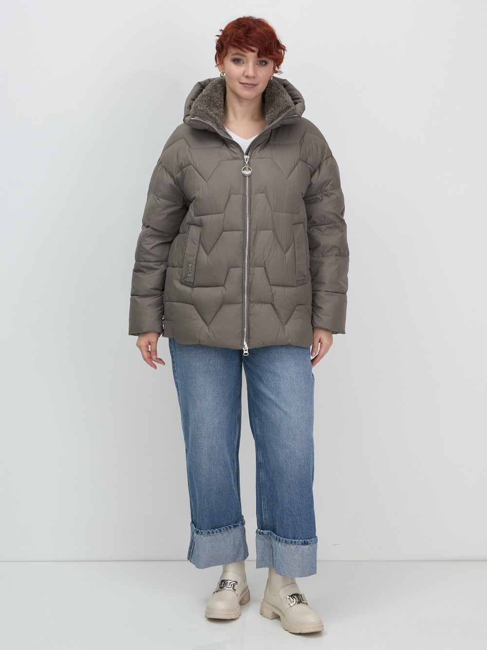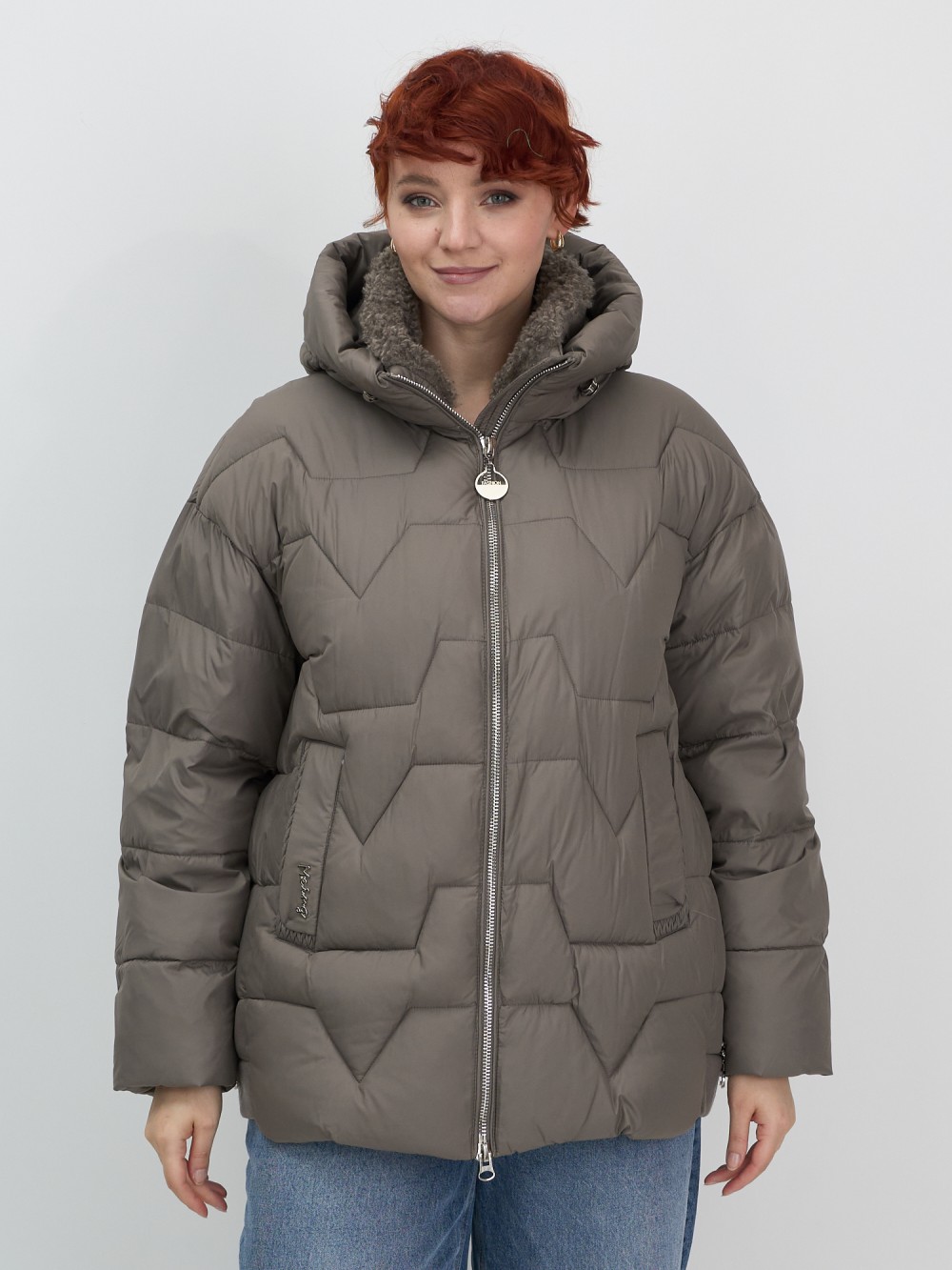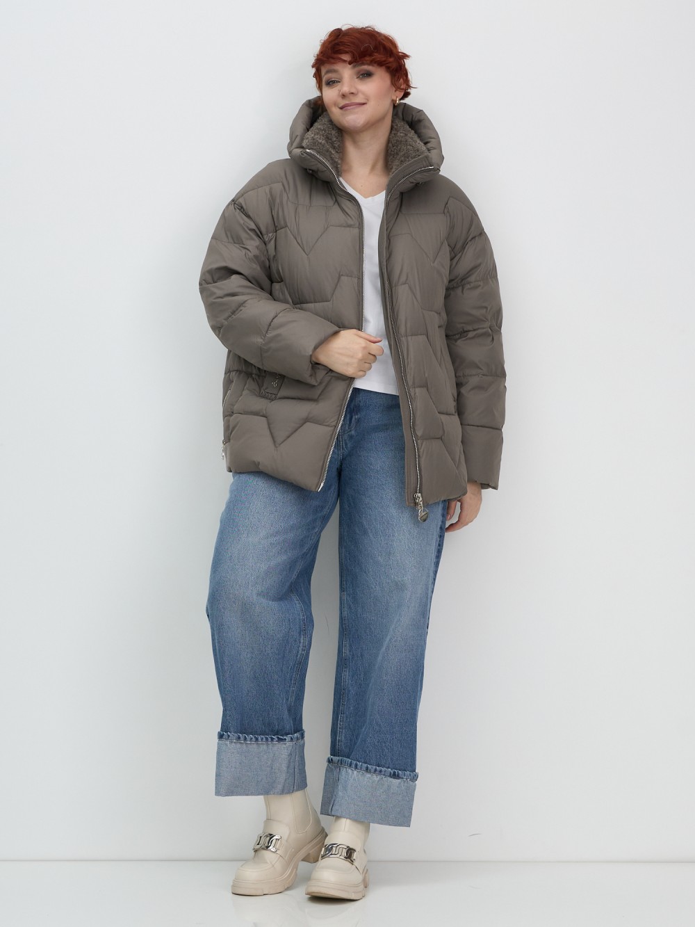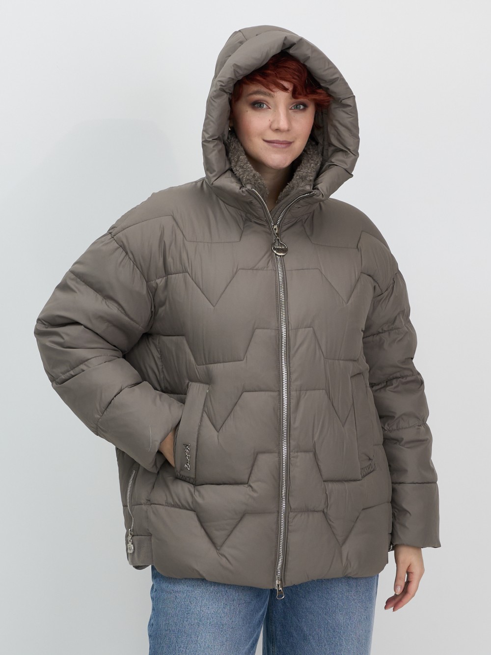 Куртка зимняя женская из овчина стильная и модная коричневого цвета 7309K — Visdeer