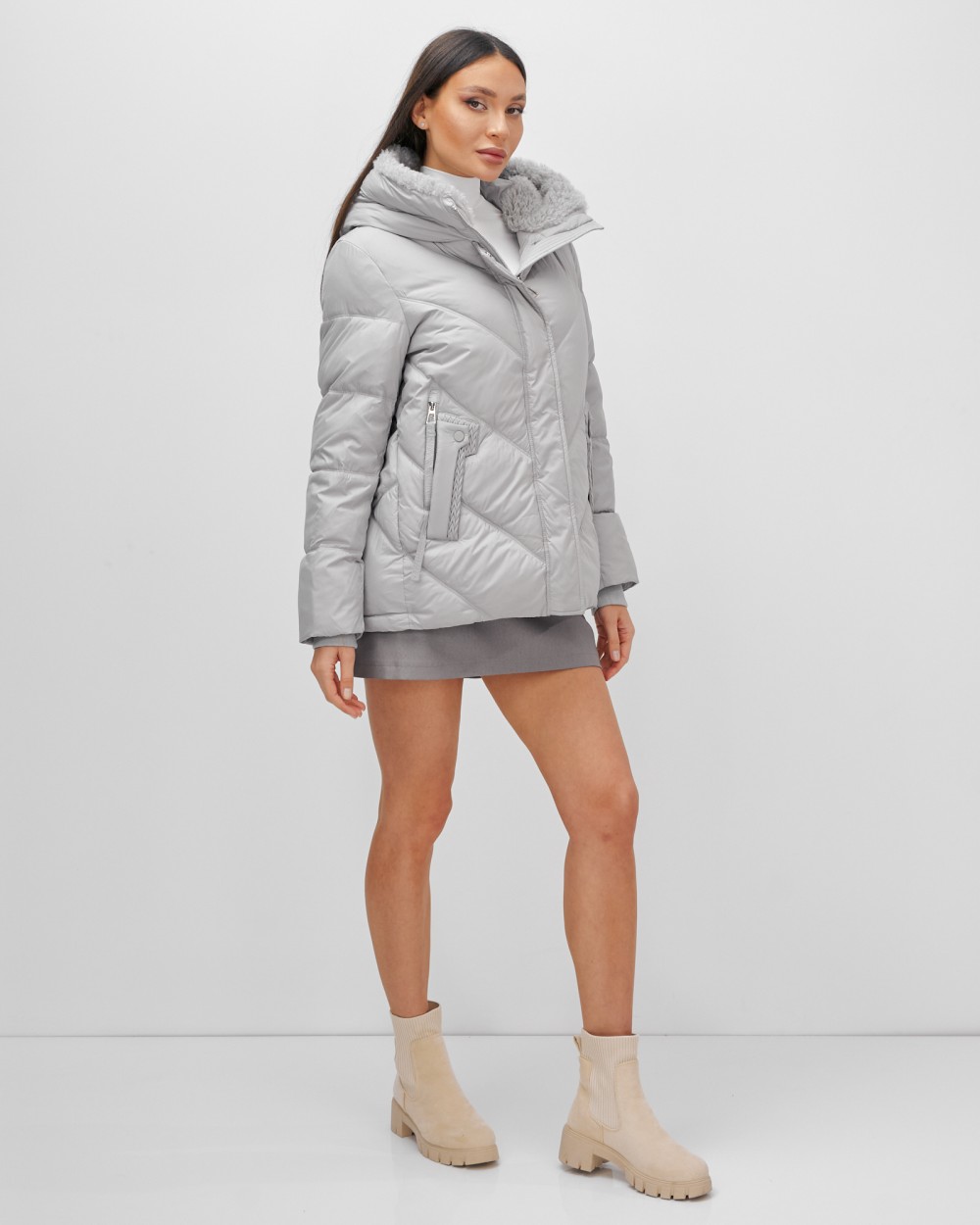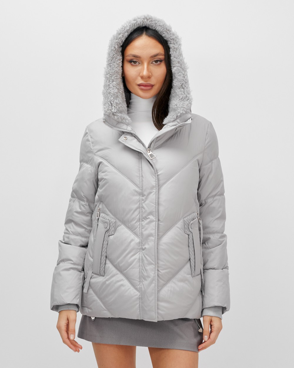 Куртка зимняя женская из овчина стильная и модная серого цвета 7348Sr — Visdeer