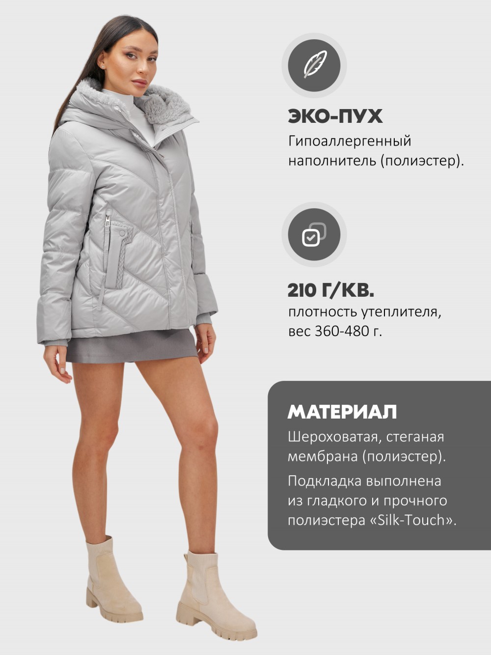 Особенность этой модели — несъёмный мех, который придаёт куртке изысканность и дополнительное тепло. Внутренняя подкладка из полиэстера и искусственной овчины не только согревает, но и дарит комфорт на весь день.