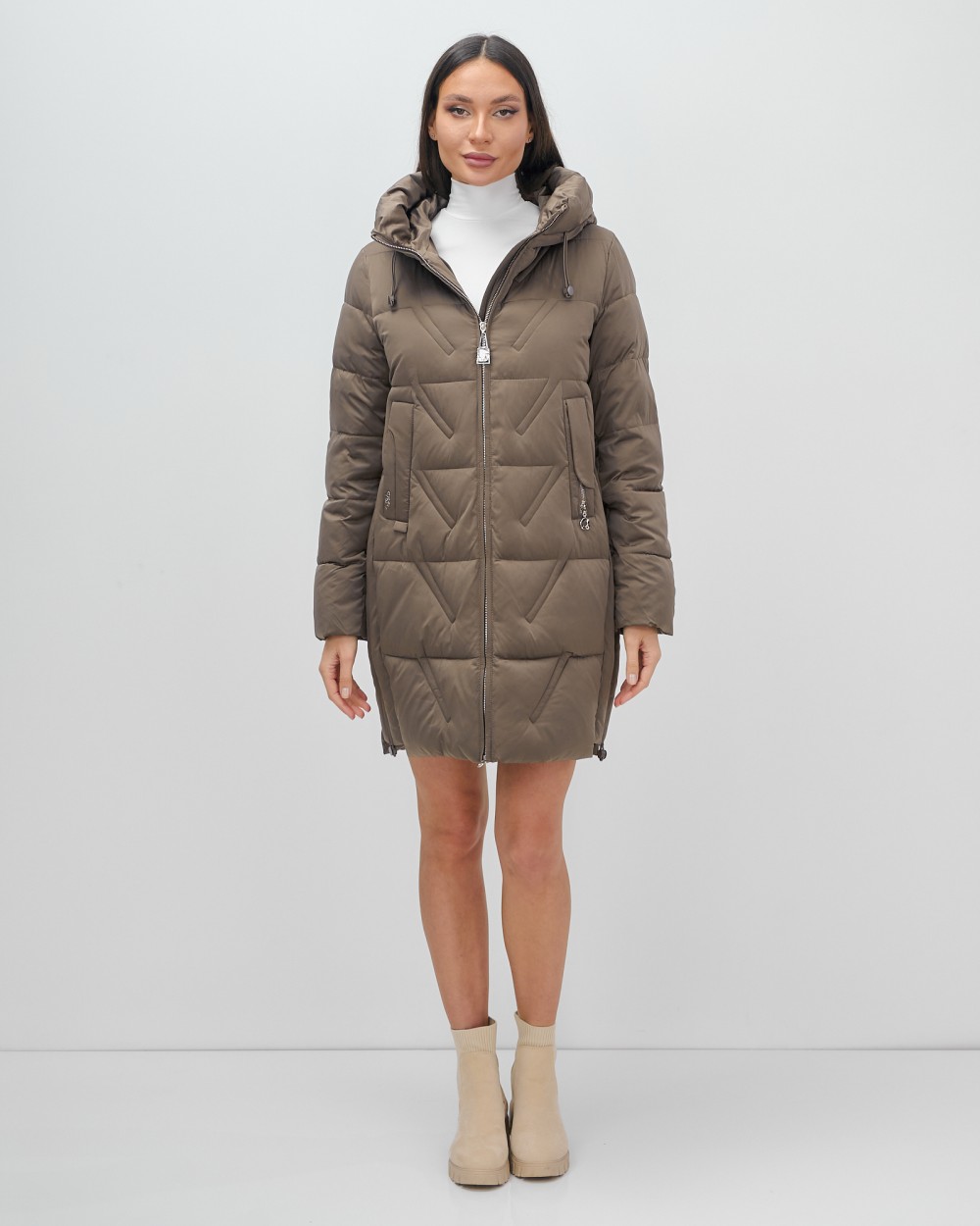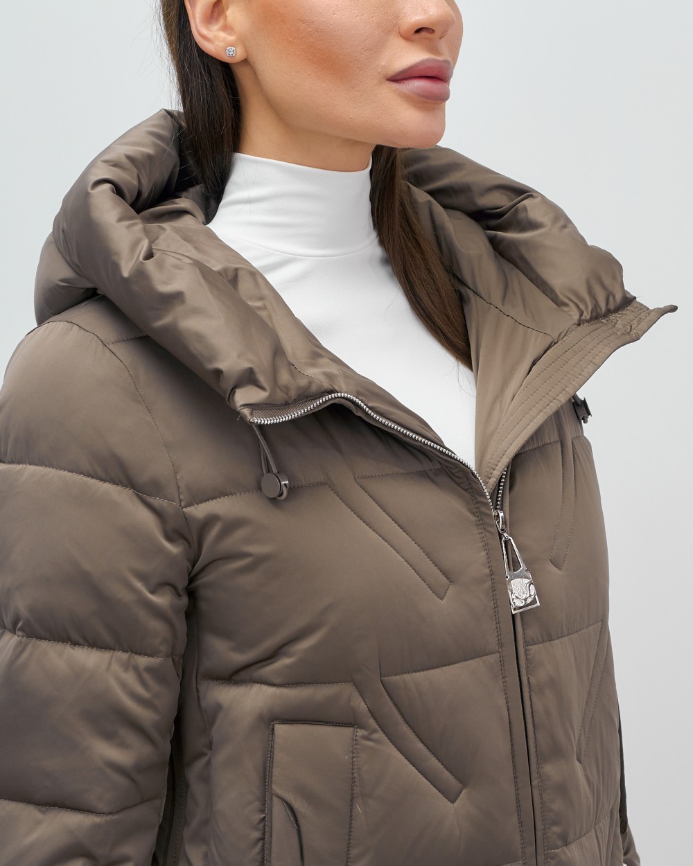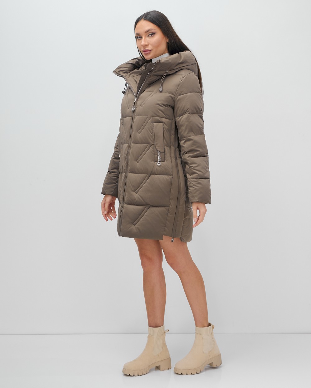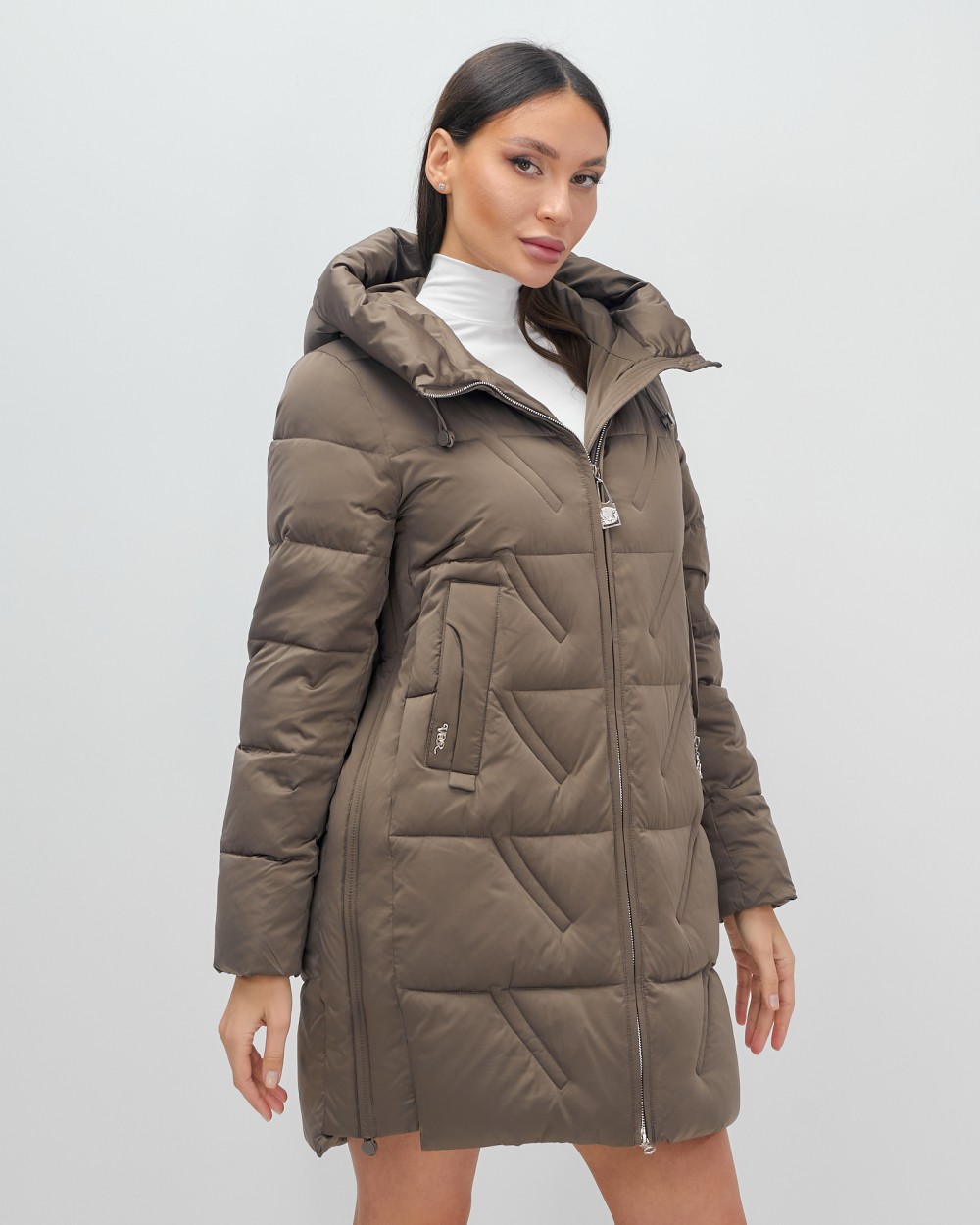 Куртка зимняя женская классическая с капюшоном коричневого цвета 7671K — Visdeer