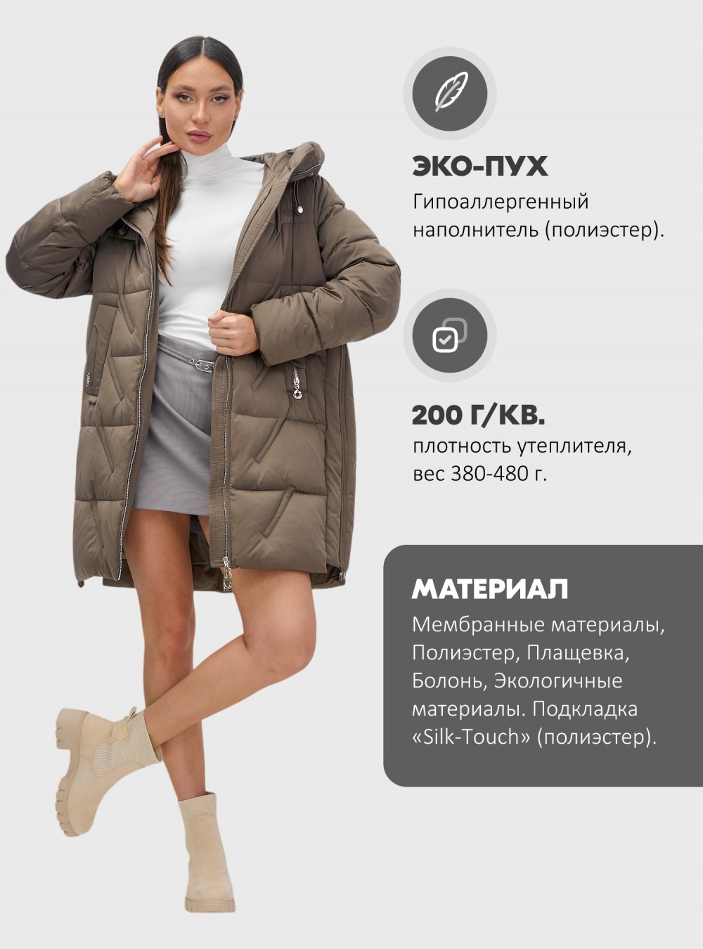 Ключевые особенности куртки: быстросохнущий, водоотталкивающий, гипоаллергенный и дышащий материал с разрезом, что делает ее идеальным выбором для осенне-зимнего сезона 2025. Выбирайте эту куртку для стильного, комфортного и защищенного образа в холодную погоду!