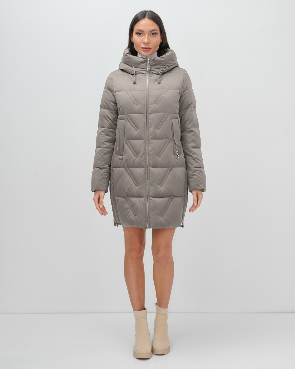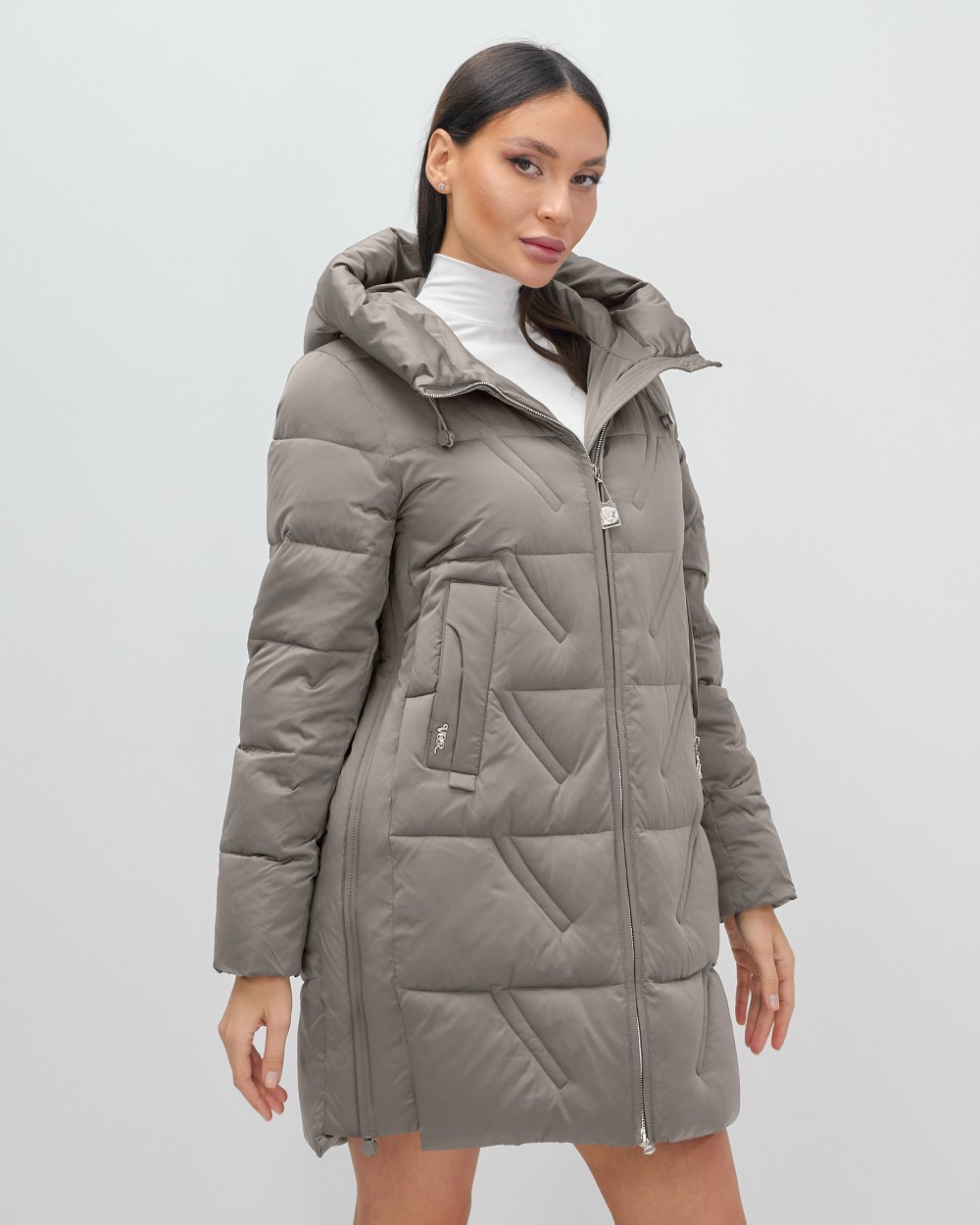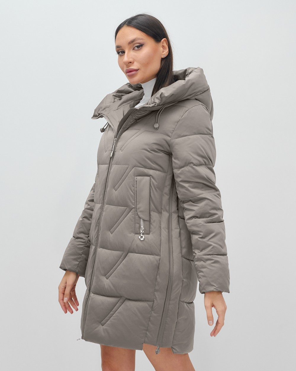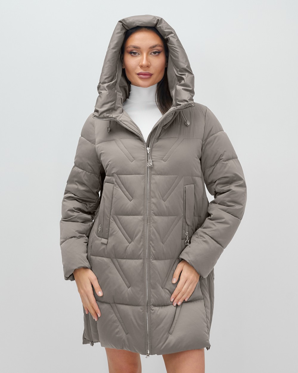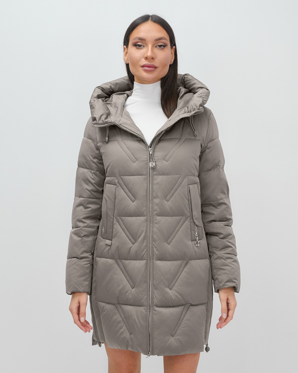 Куртка зимняя женская классическая с капюшоном серого цвета 7671Sr — Visdeer