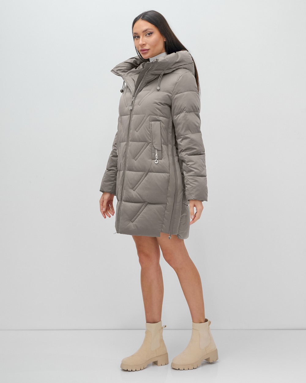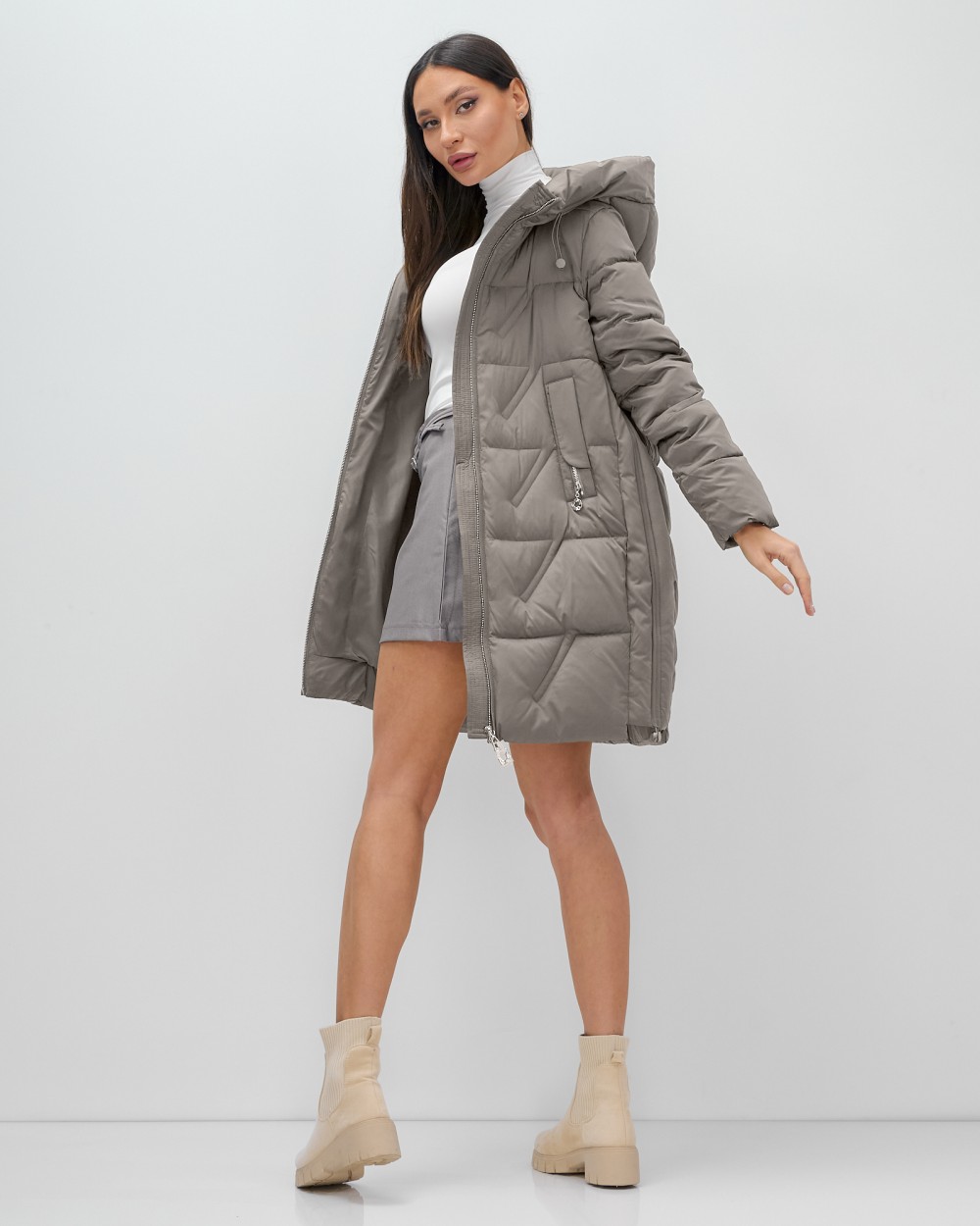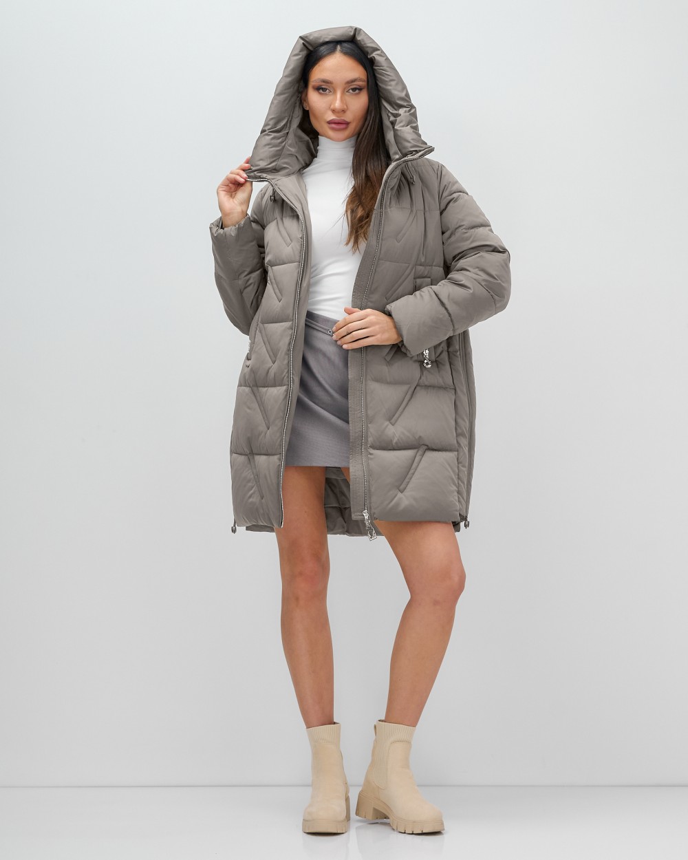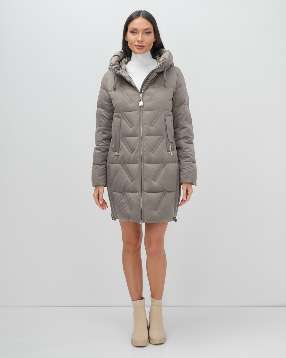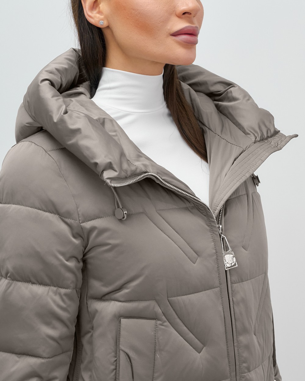 Куртка зимняя женская классическая с капюшоном серого цвета 7671Sr — Visdeer
