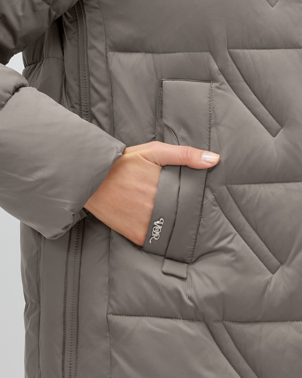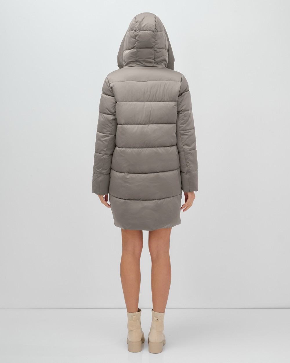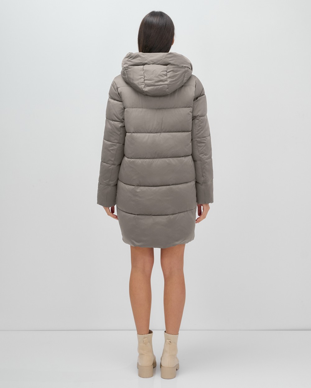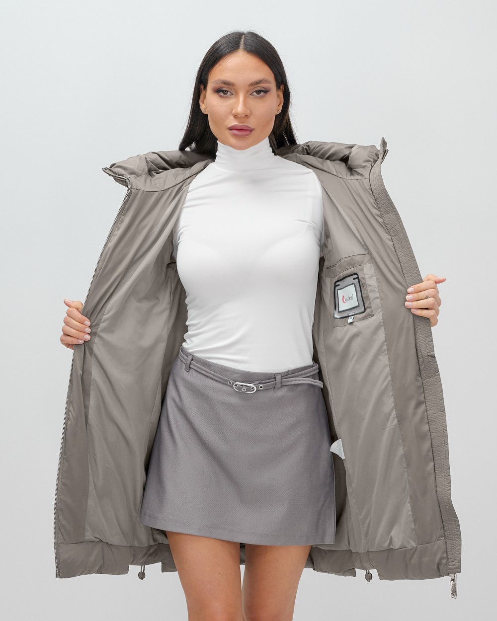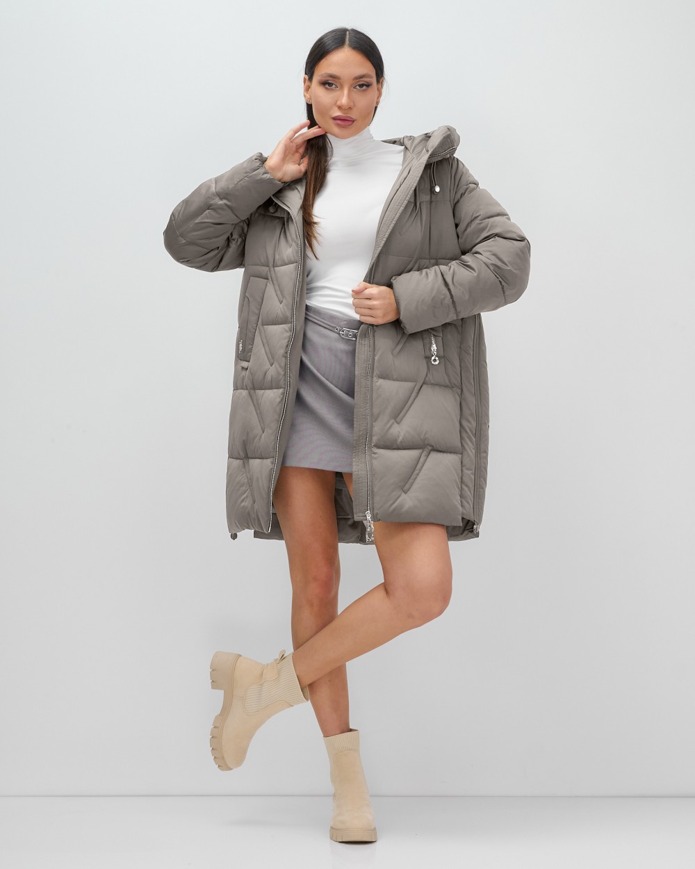 Куртка зимняя женская классическая с капюшоном серого цвета 7671Sr — Visdeer