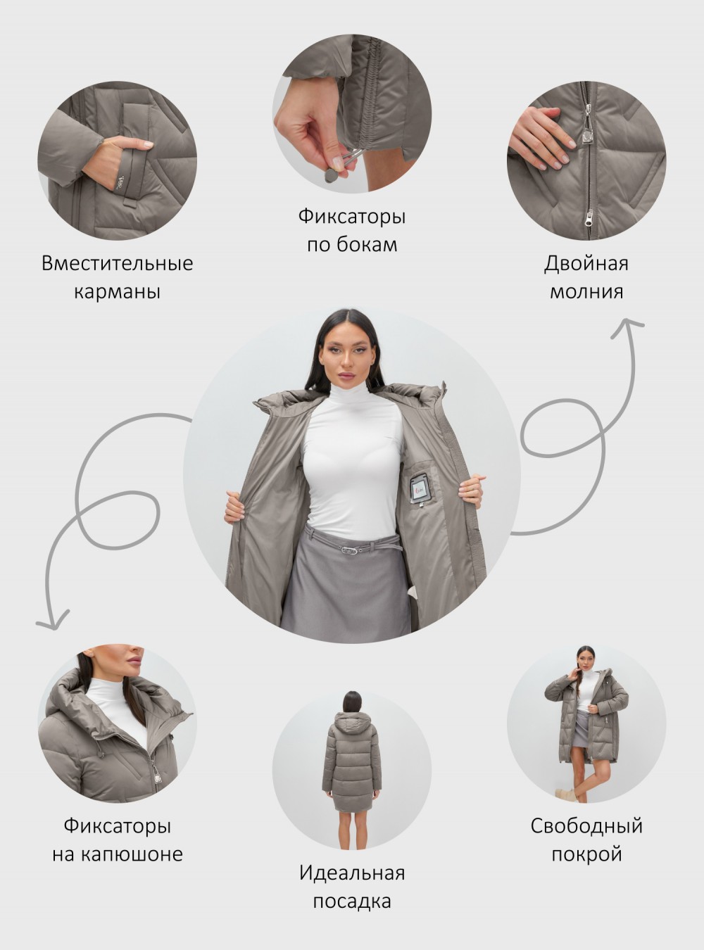 Эта модель выполнена в элегантном, офисном/школьном и повседневном стилях, идеально подходит для различных ситуаций. Декоративные элементы, такие как капюшон и молния, придают куртке современный вид. Доступна в пяти цветах: черный, темно-серый, бежевый, коричневый и светло-коричневый.