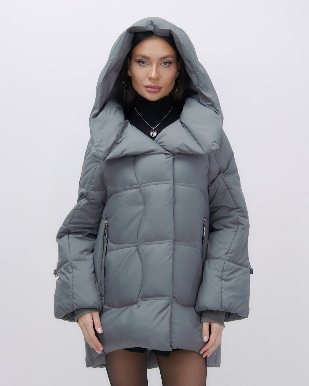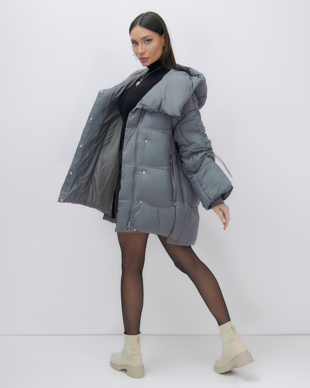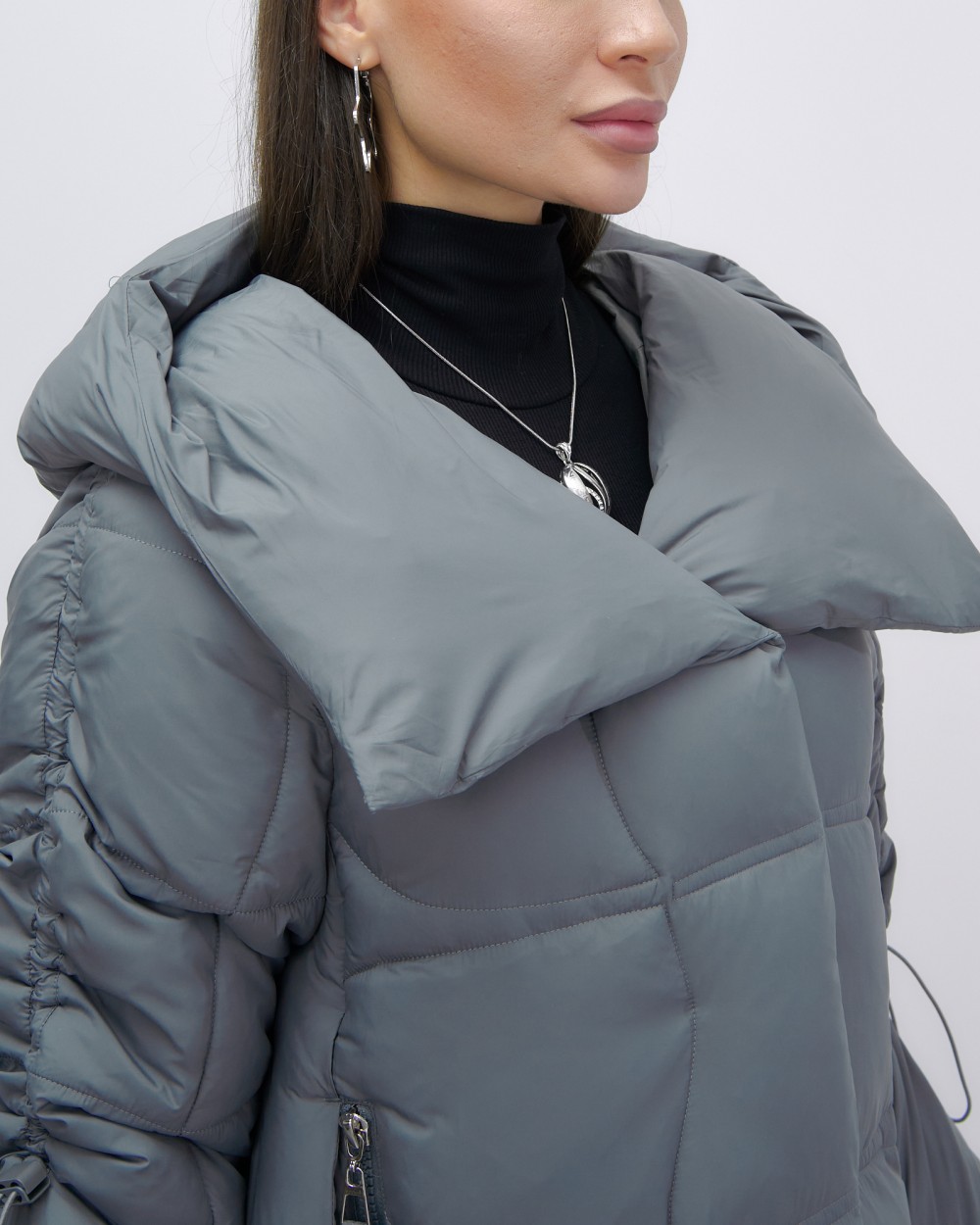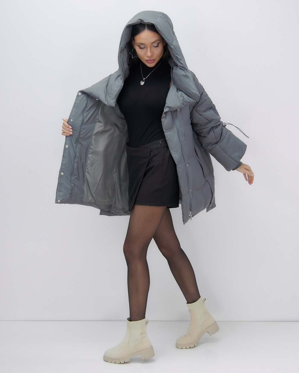 Куртка зимняя женская с большим капюшоном модная темно-серого цвета 7739TC — Visdeer