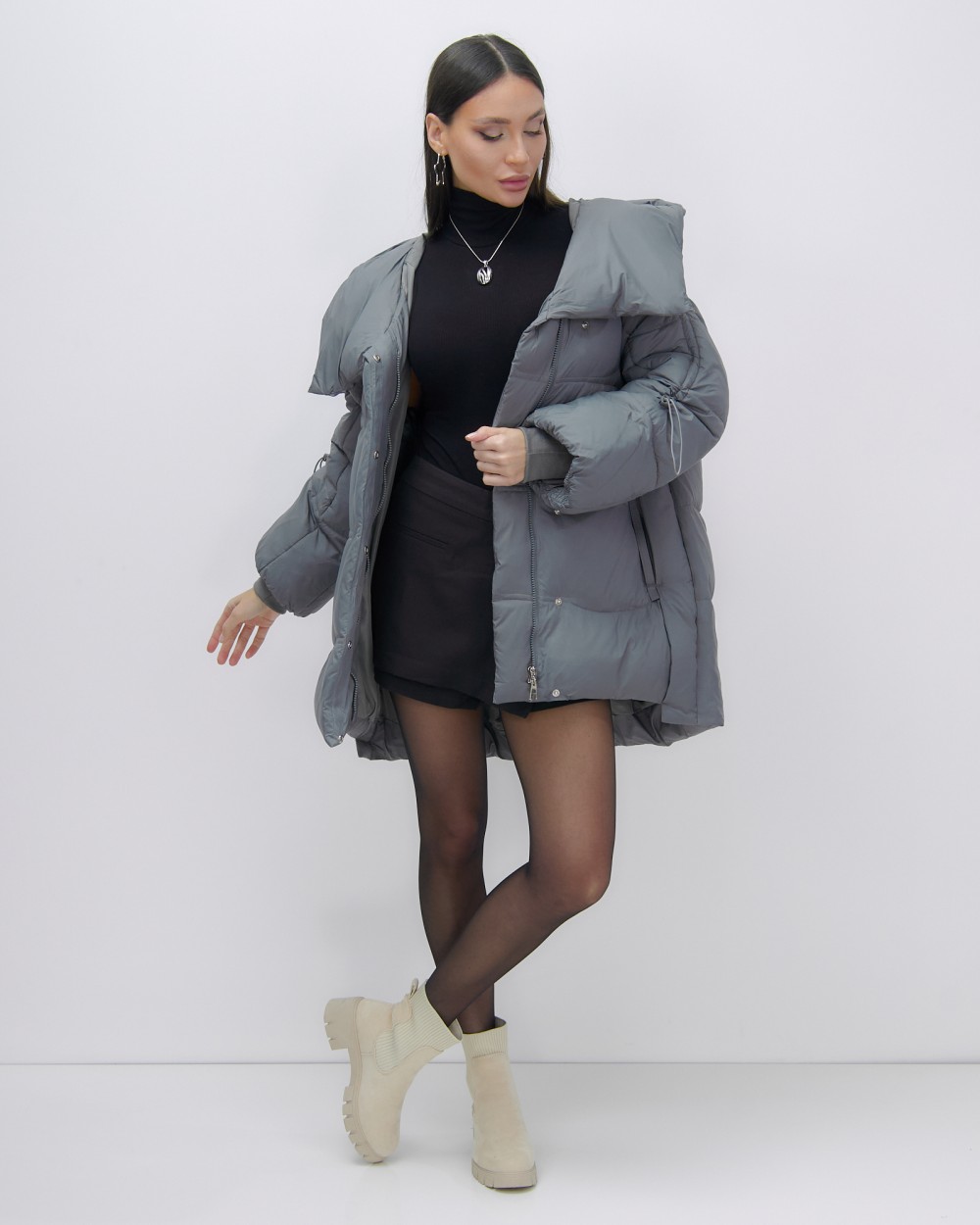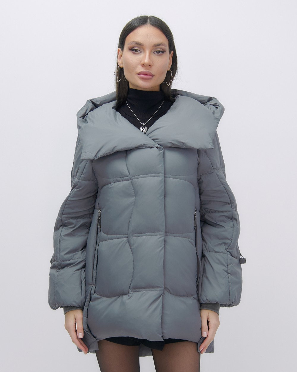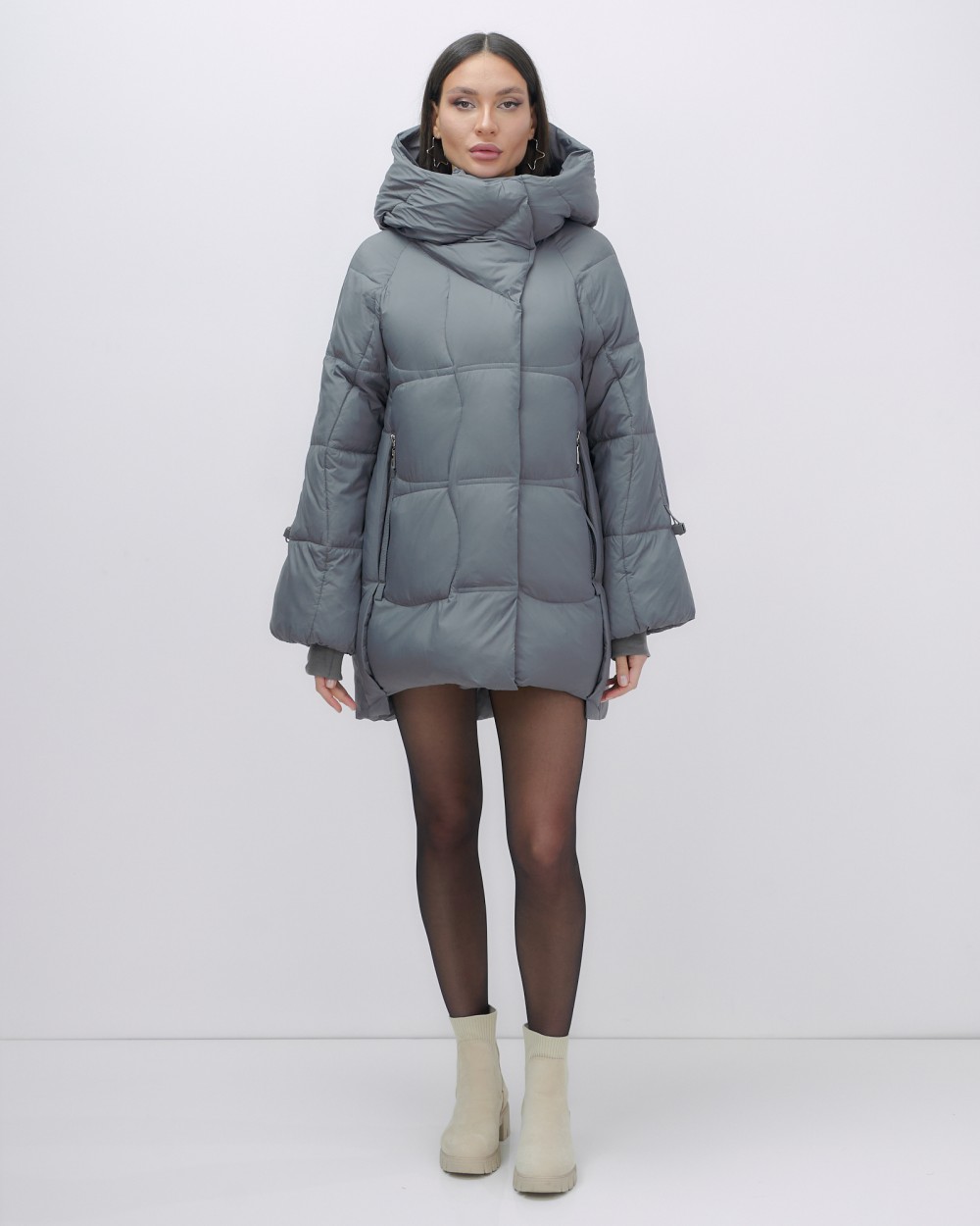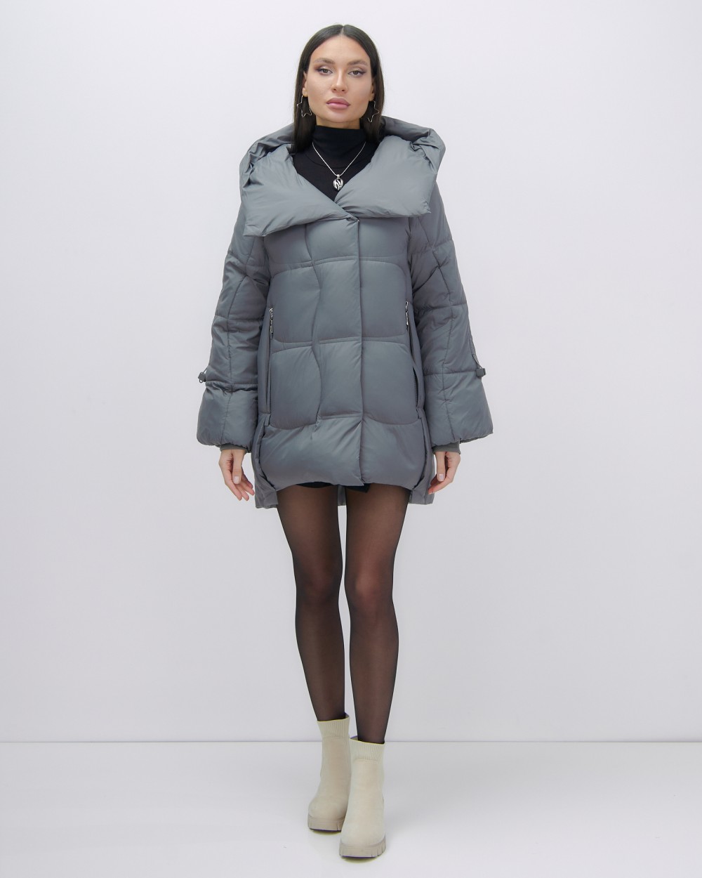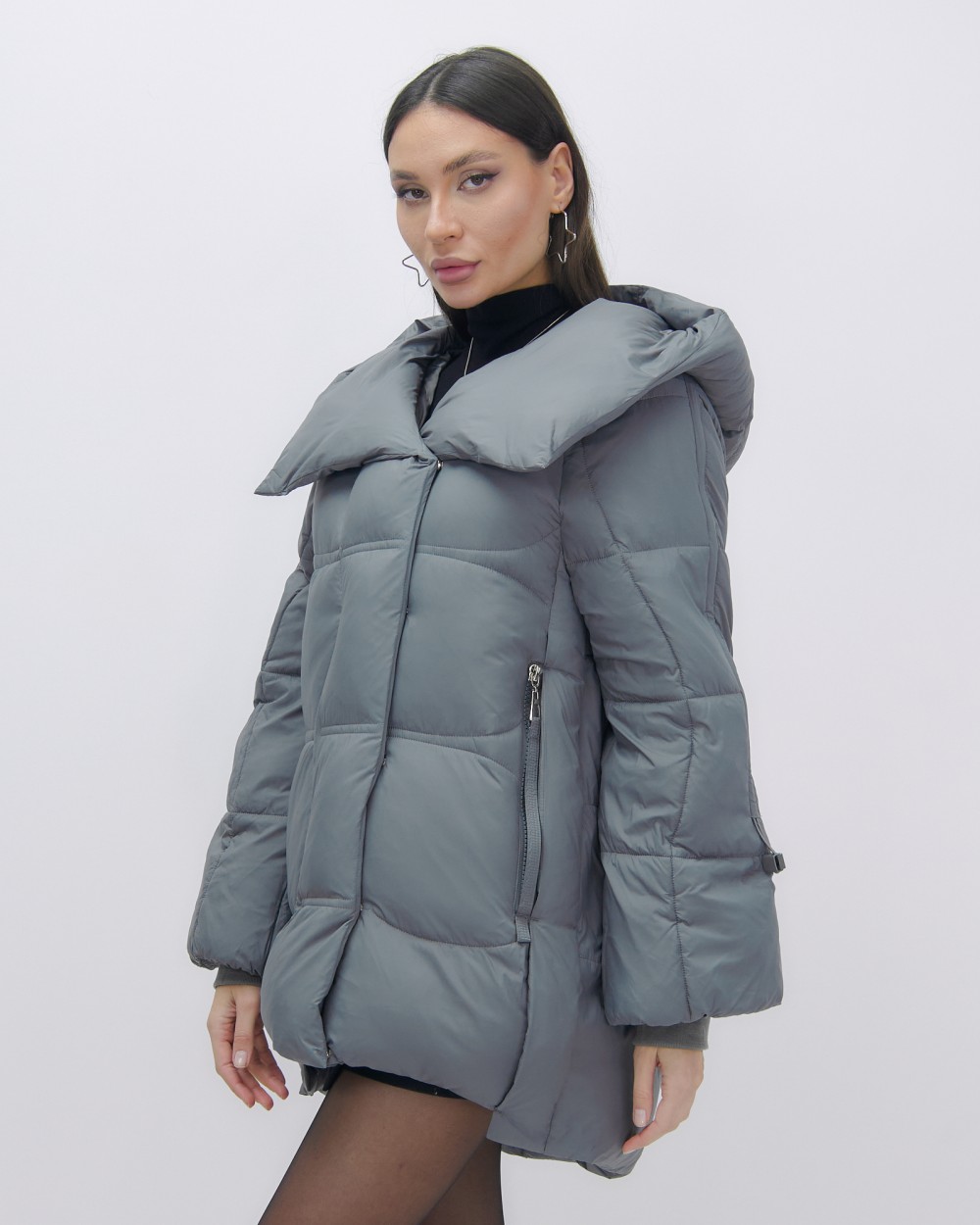 Куртка зимняя женская с большим капюшоном модная темно-серого цвета 7739TC — Visdeer