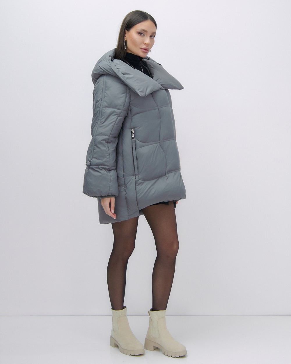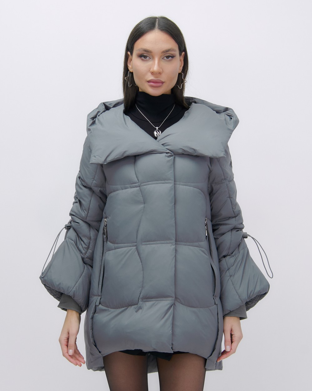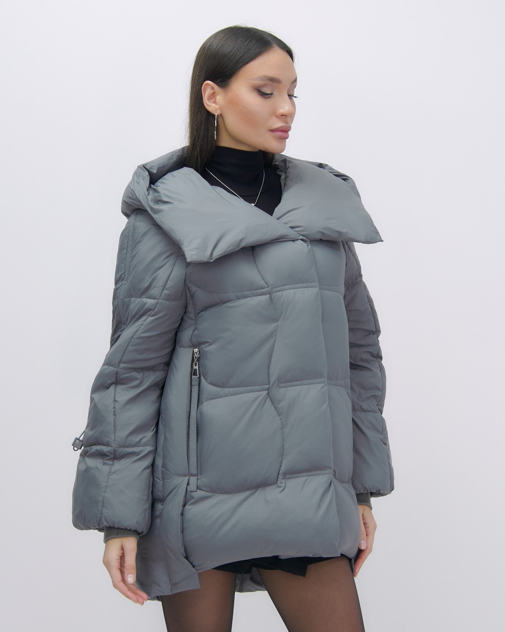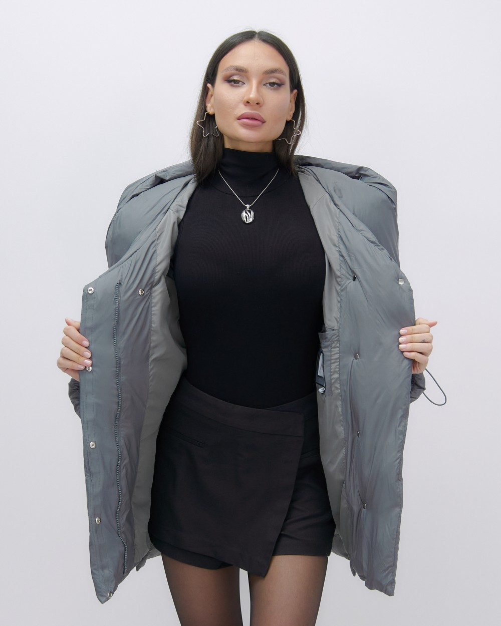 Куртка зимняя женская с большим капюшоном модная темно-серого цвета 7739TC — Visdeer