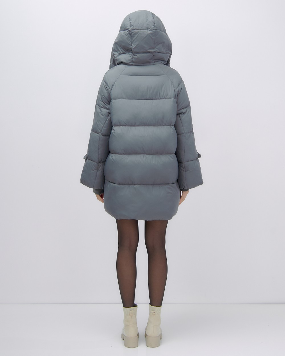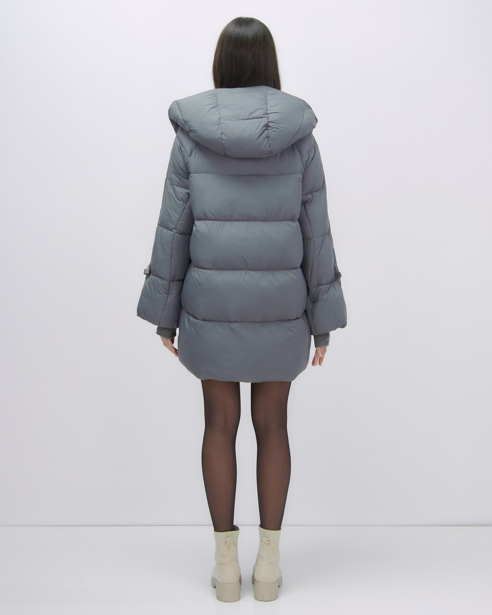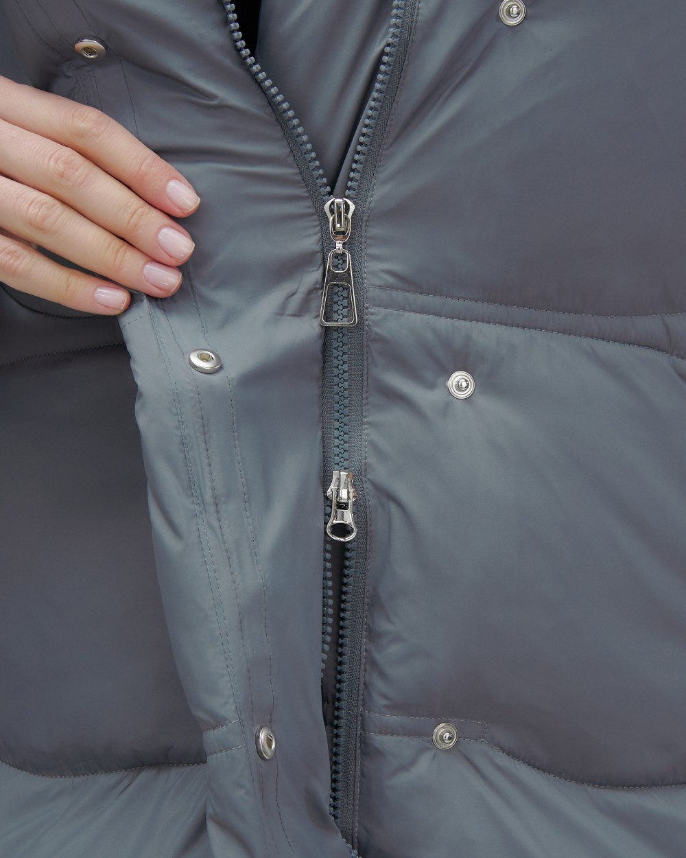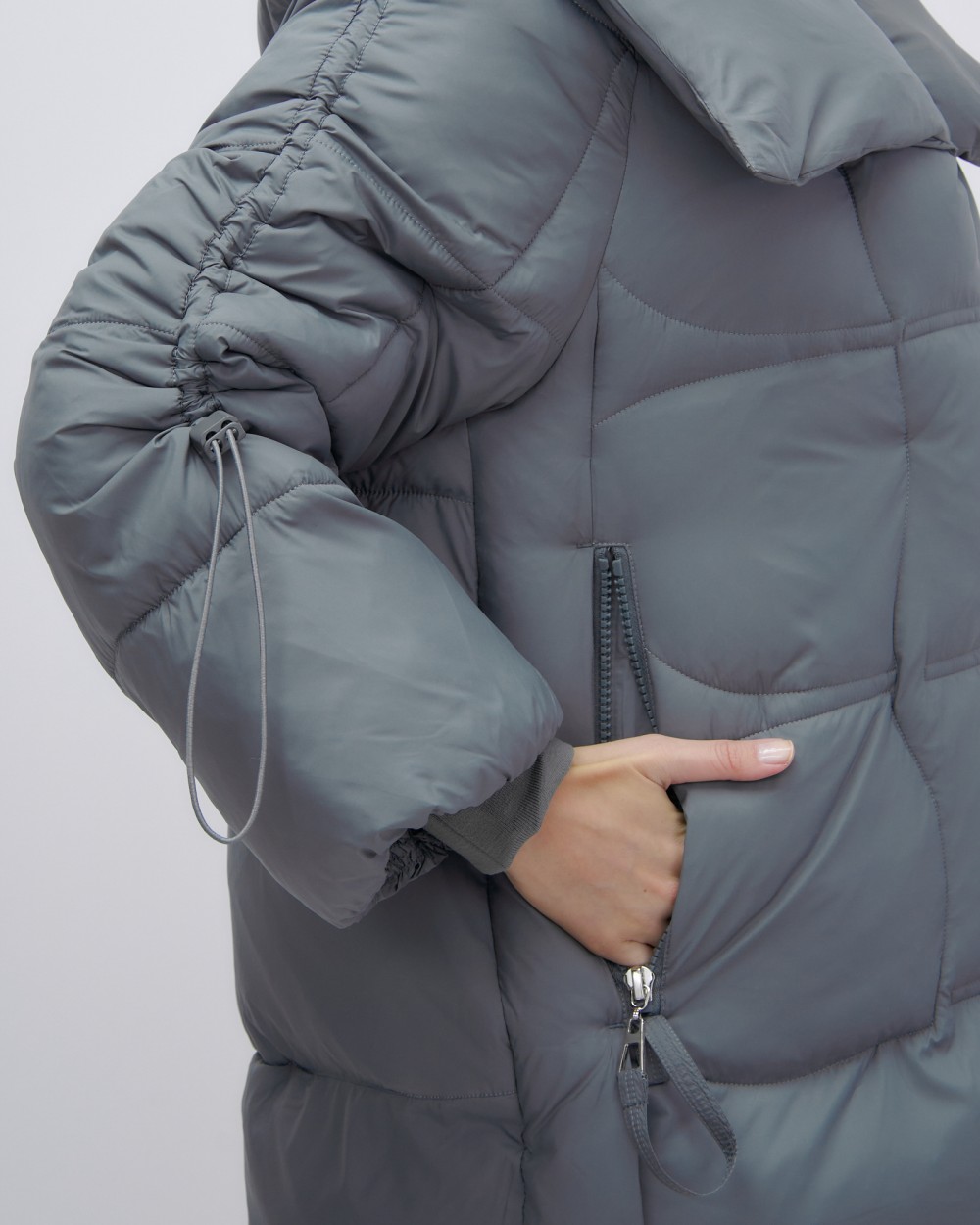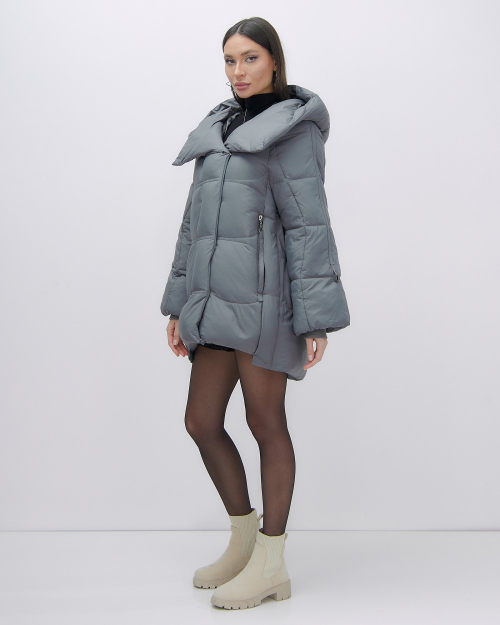 Куртка зимняя женская с большим капюшоном модная темно-серого цвета 7739TC — Visdeer