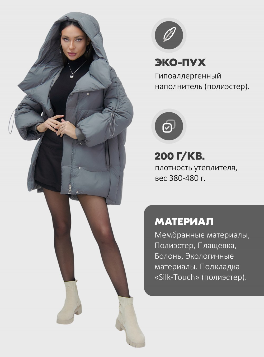 Зимняя женская куртка с большим капюшоном – идеальный выбор для холодного сезона. Доступна в размерах от 42 до 50, эта модная куртка изготовлена из высококачественных мембранных материалов, таких как полиэстер и плащевка, что обеспечивает долговечность и защиту от влаги (водонепроницаемость 7 000 мм). Состав из 100% полиэстера и синтепона гарантирует отличное тепло, сохраняя комфорт в диапазоне температур от +5° до -20°C.