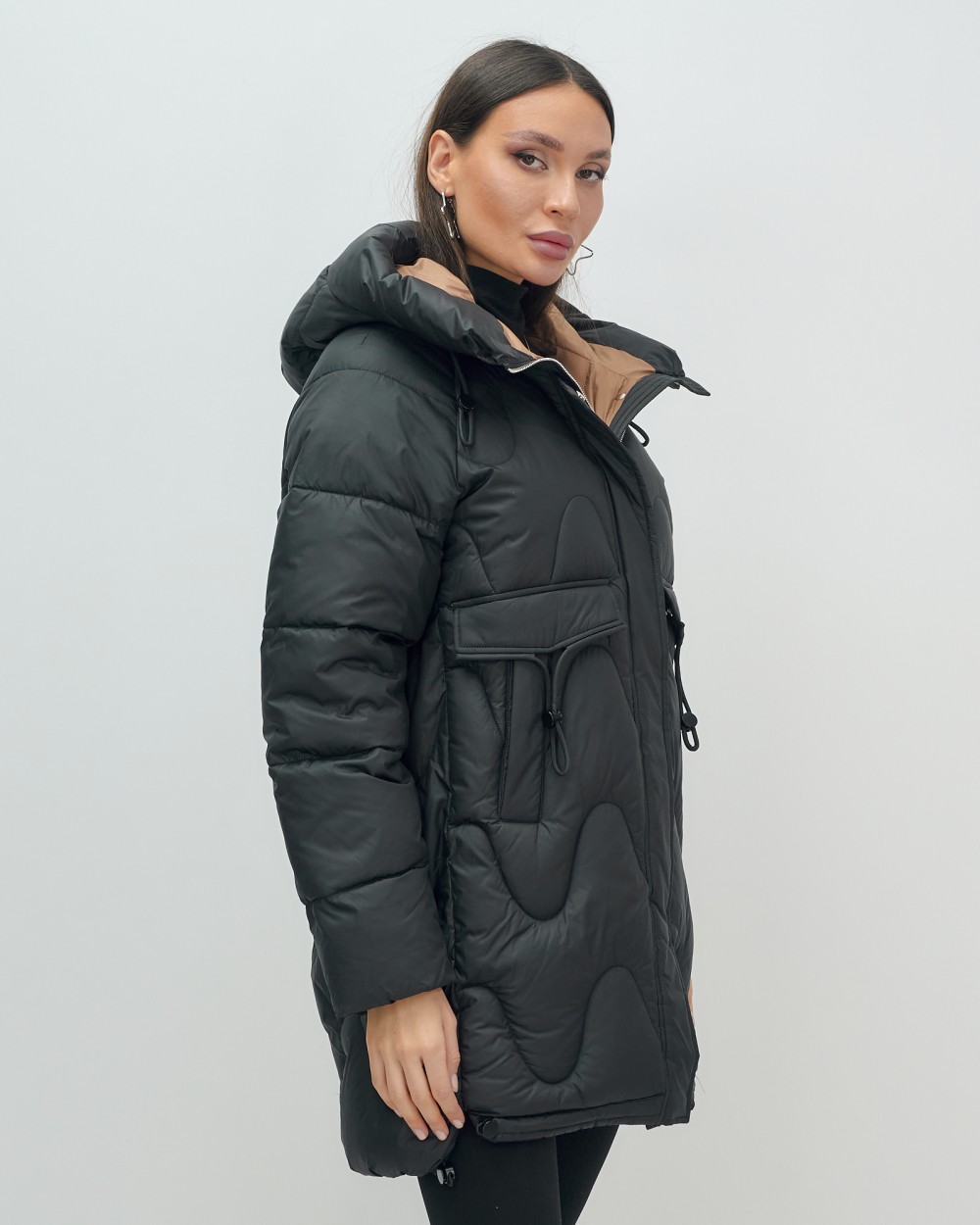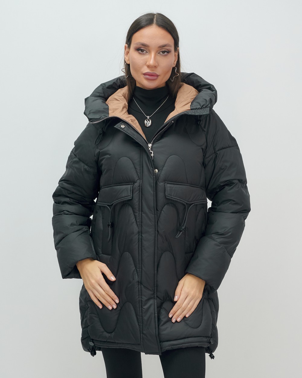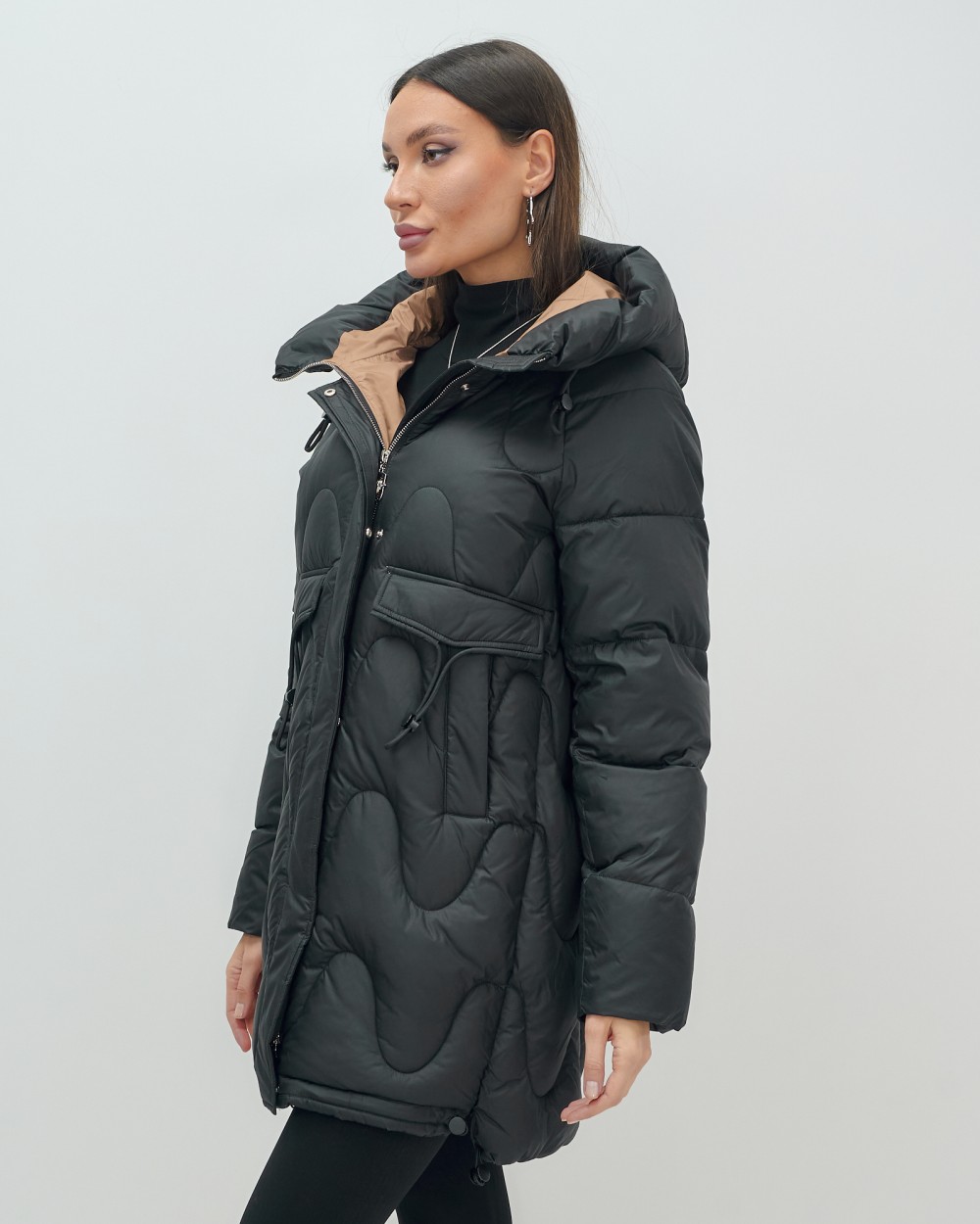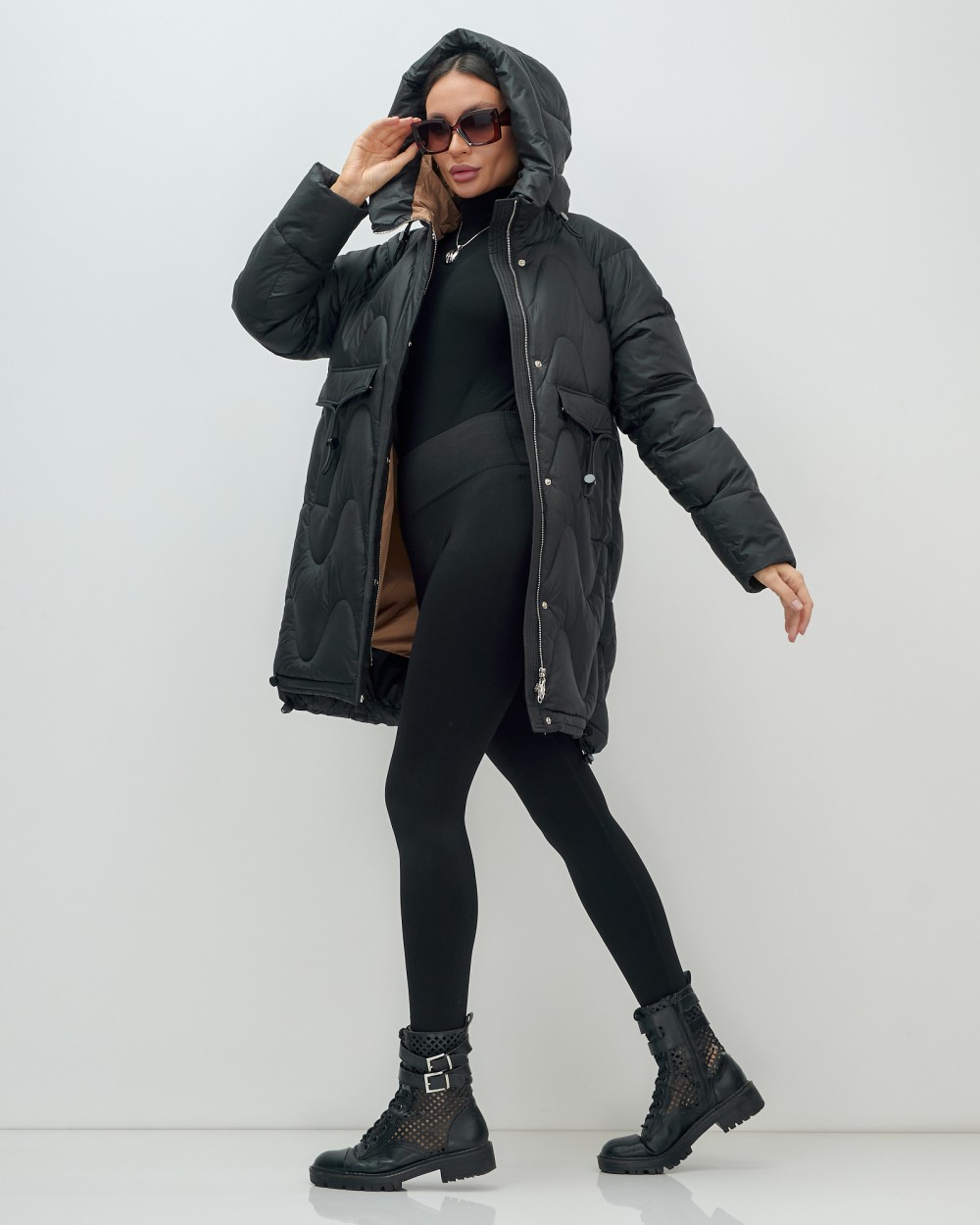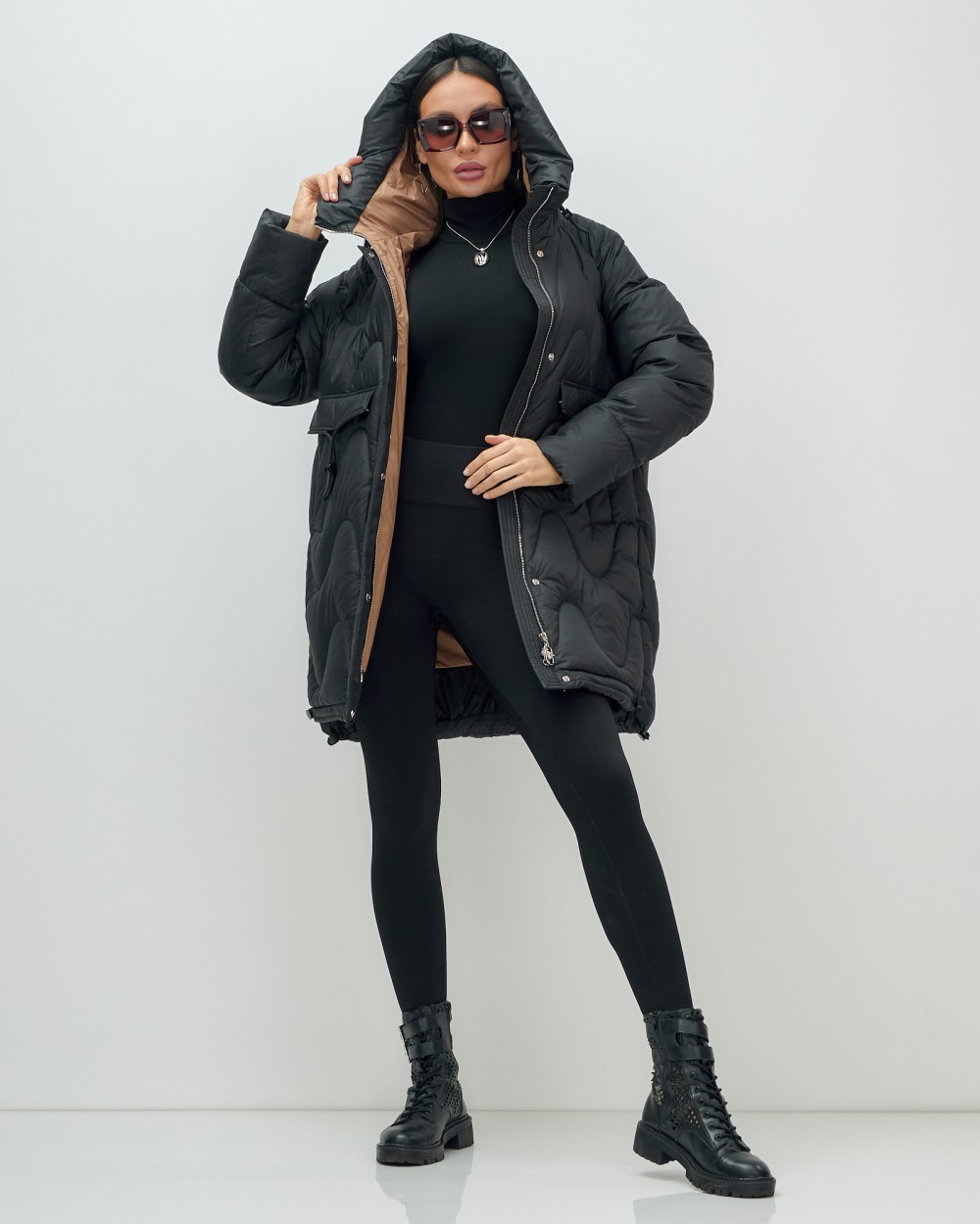 Куртка зимняя женская с капюшоном модная черного цвета 7653Ch — Visdeer
