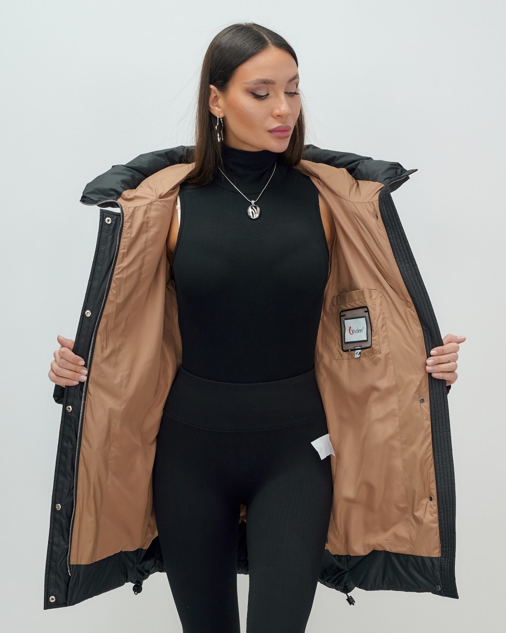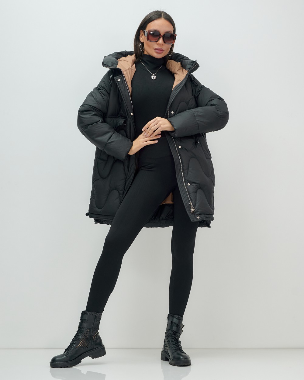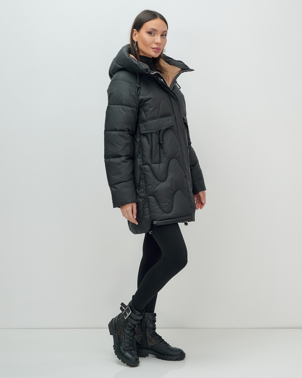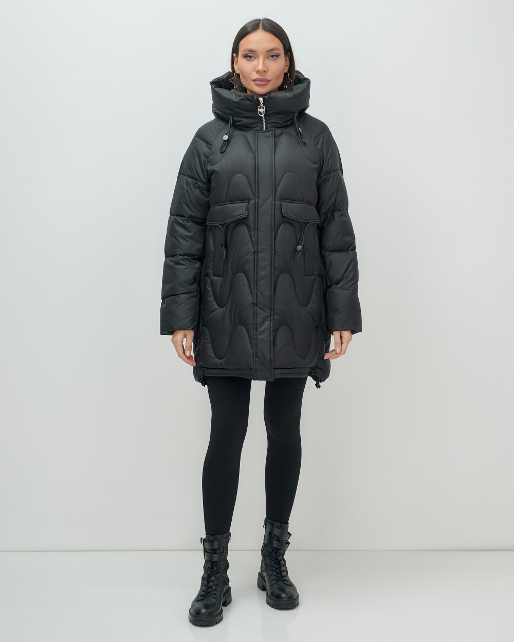 Куртка зимняя женская с капюшоном модная черного цвета 7653Ch — Visdeer