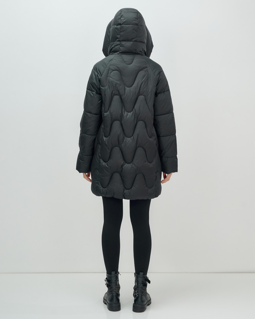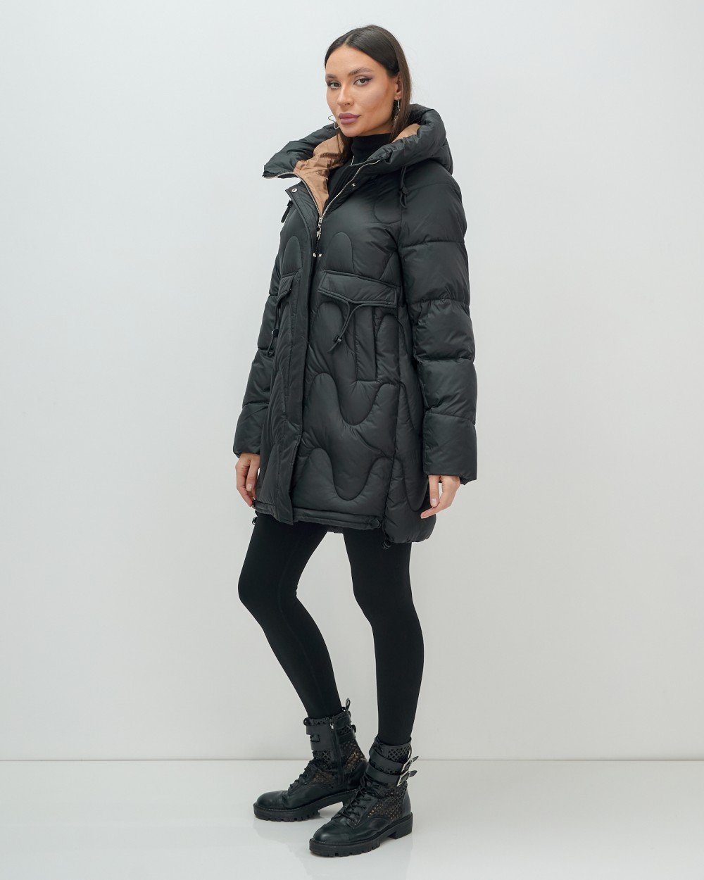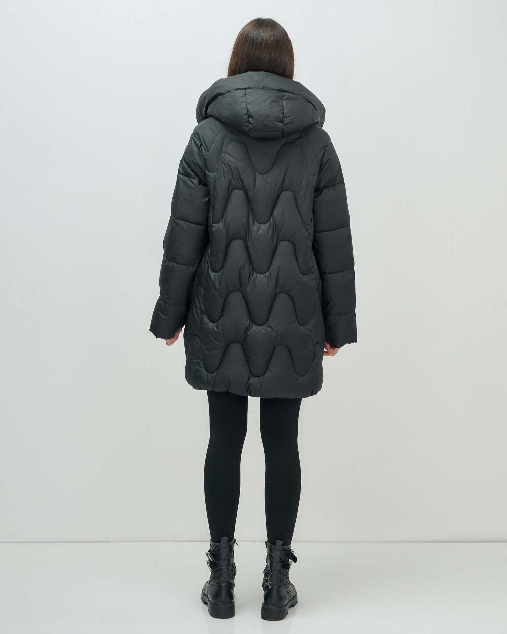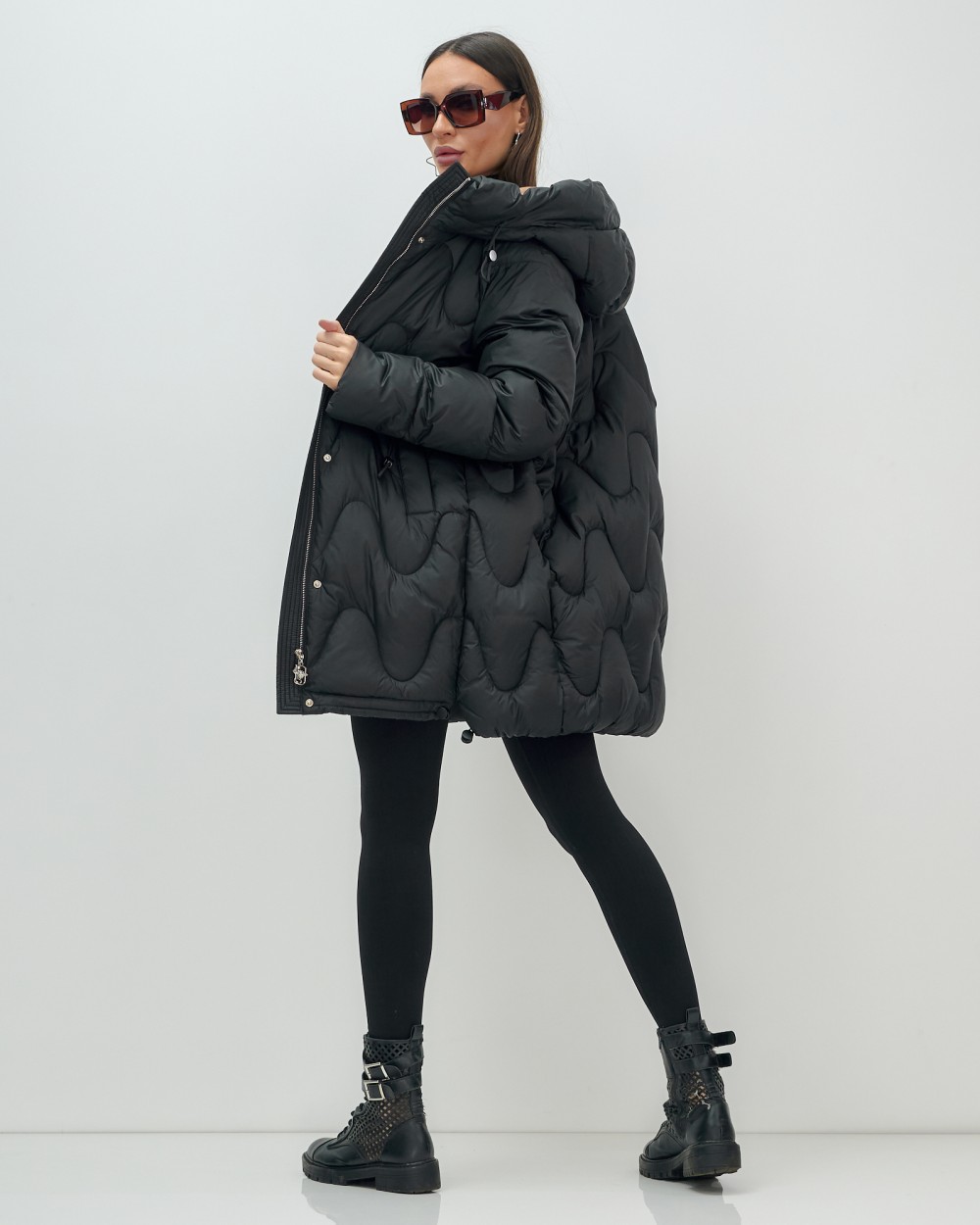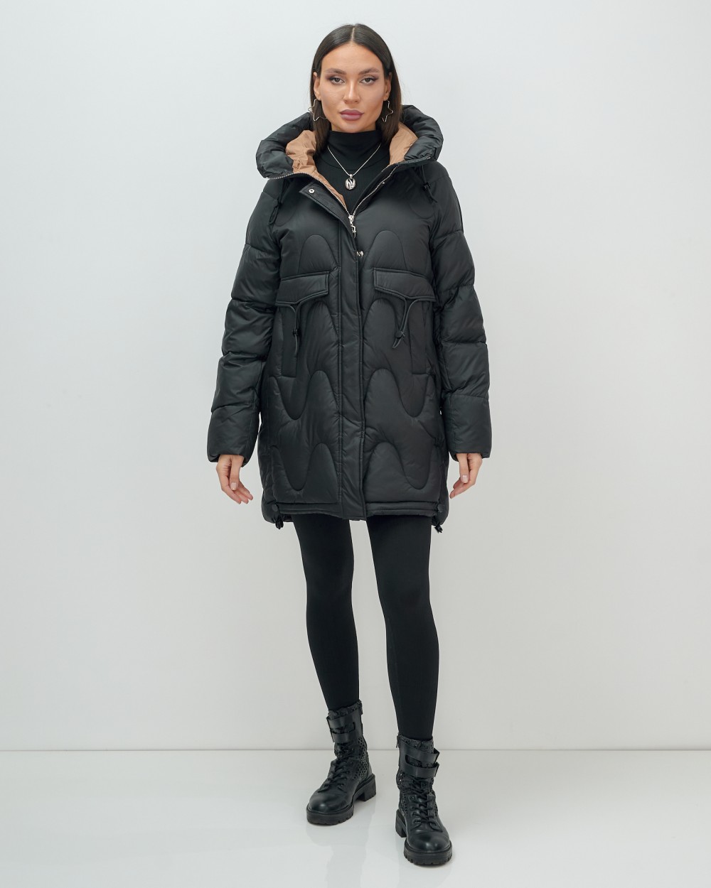 Куртка зимняя женская с капюшоном модная черного цвета 7653Ch — Visdeer