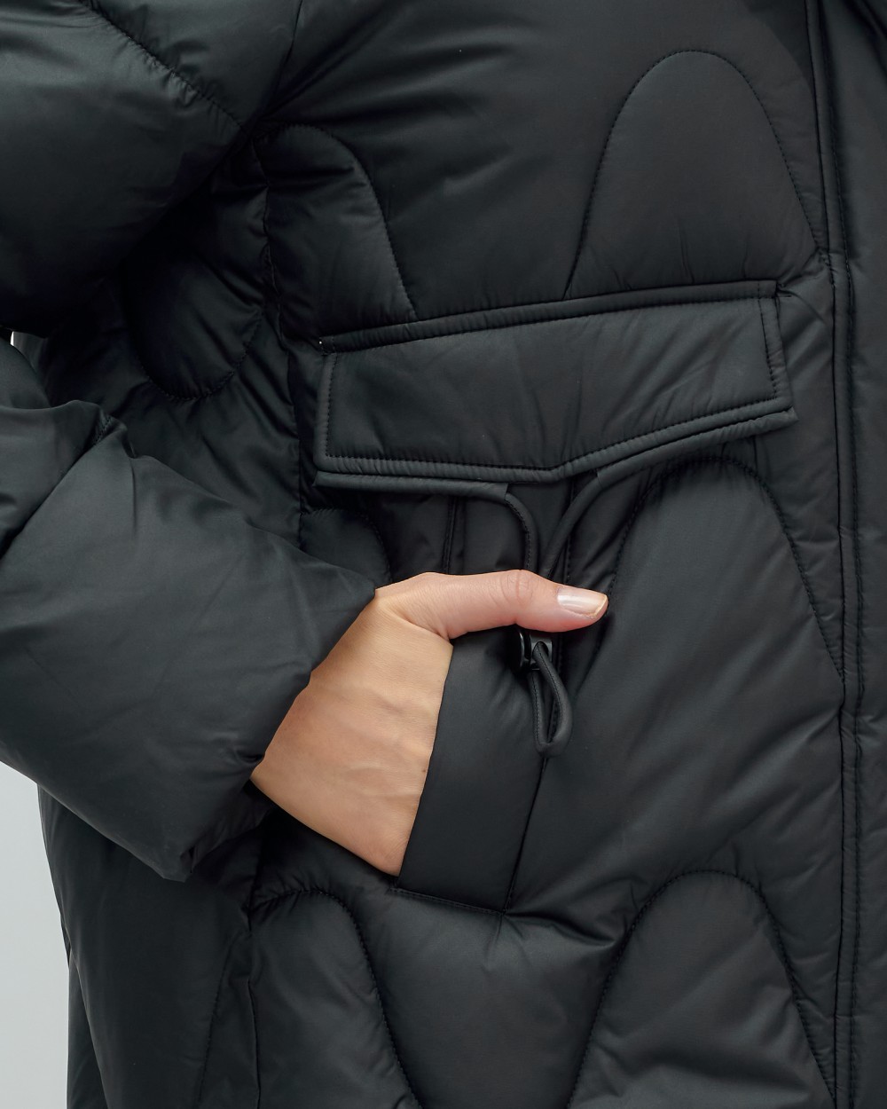 Особая гордость модели — это множество фиксаторов, которые обеспечивают дополнительную защиту и комфорт. Фиксаторы на капюшоне, по низу куртки и около карманов позволяют регулировать посадку и сохранять тепло, не забывая о практичности.