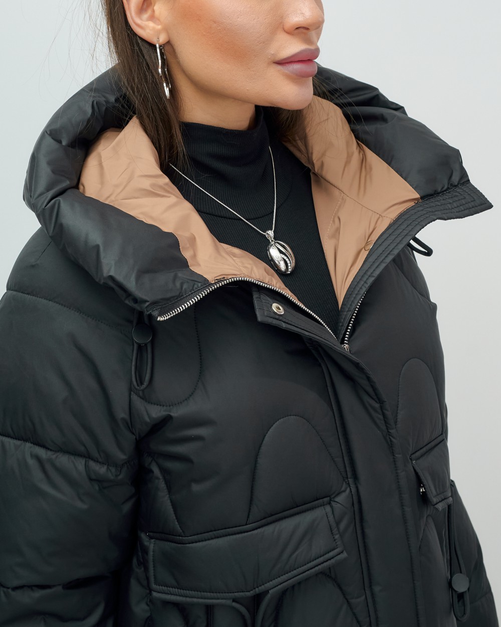 Куртка зимняя женская с капюшоном модная черного цвета 7653Ch