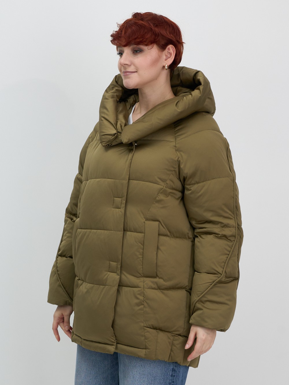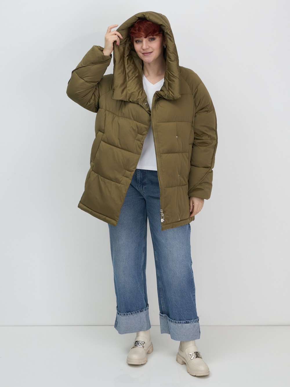 Куртка зимняя женская с капюшоном модная горчичного цвета 7651G — Visdeer