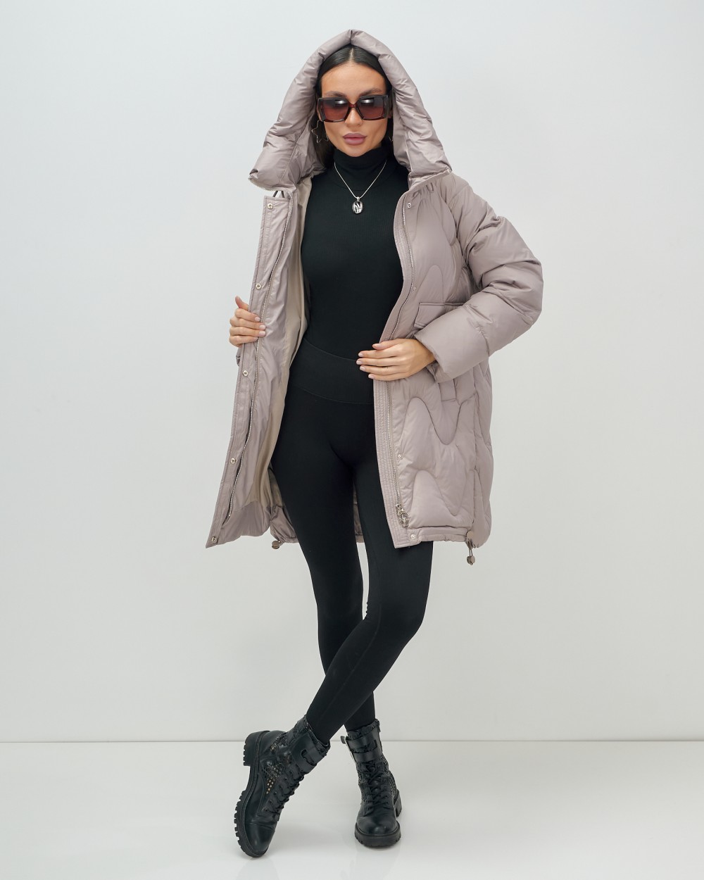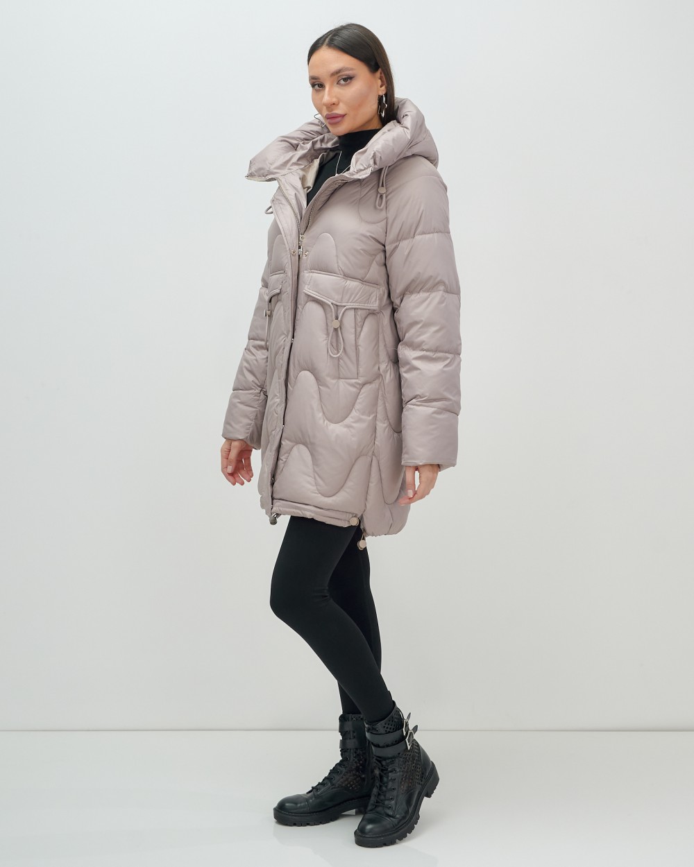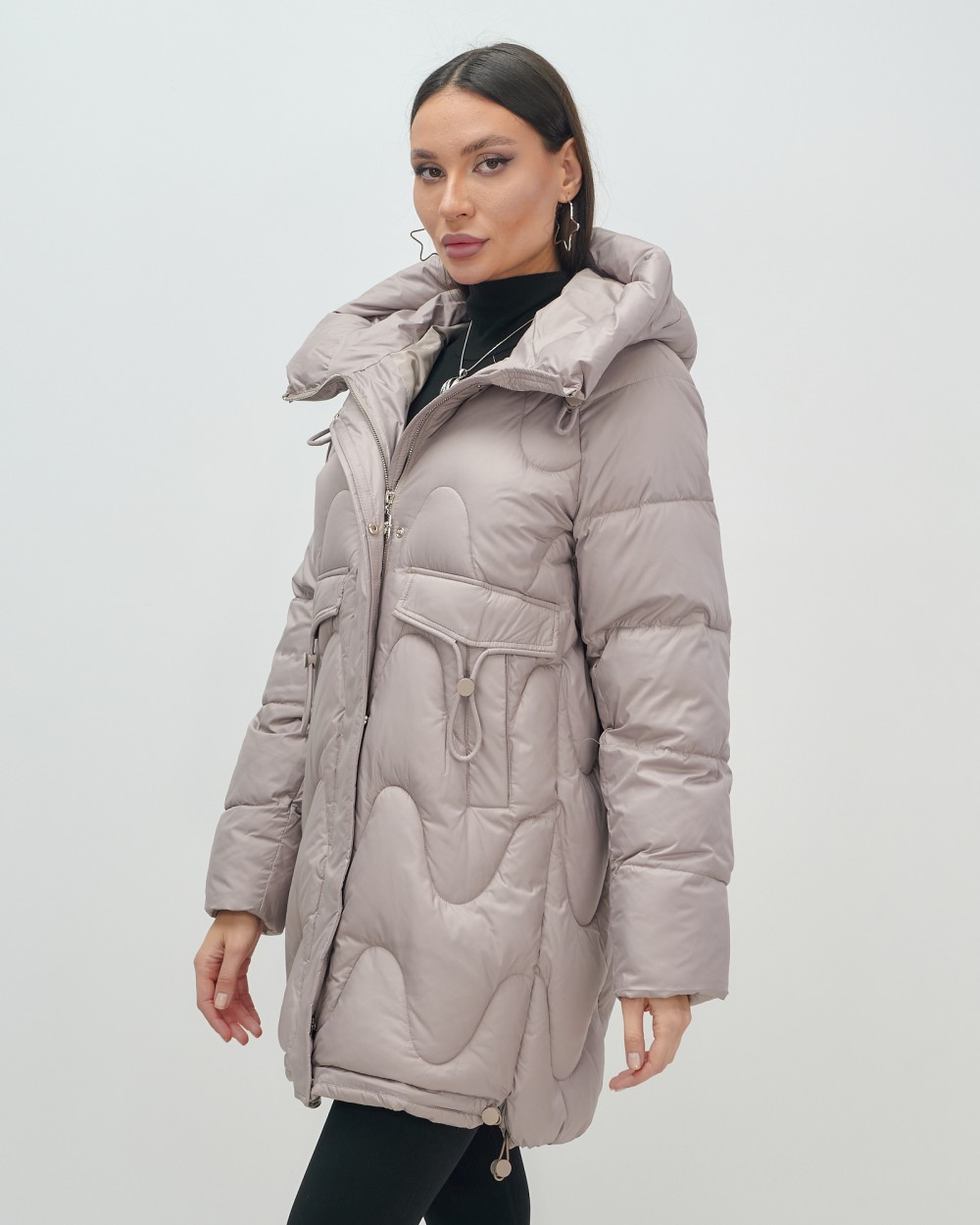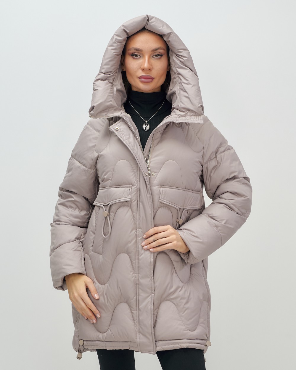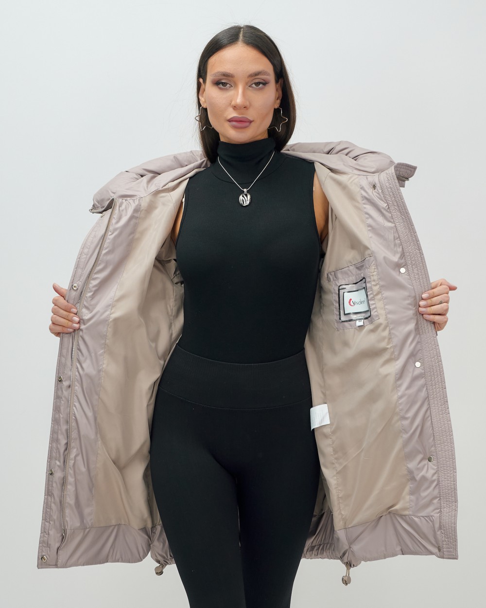 Куртка зимняя женская с капюшоном модная светло-коричневого цвета 7653SK — Visdeer
