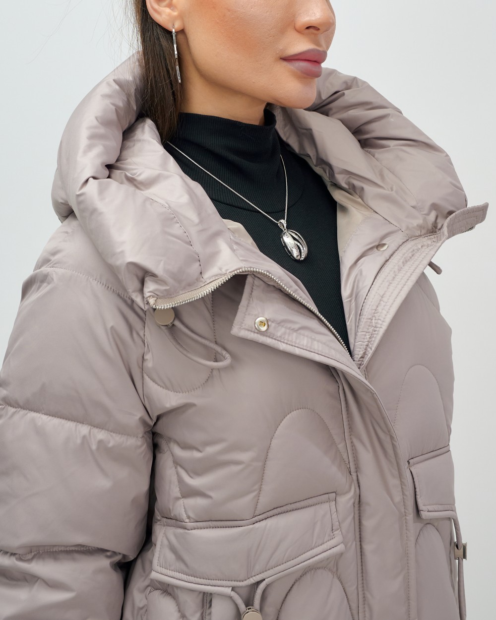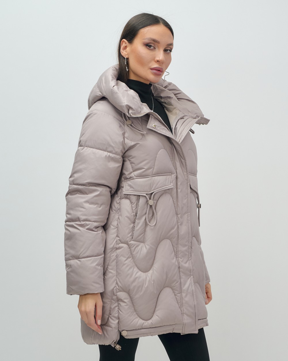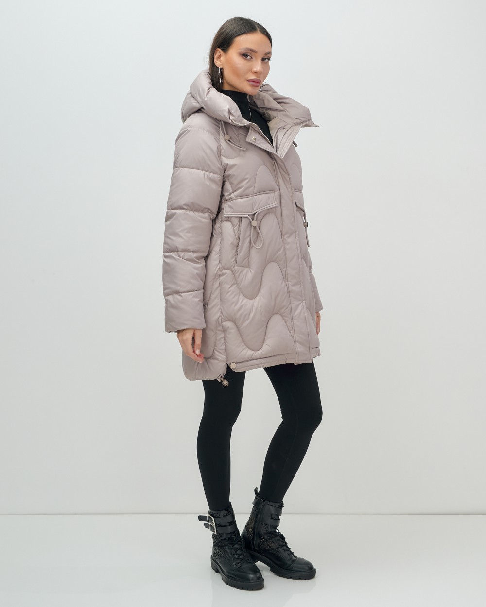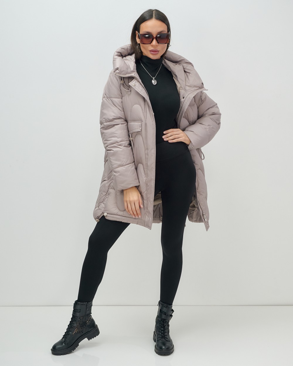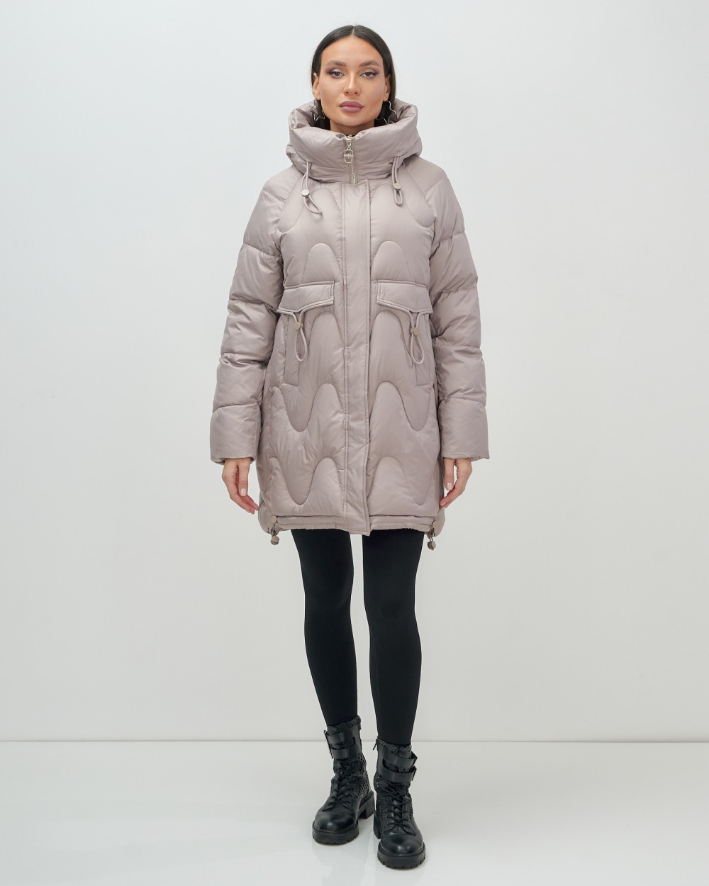 Куртка зимняя женская с капюшоном модная светло-коричневого цвета 7653SK — Visdeer