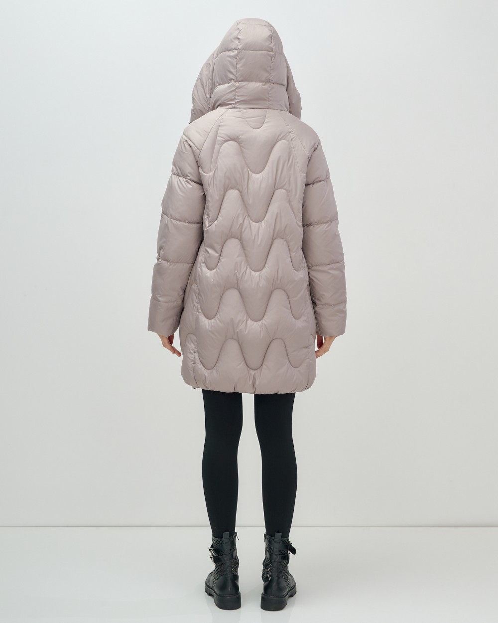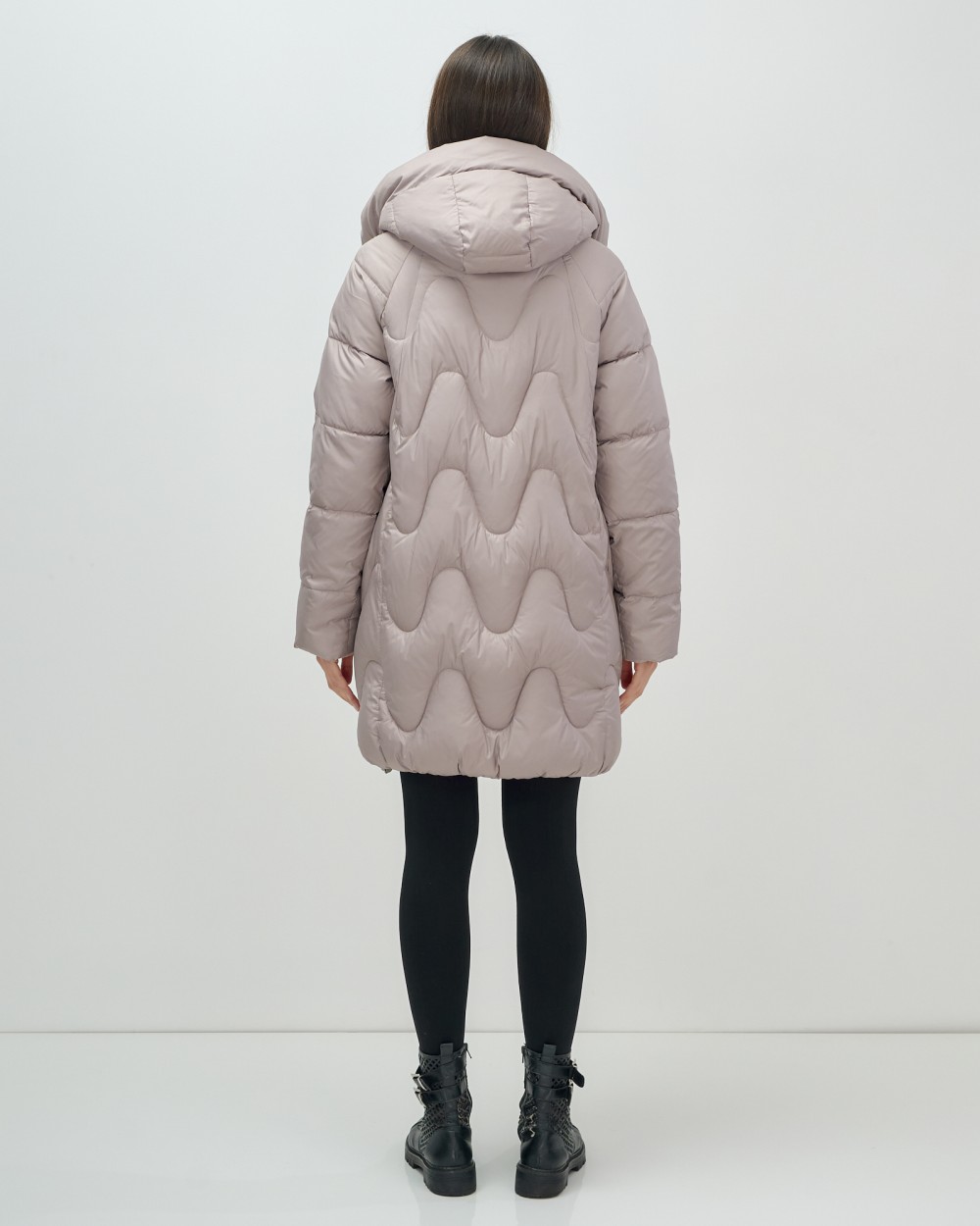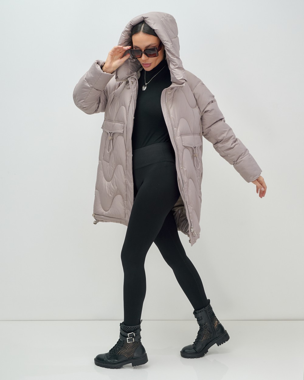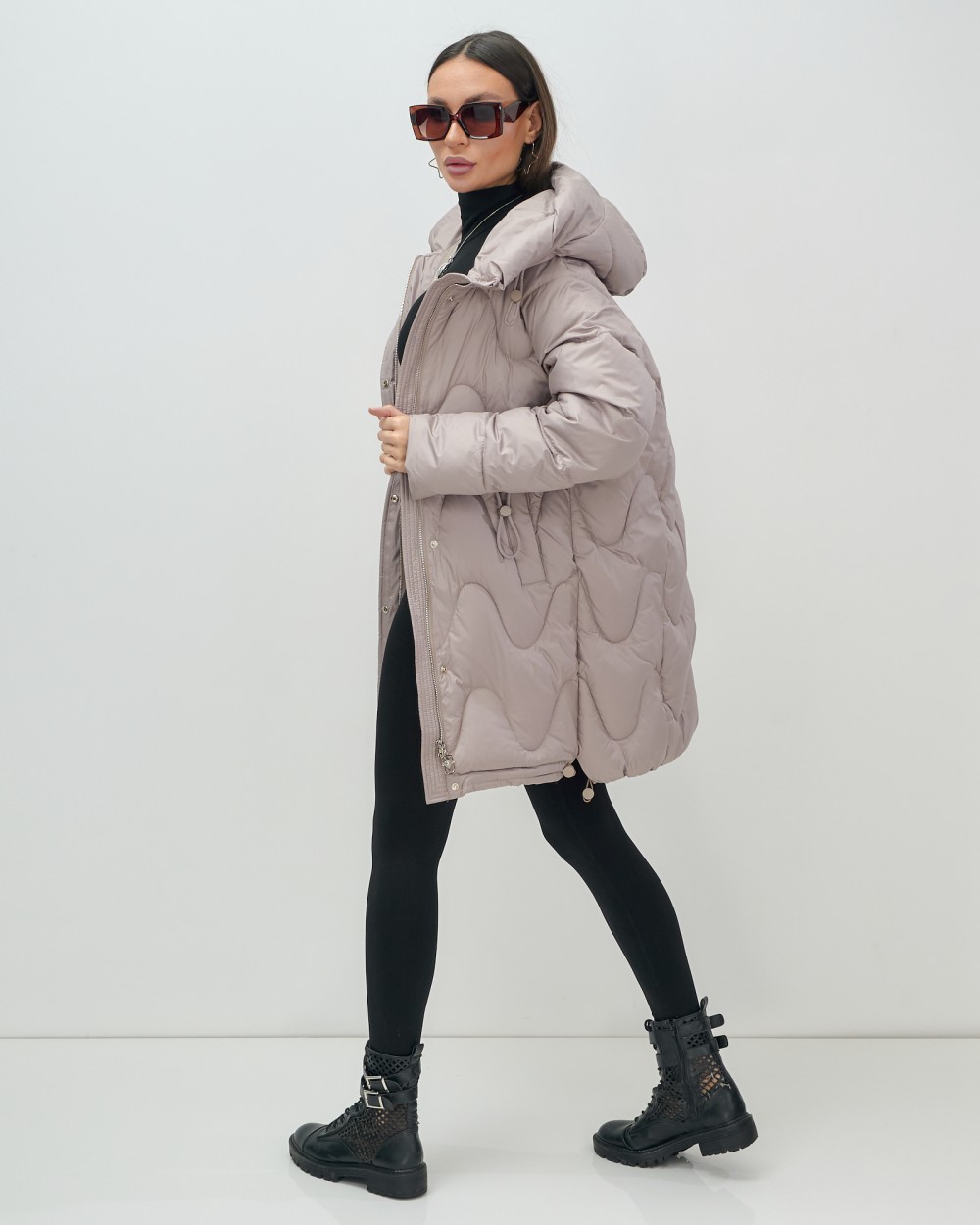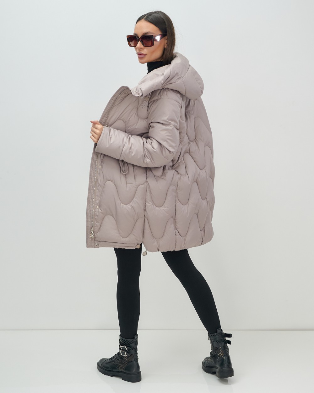 Куртка зимняя женская с капюшоном модная светло-коричневого цвета 7653SK — Visdeer