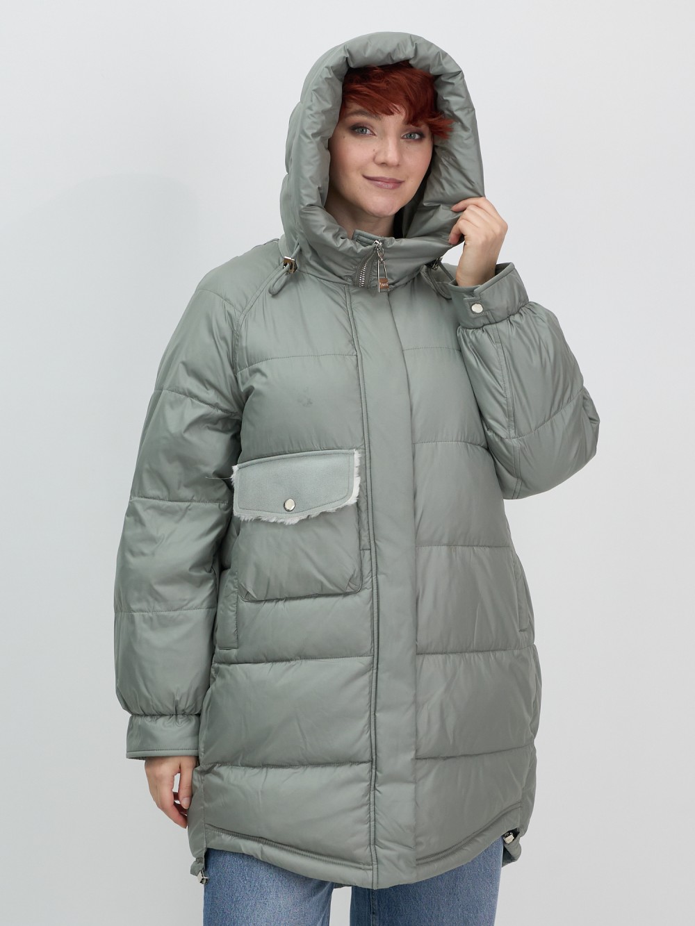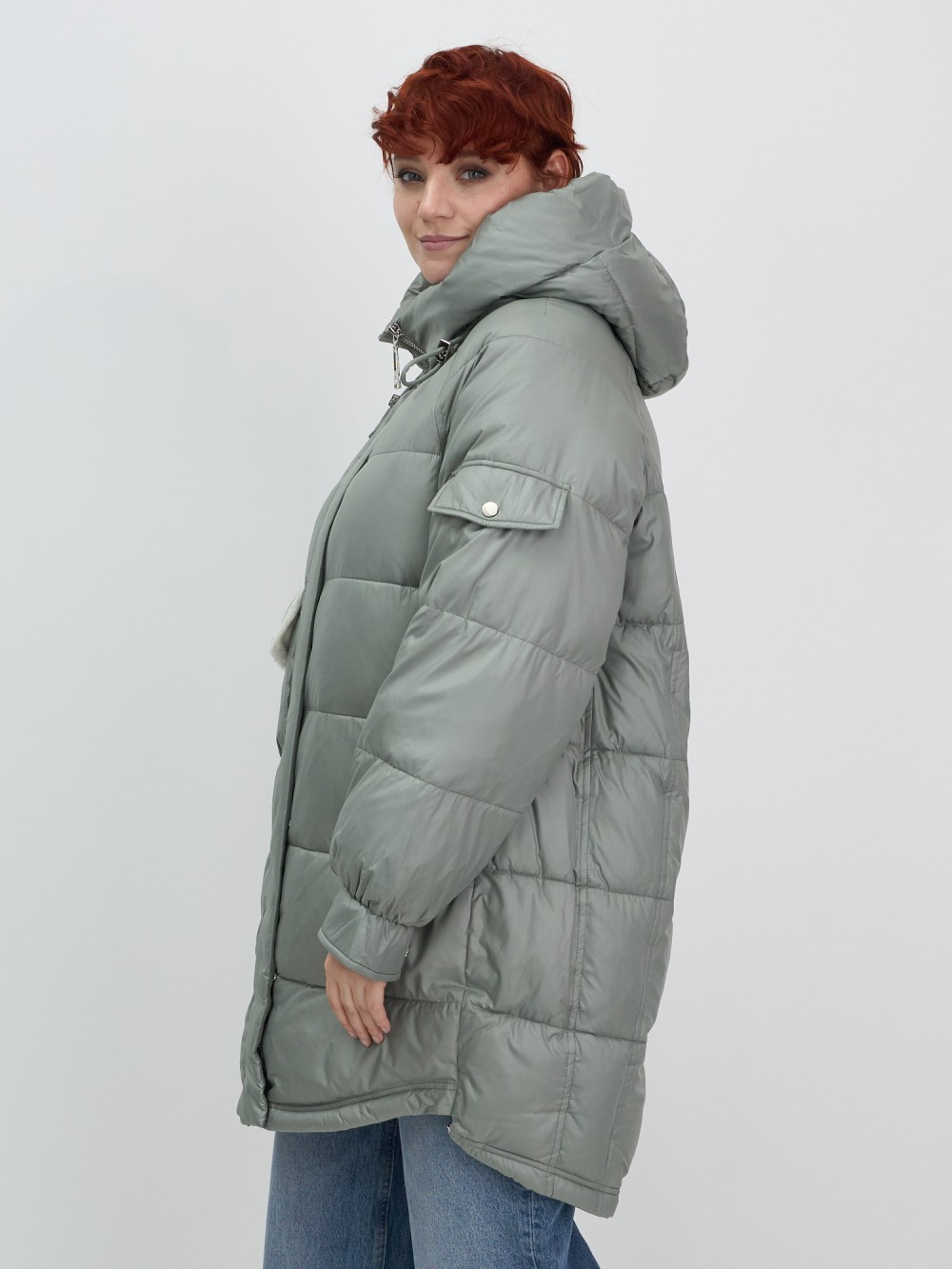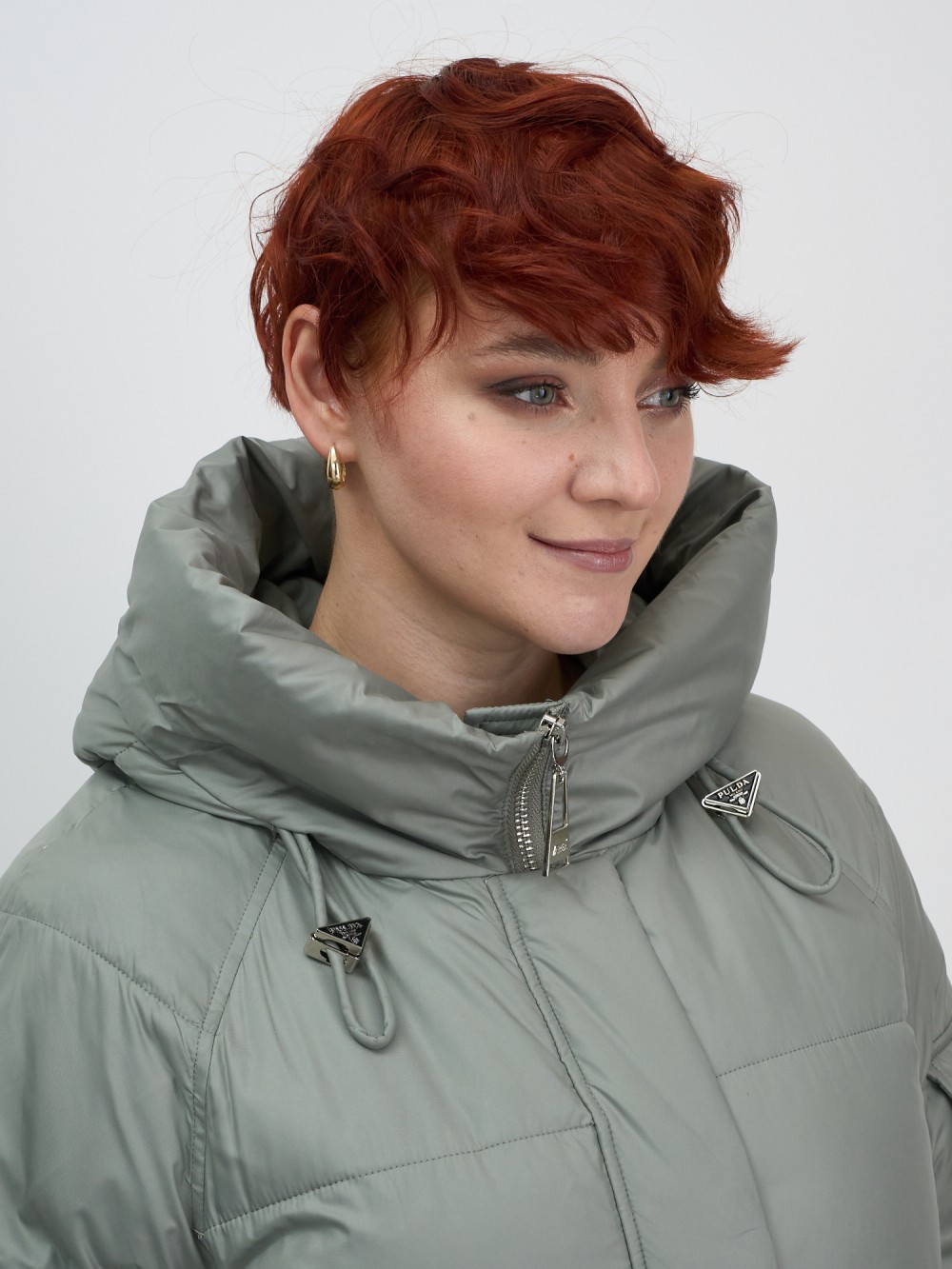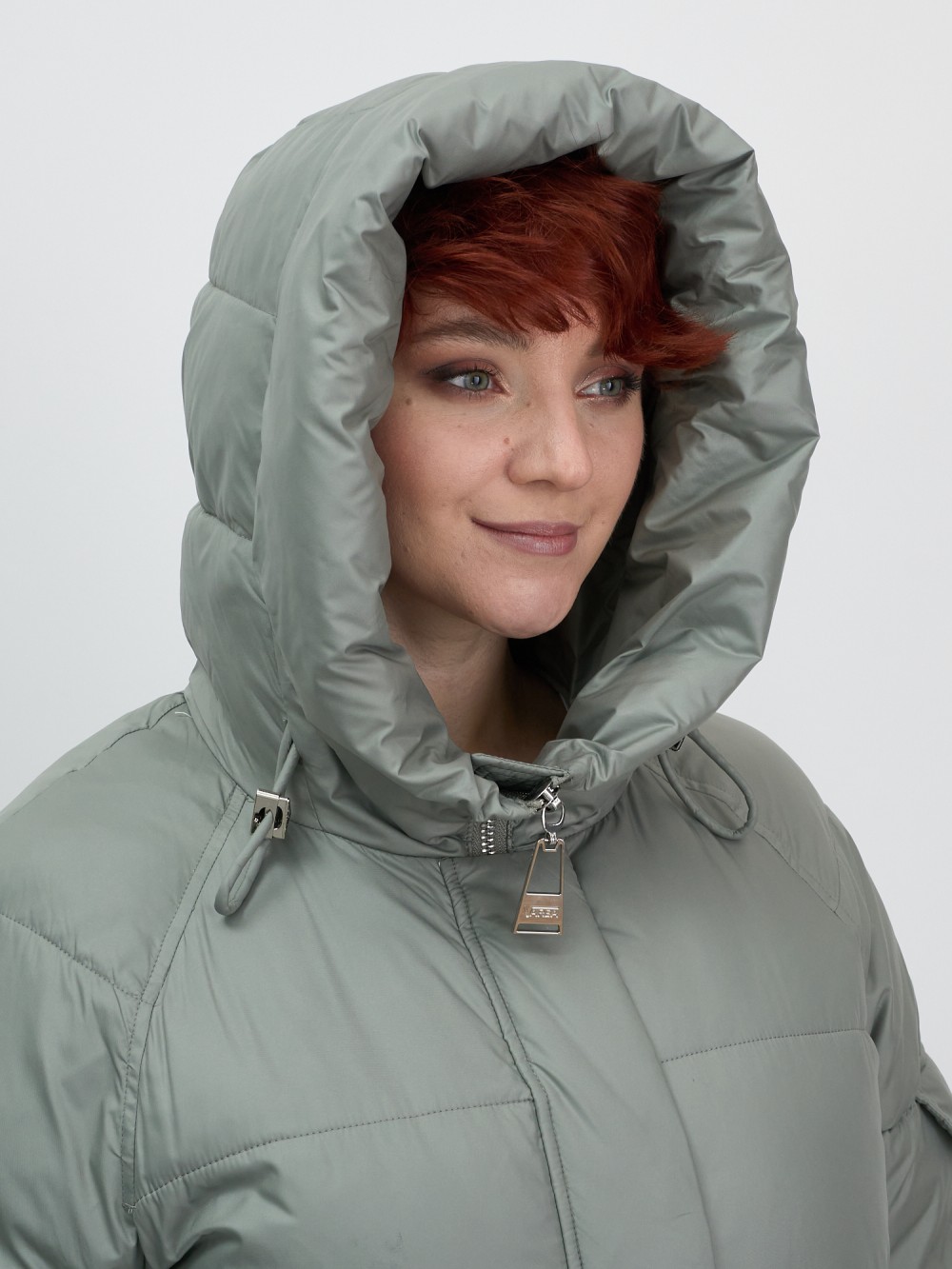Куртка зимняя женская с капюшоном модная зеленого цвета 7341Z