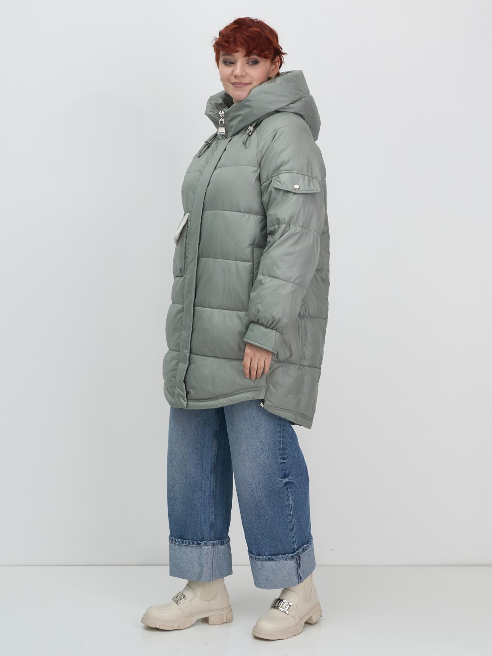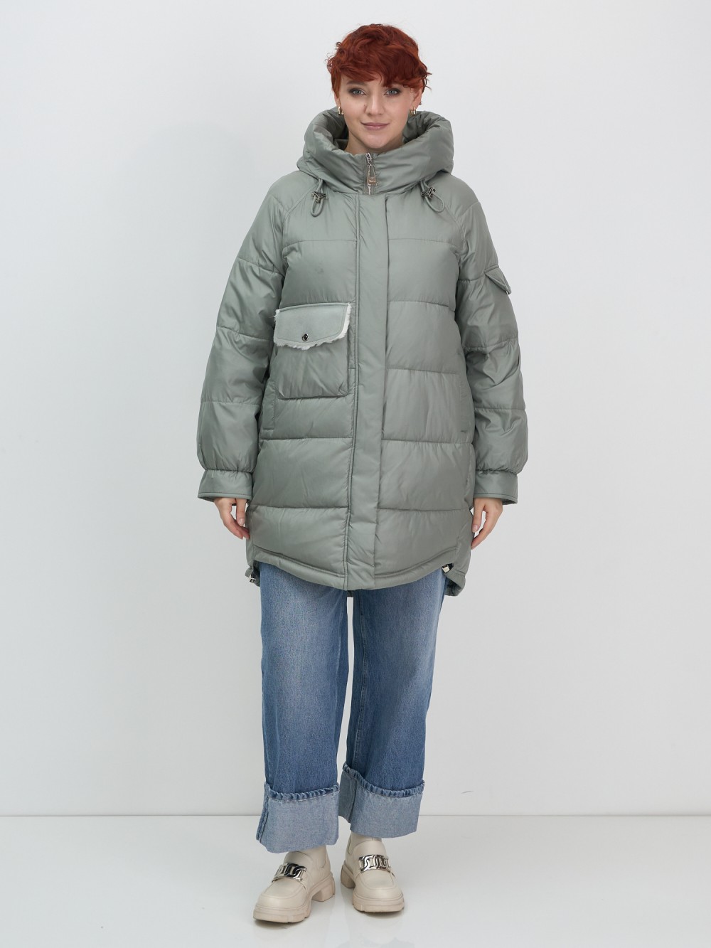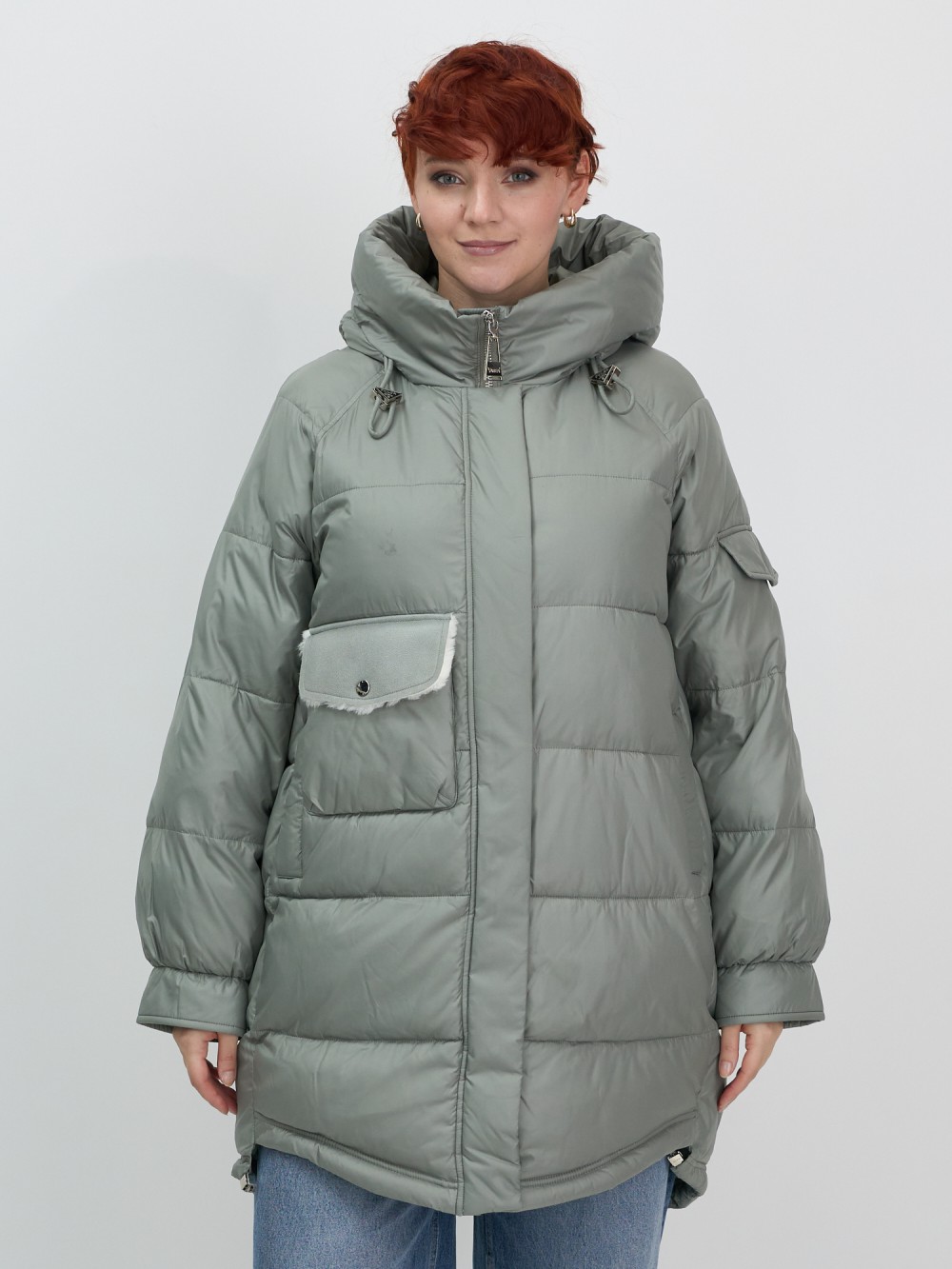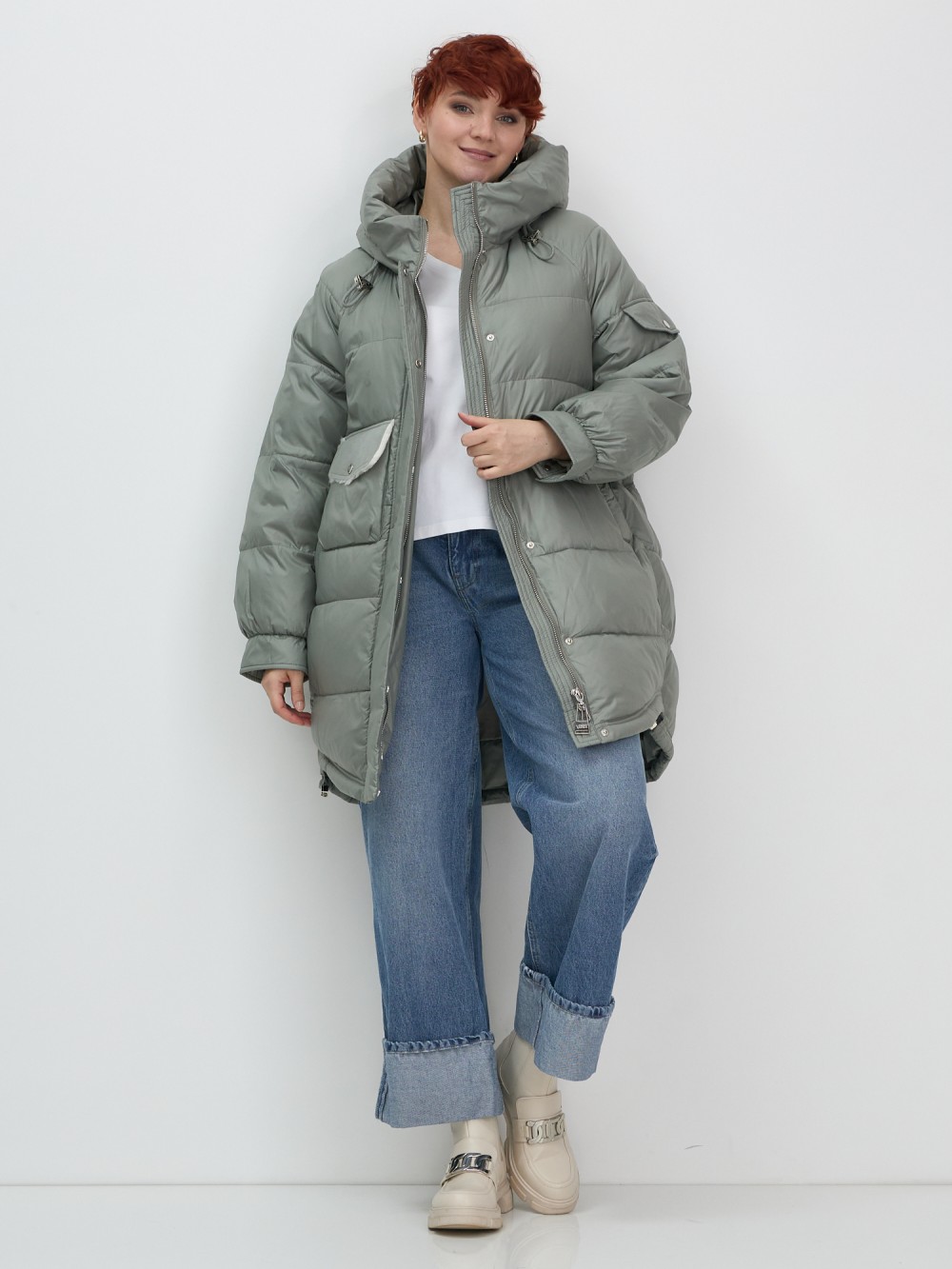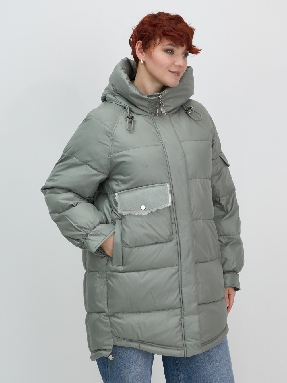 Куртка зимняя женская с капюшоном модная зеленого цвета 7341Z
