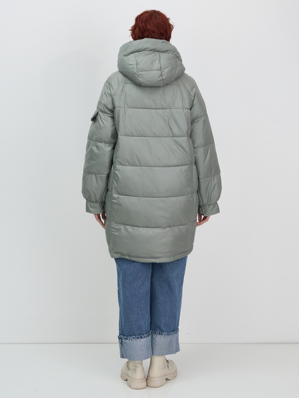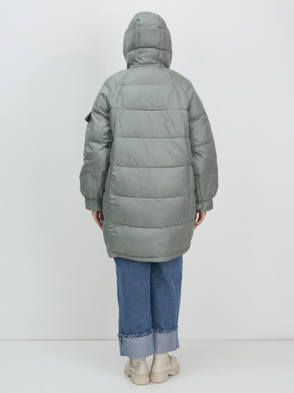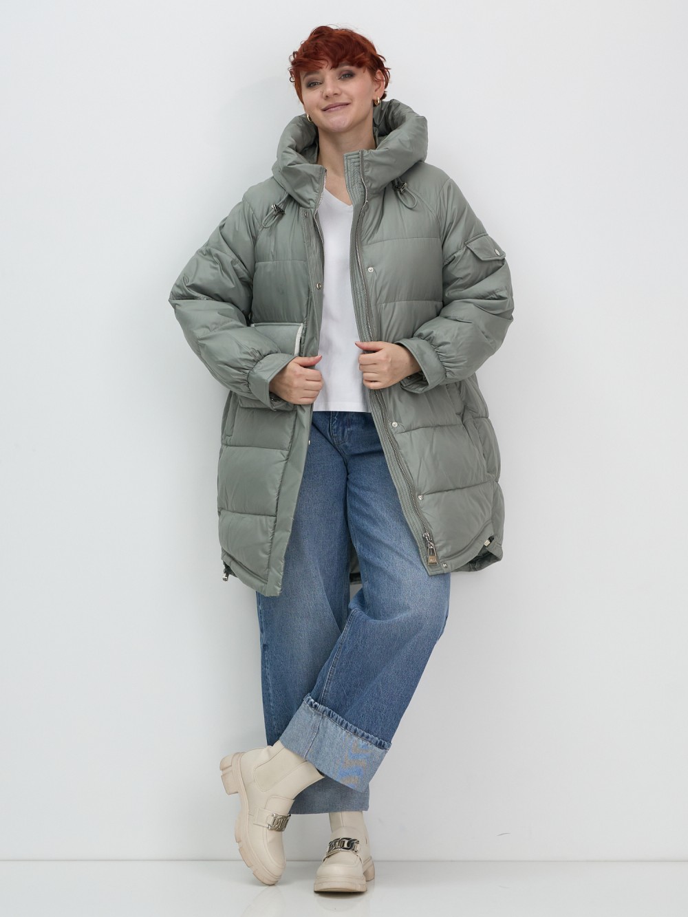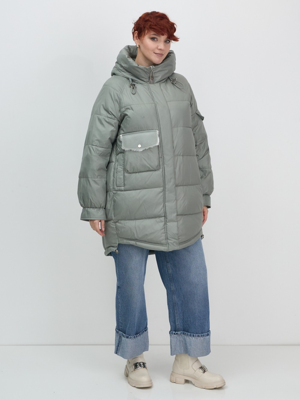 Куртка зимняя женская с капюшоном модная зеленого цвета 7341Z
