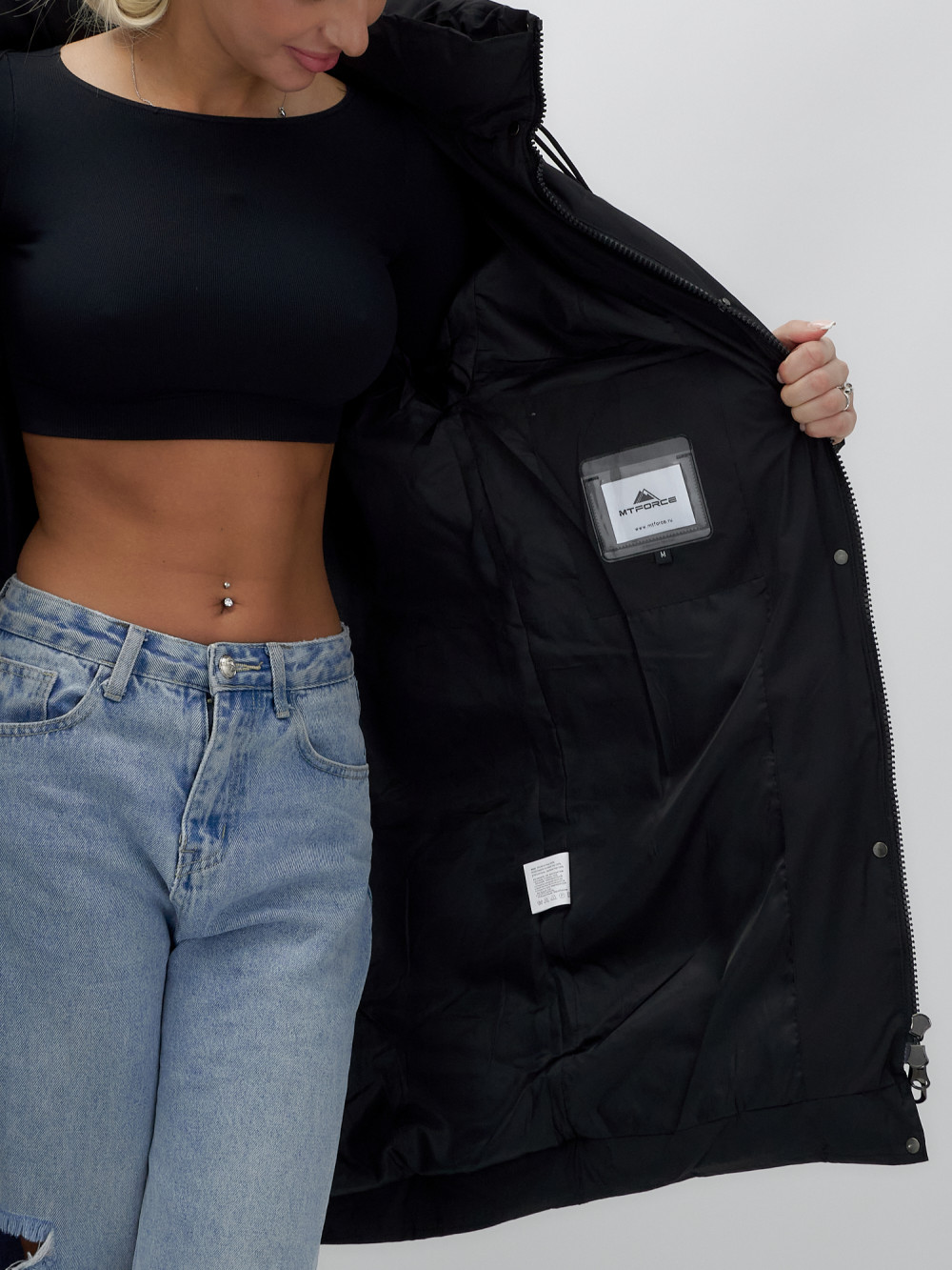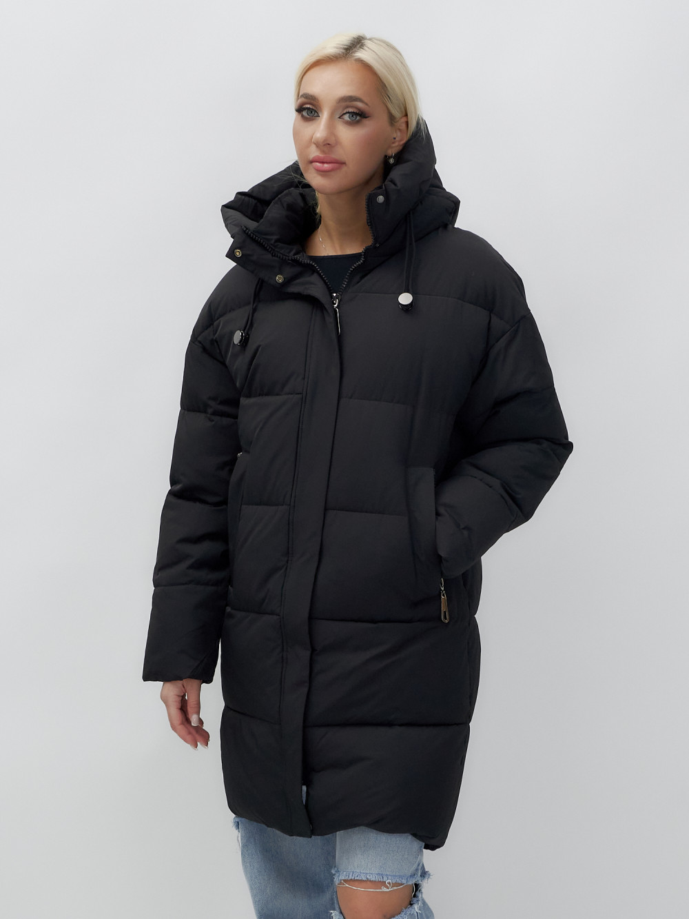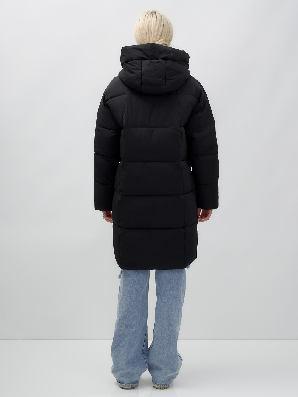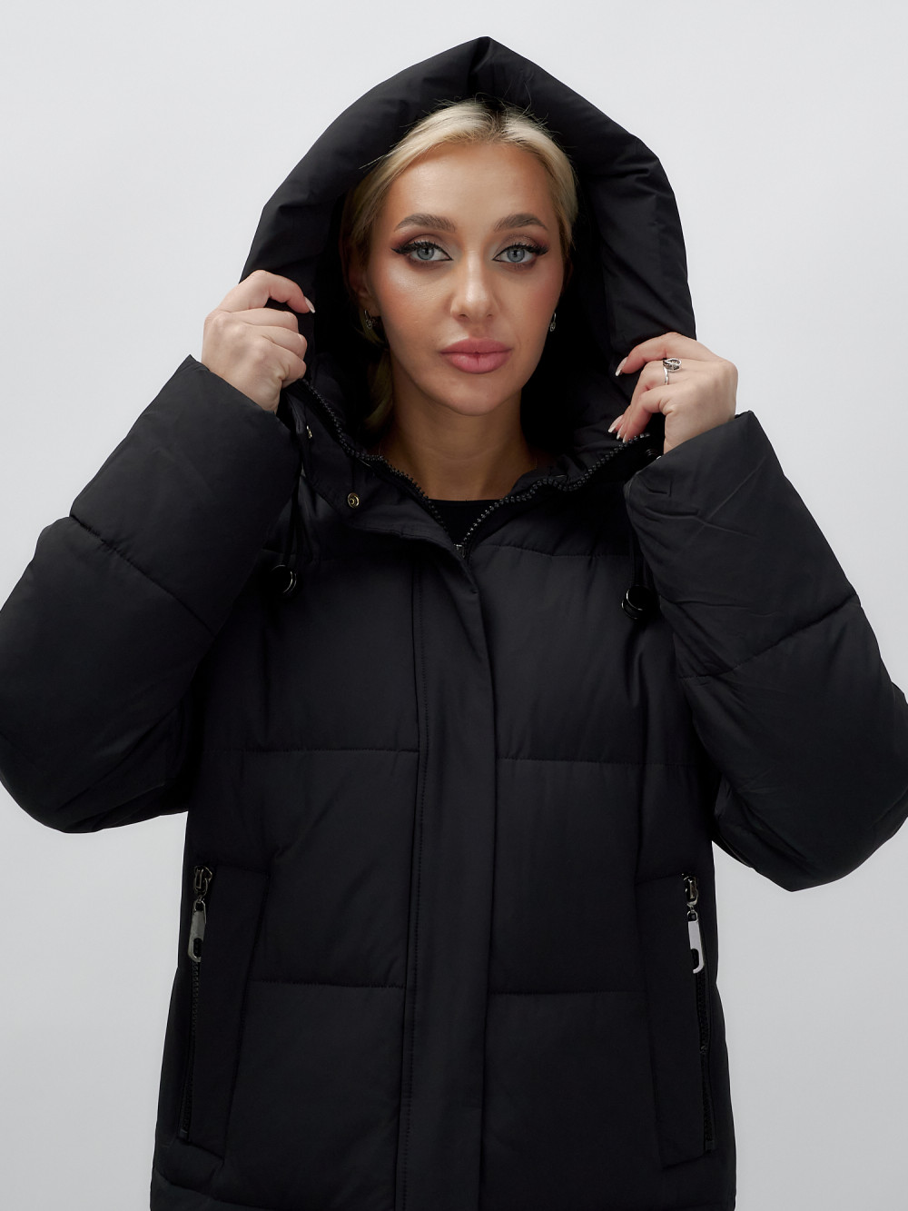 Куртка зимняя женская с капюшоном удлиненная стеганная черного цвета 9638Ch — MTFORCE
