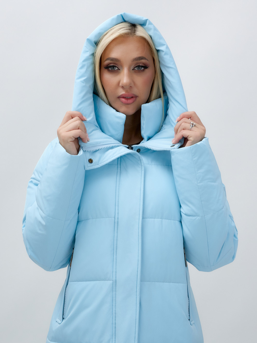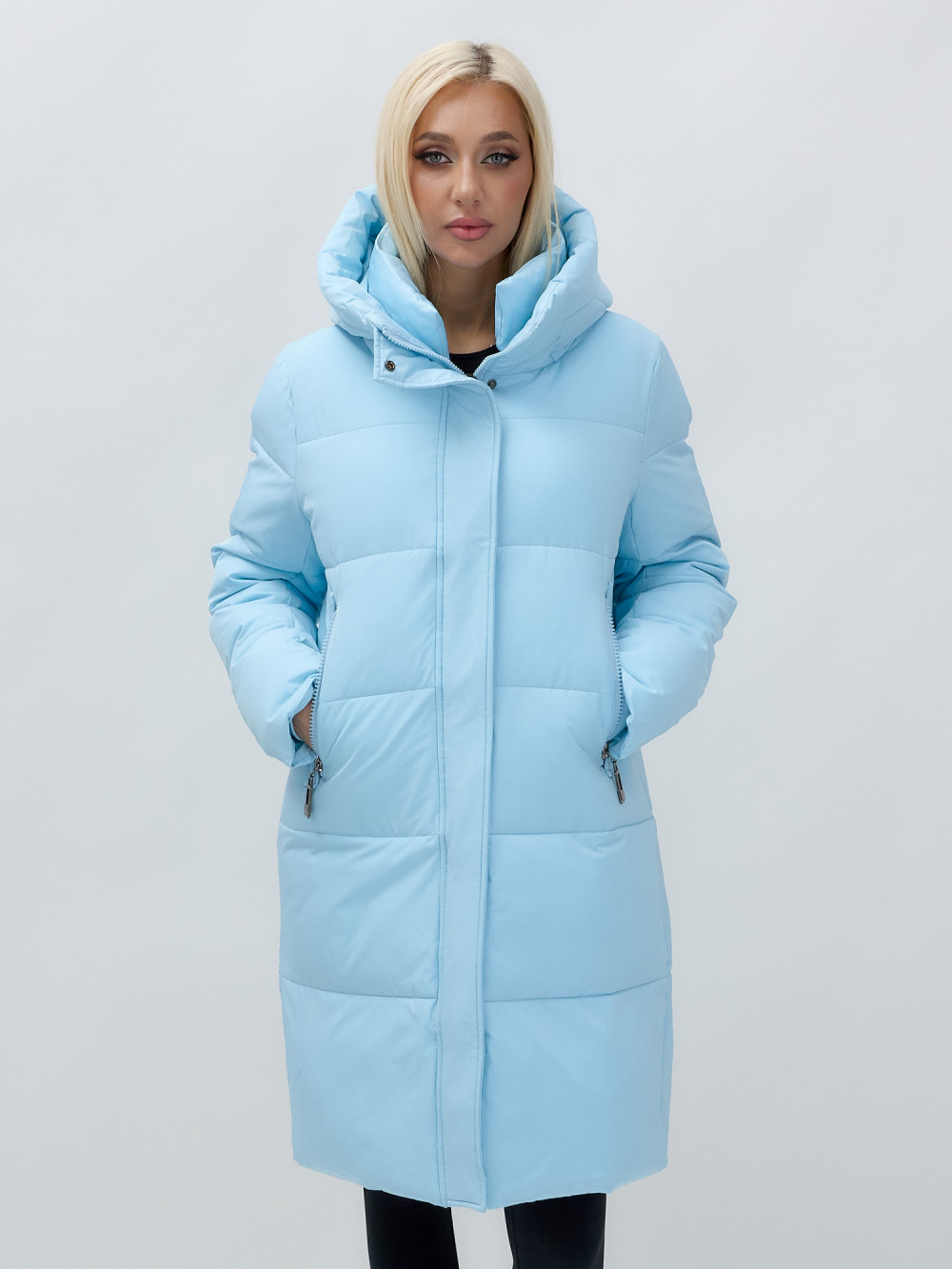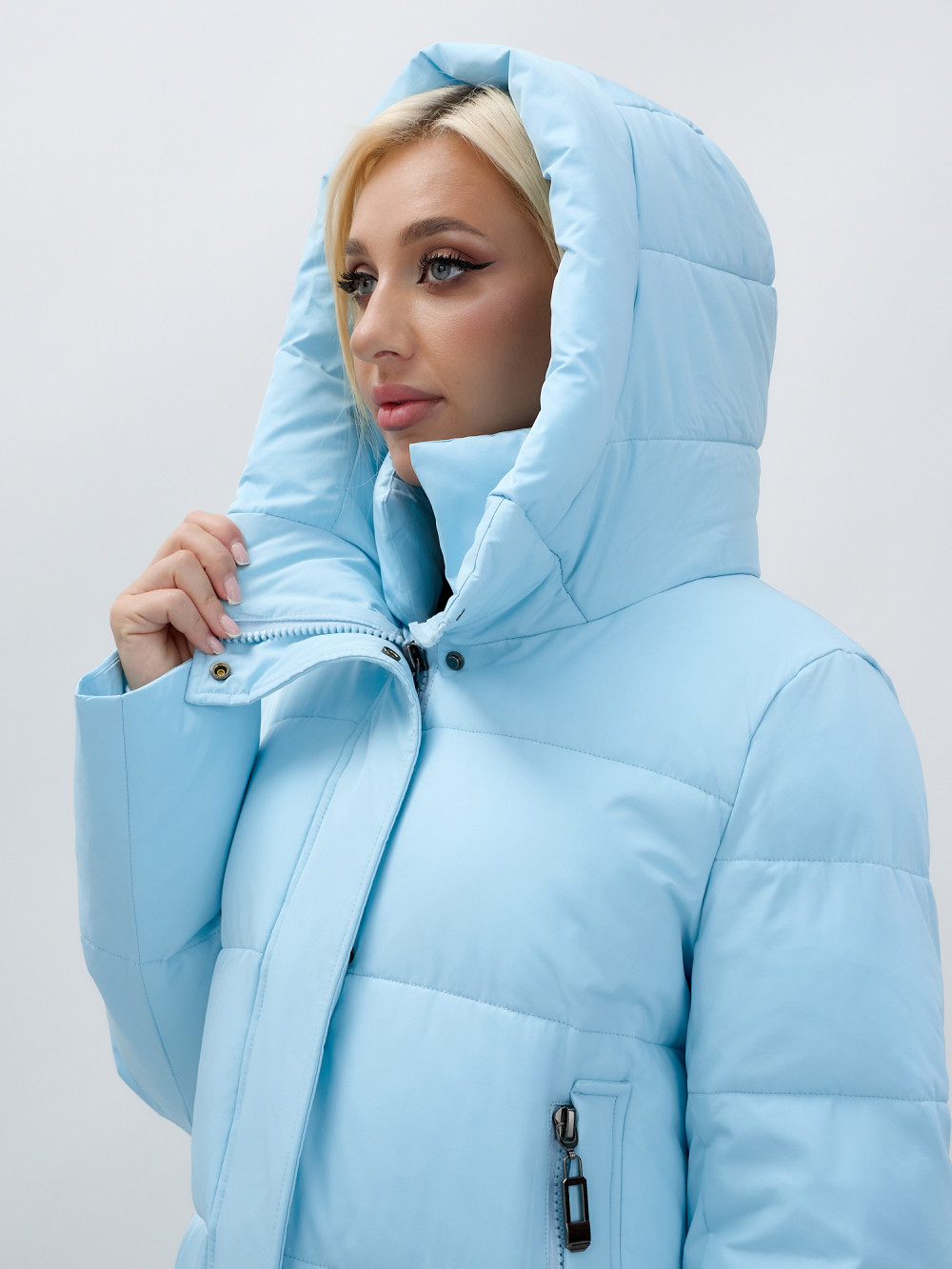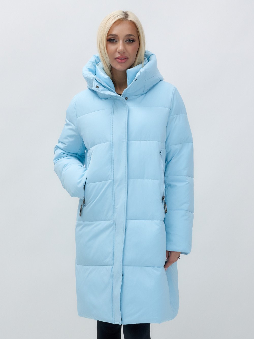 Куртка зимняя женская с капюшоном удлиненная стеганная голубого цвета 9629Gl — MTFORCE