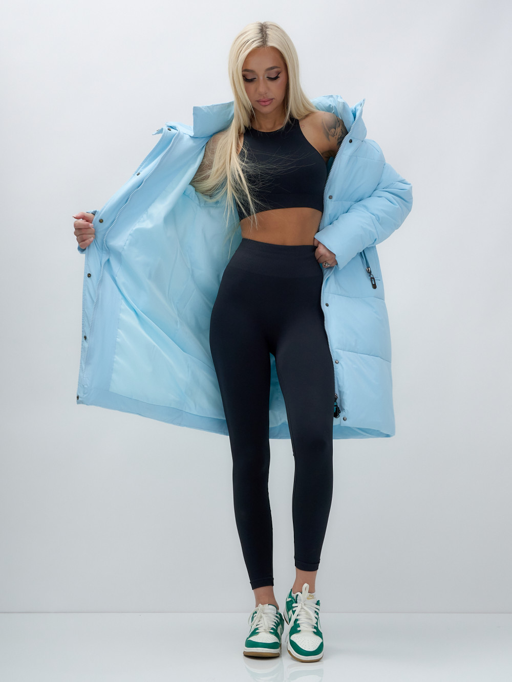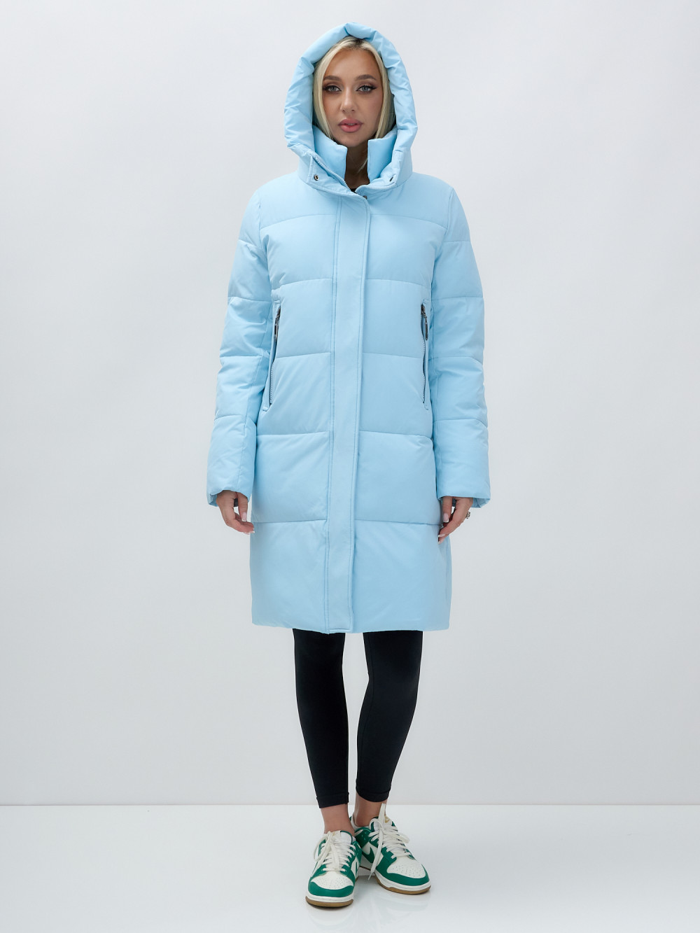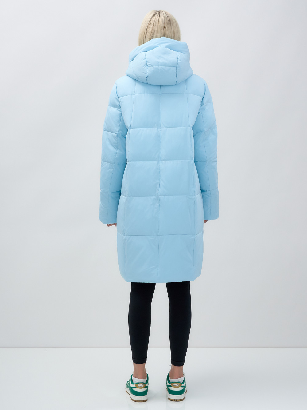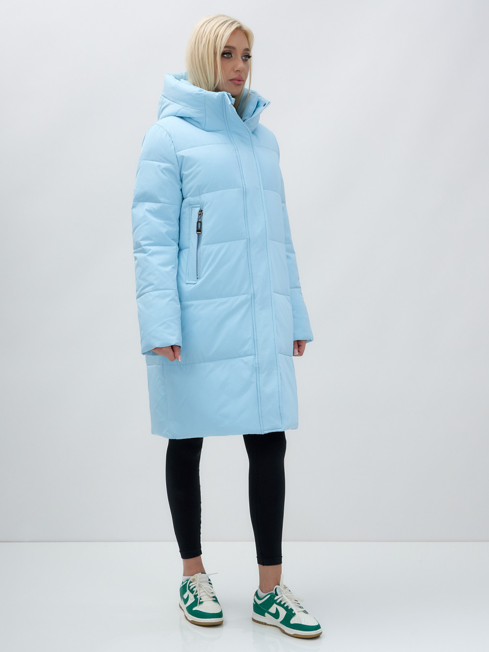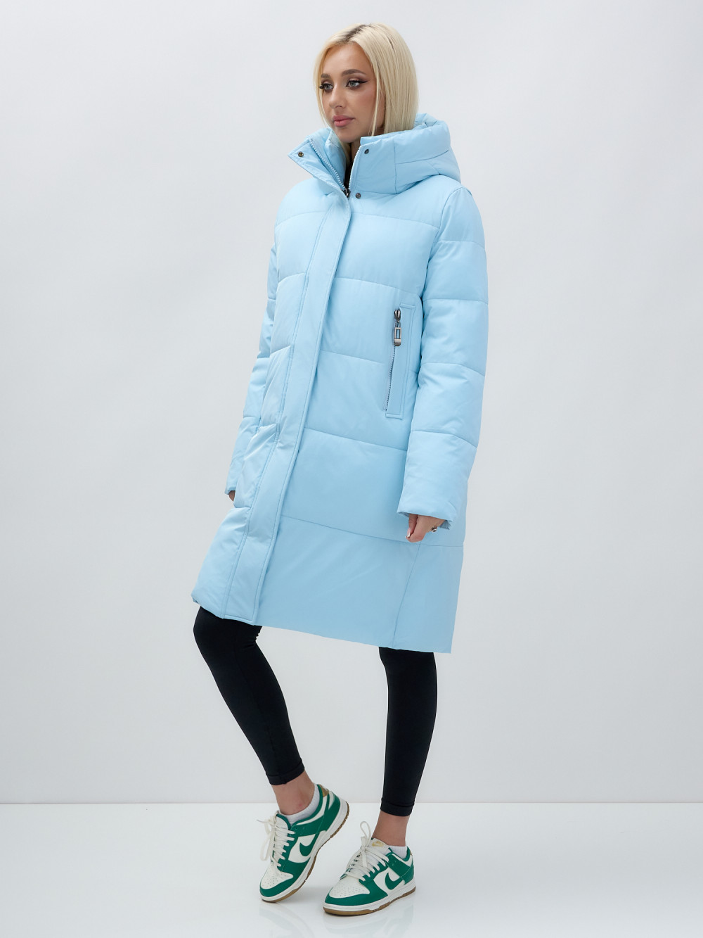 Куртка зимняя женская с капюшоном удлиненная стеганная голубого цвета 9629Gl — MTFORCE