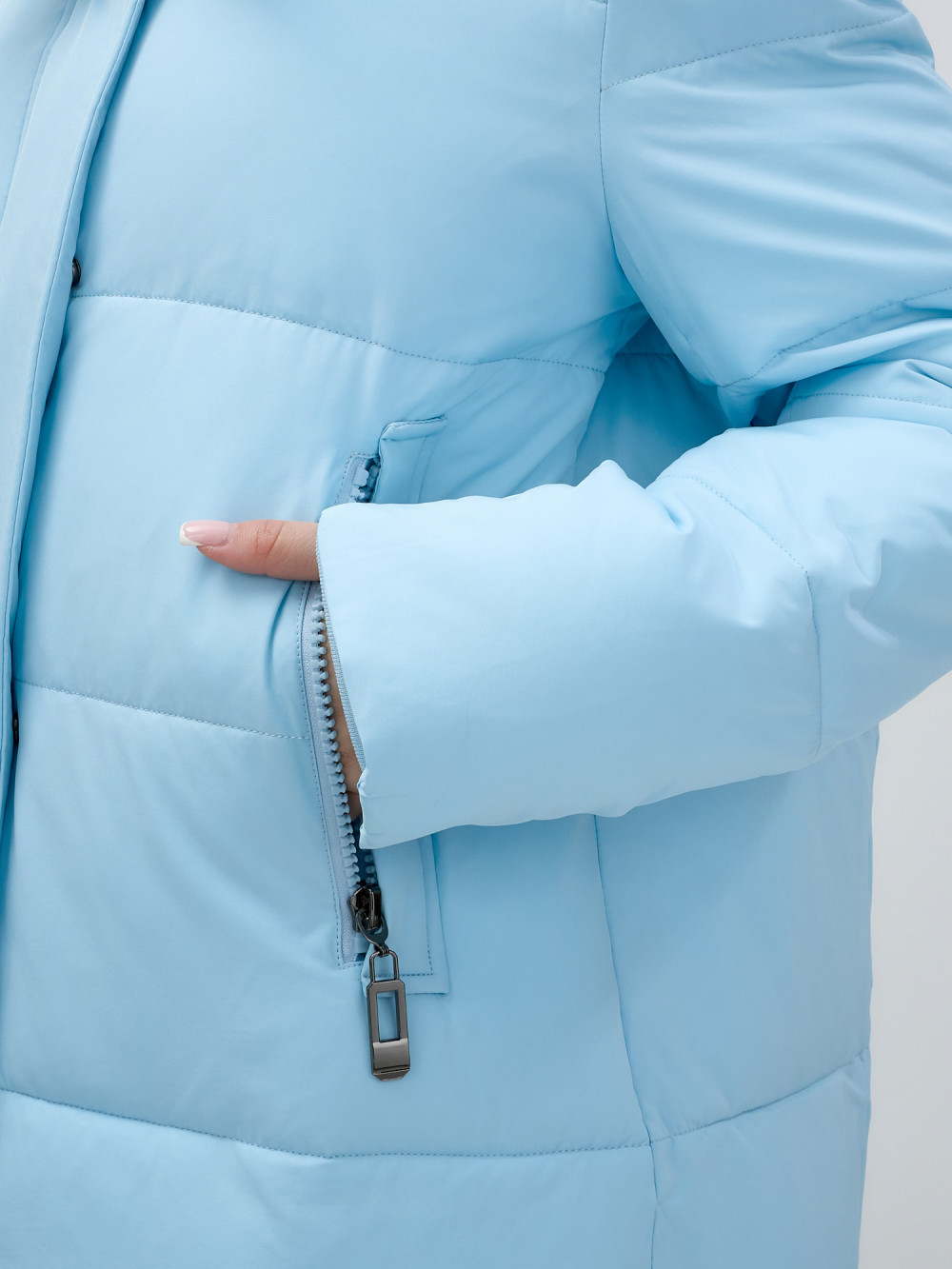 — Двойной замок: обеспечивает надежное закрытие и позволяет регулировать объем, что делает куртку универсальной для разных температур.