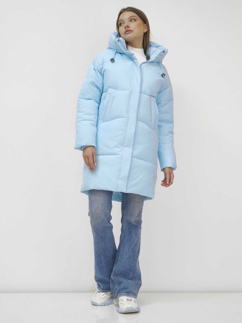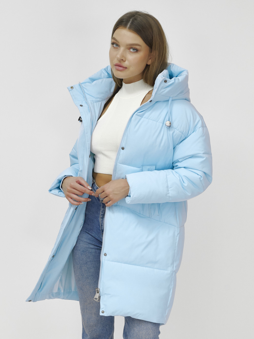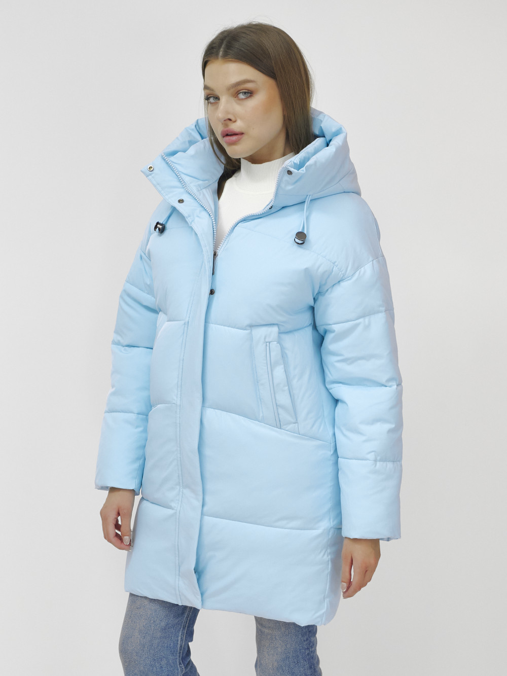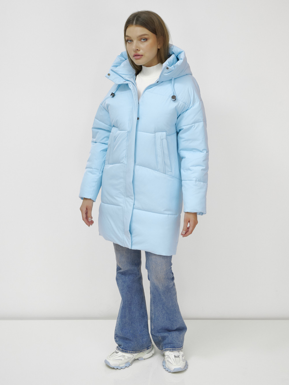 Куртка зимняя женская с капюшоном удлиненная стеганная голубого цвета 9637Gl — MTFORCE