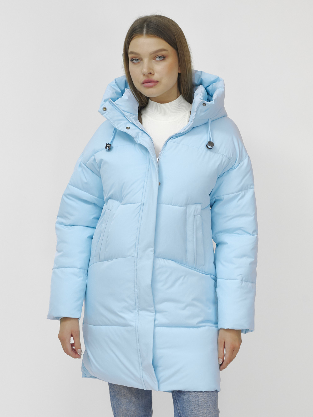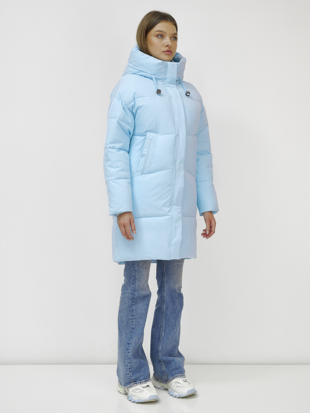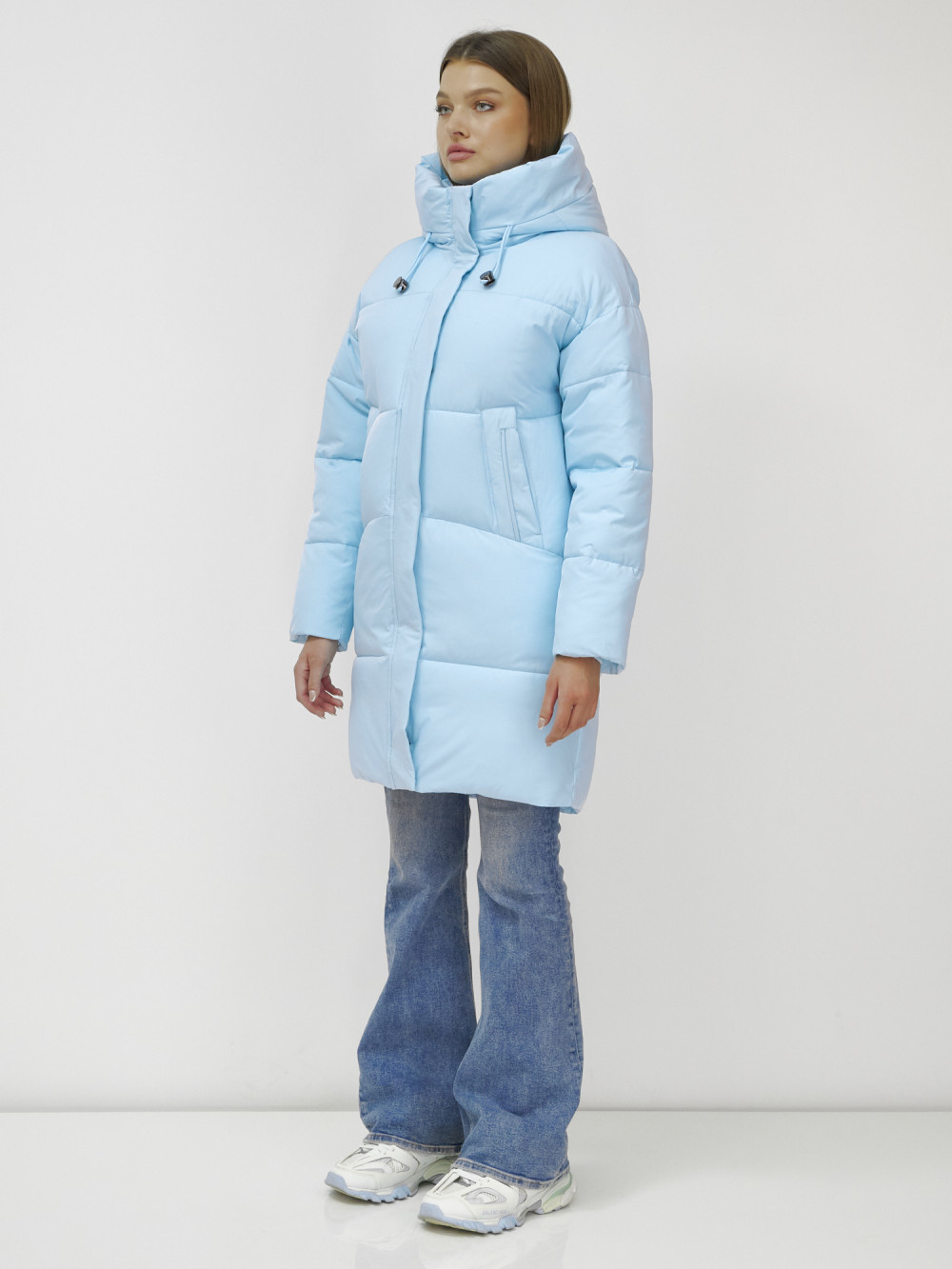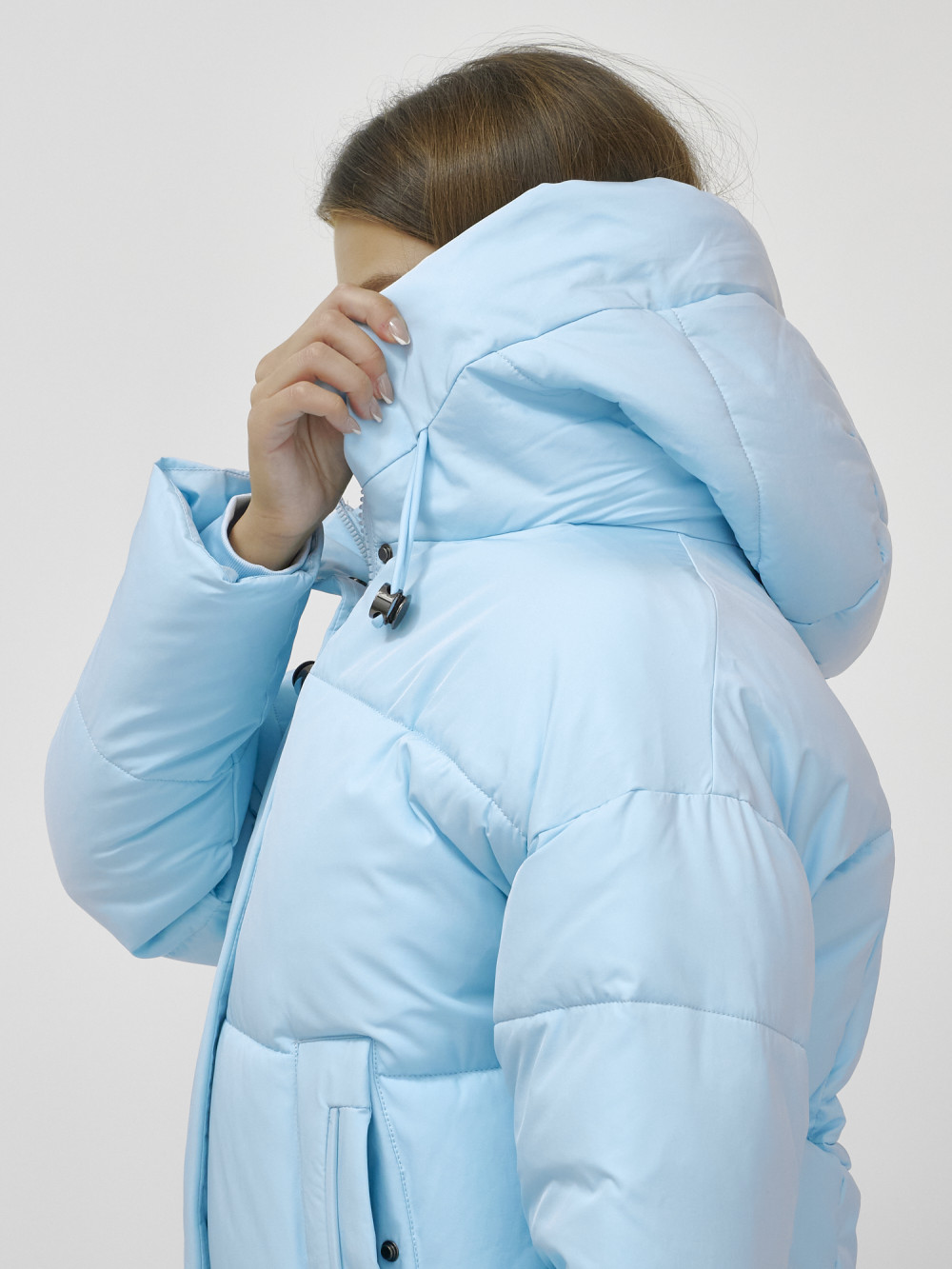Куртка зимняя женская с капюшоном удлиненная стеганная голубого цвета 9637Gl — MTFORCE