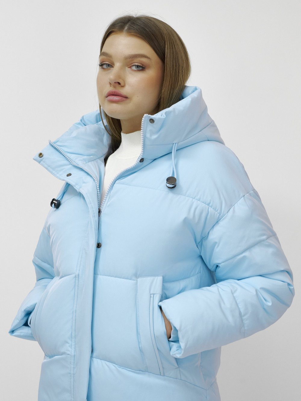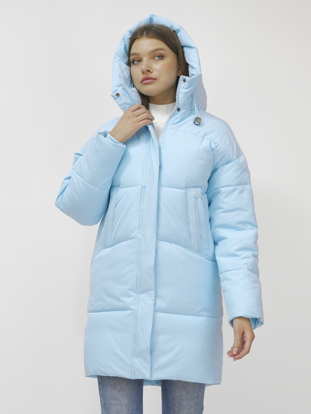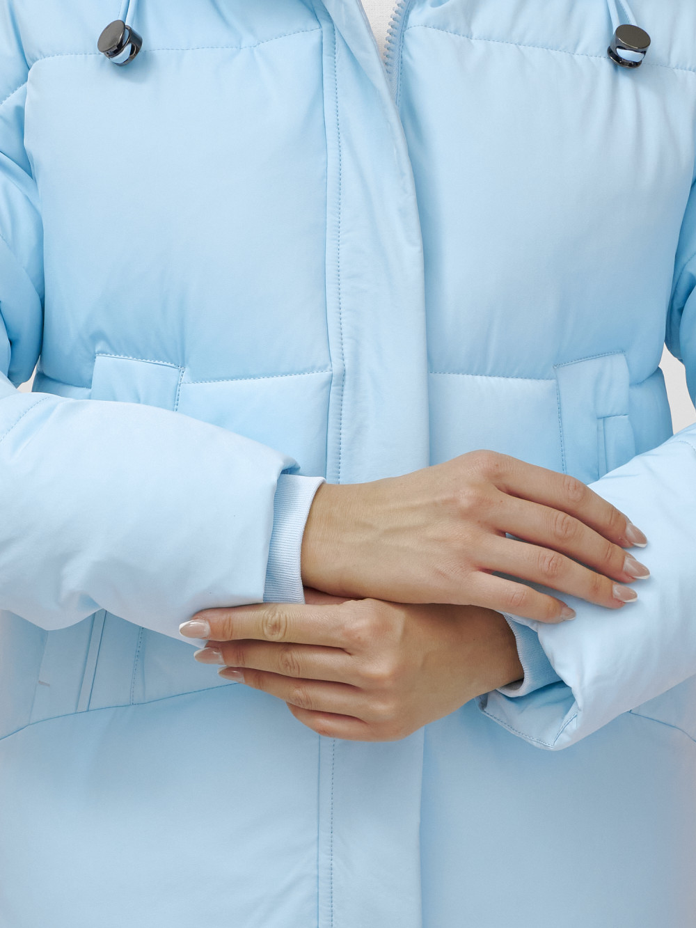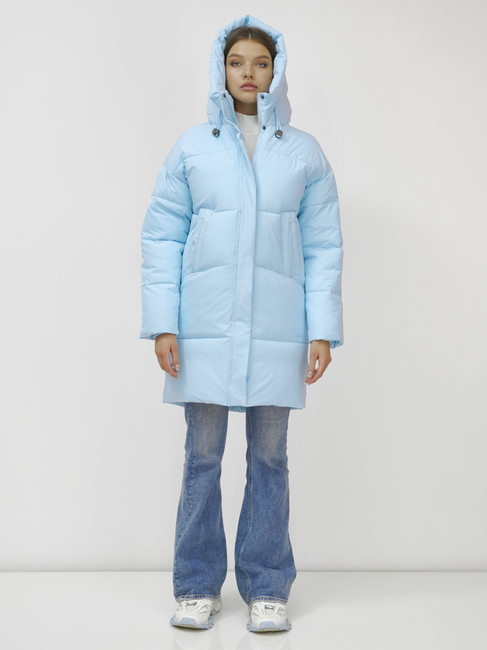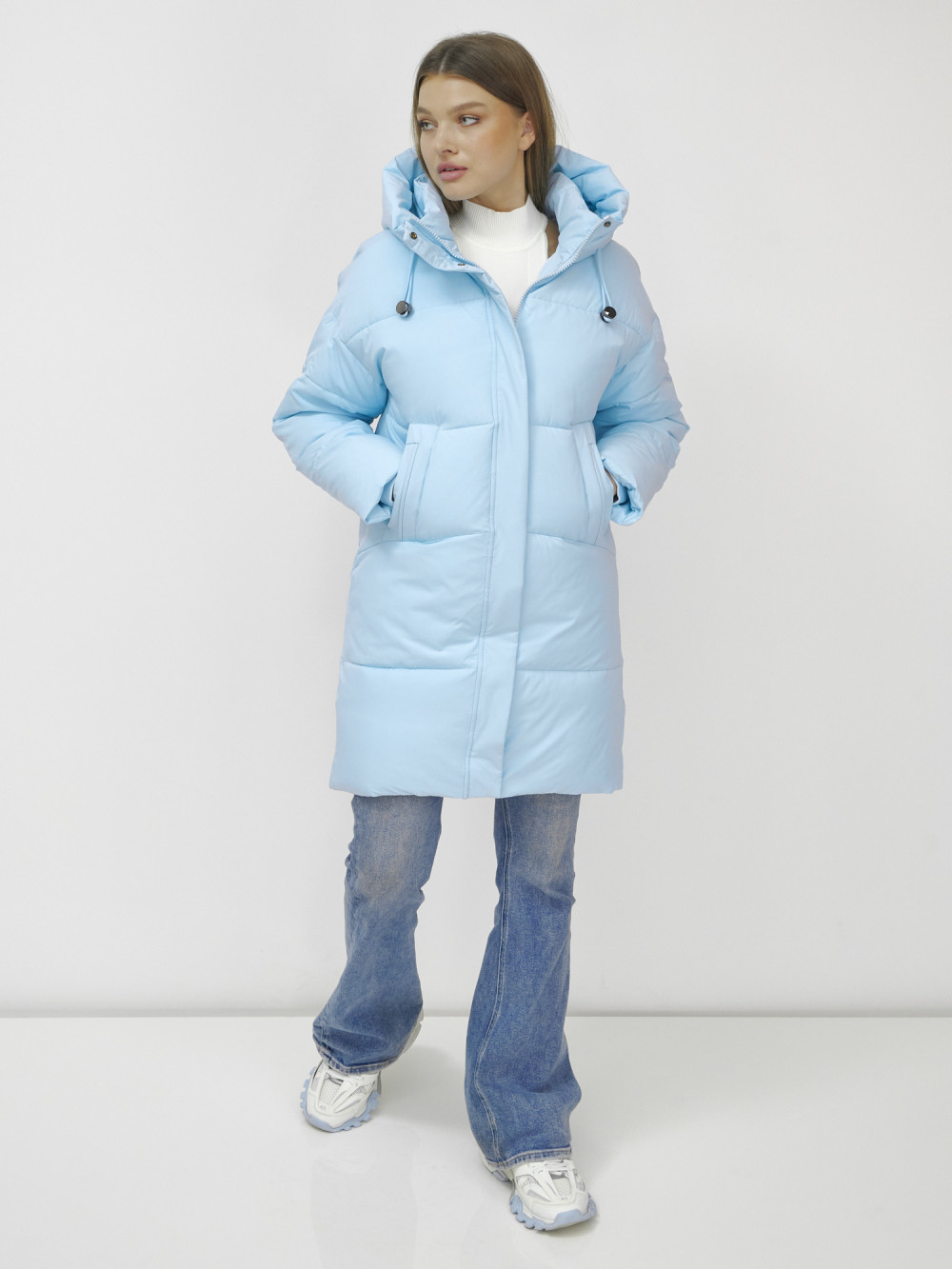 Куртка зимняя женская с капюшоном удлиненная стеганная голубого цвета 9637Gl — MTFORCE