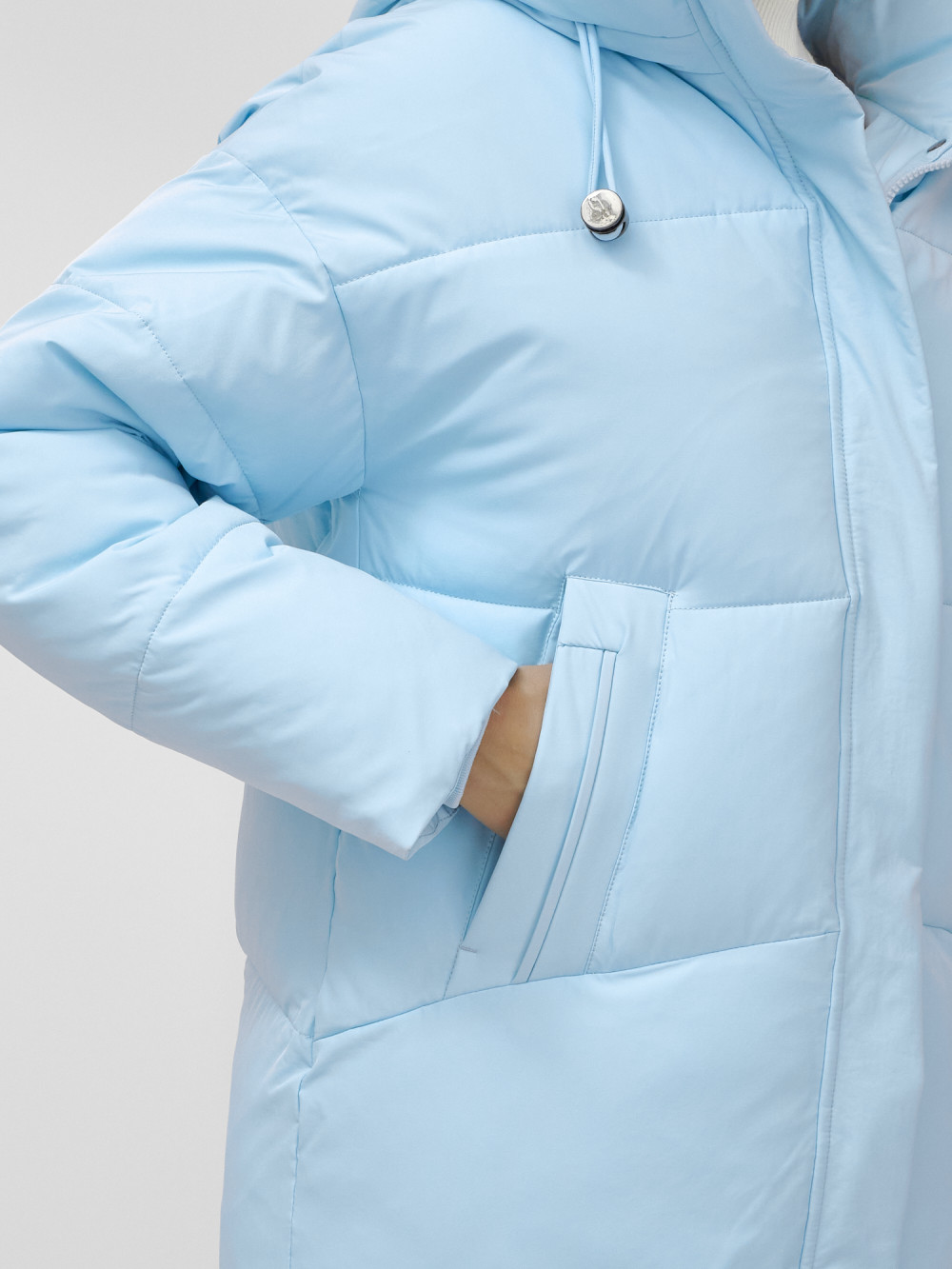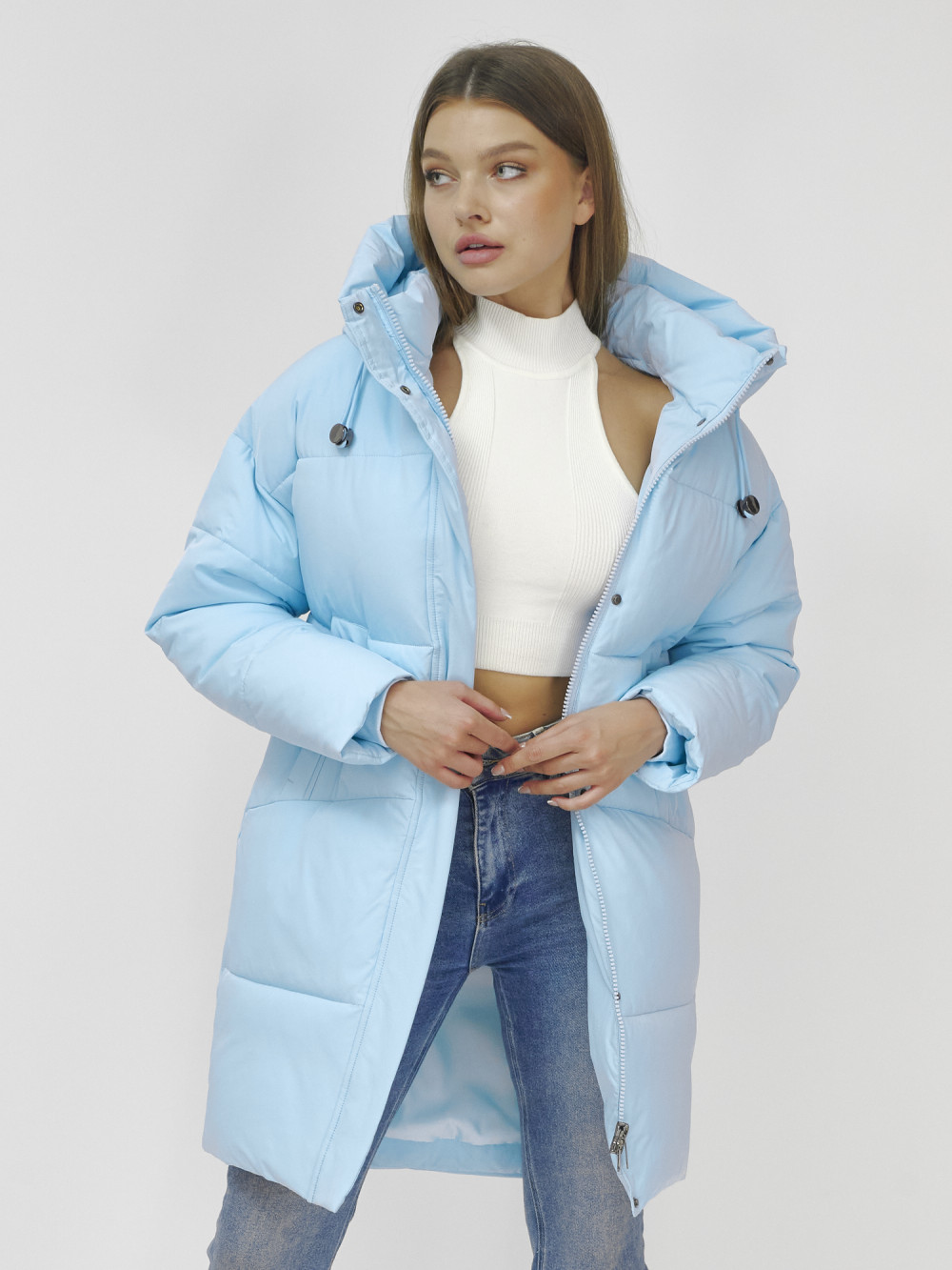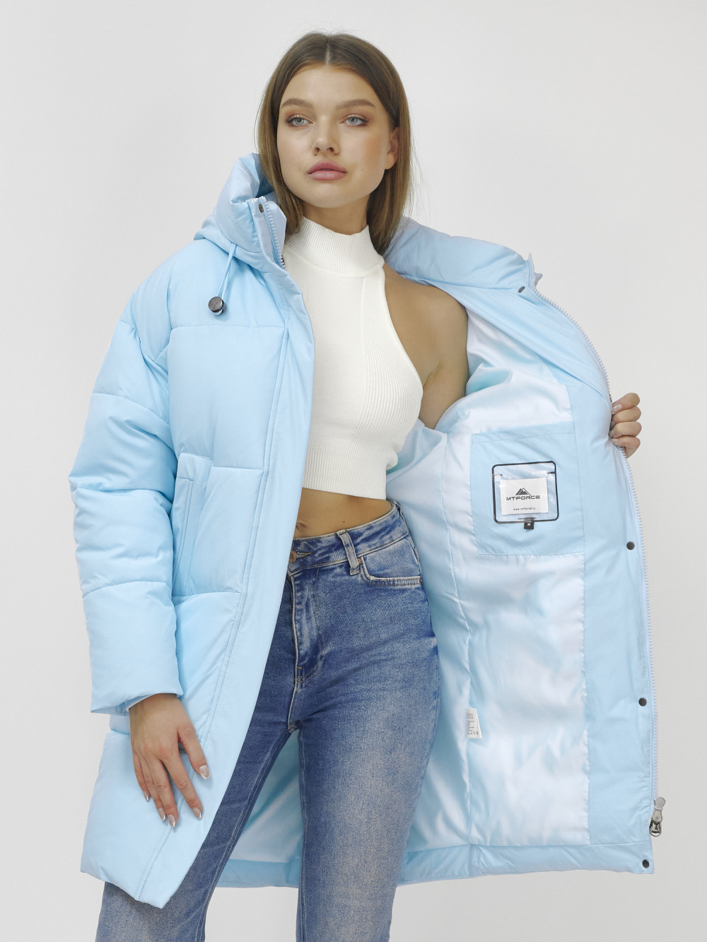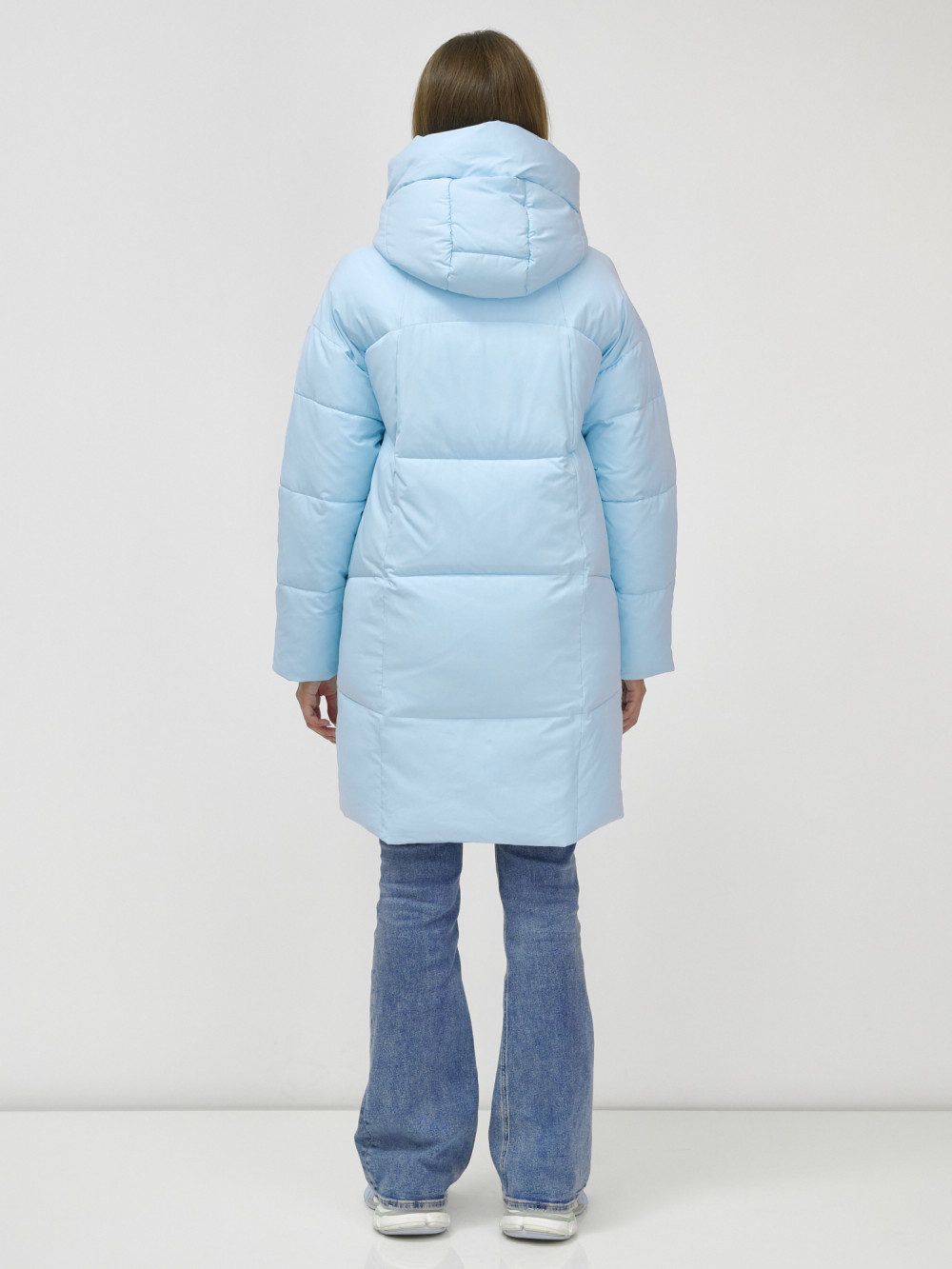 Куртка зимняя женская с капюшоном удлиненная стеганная голубого цвета 9637Gl — MTFORCE