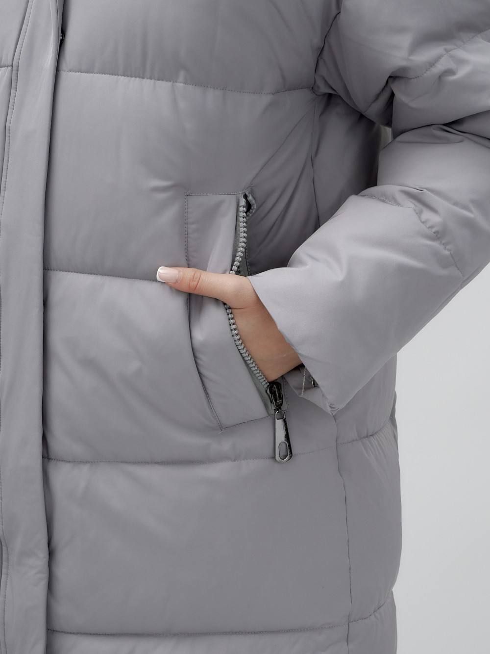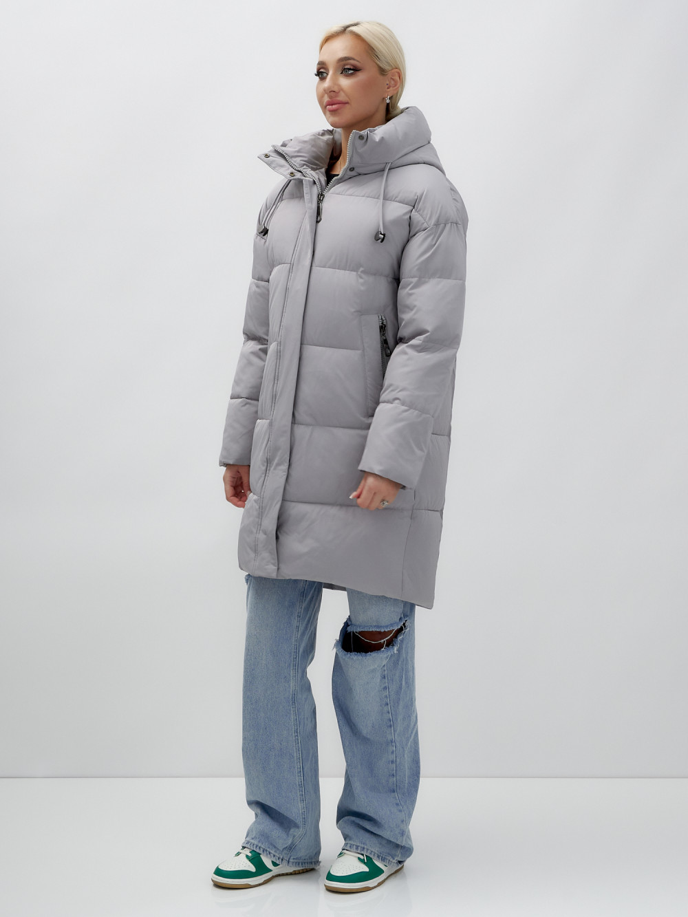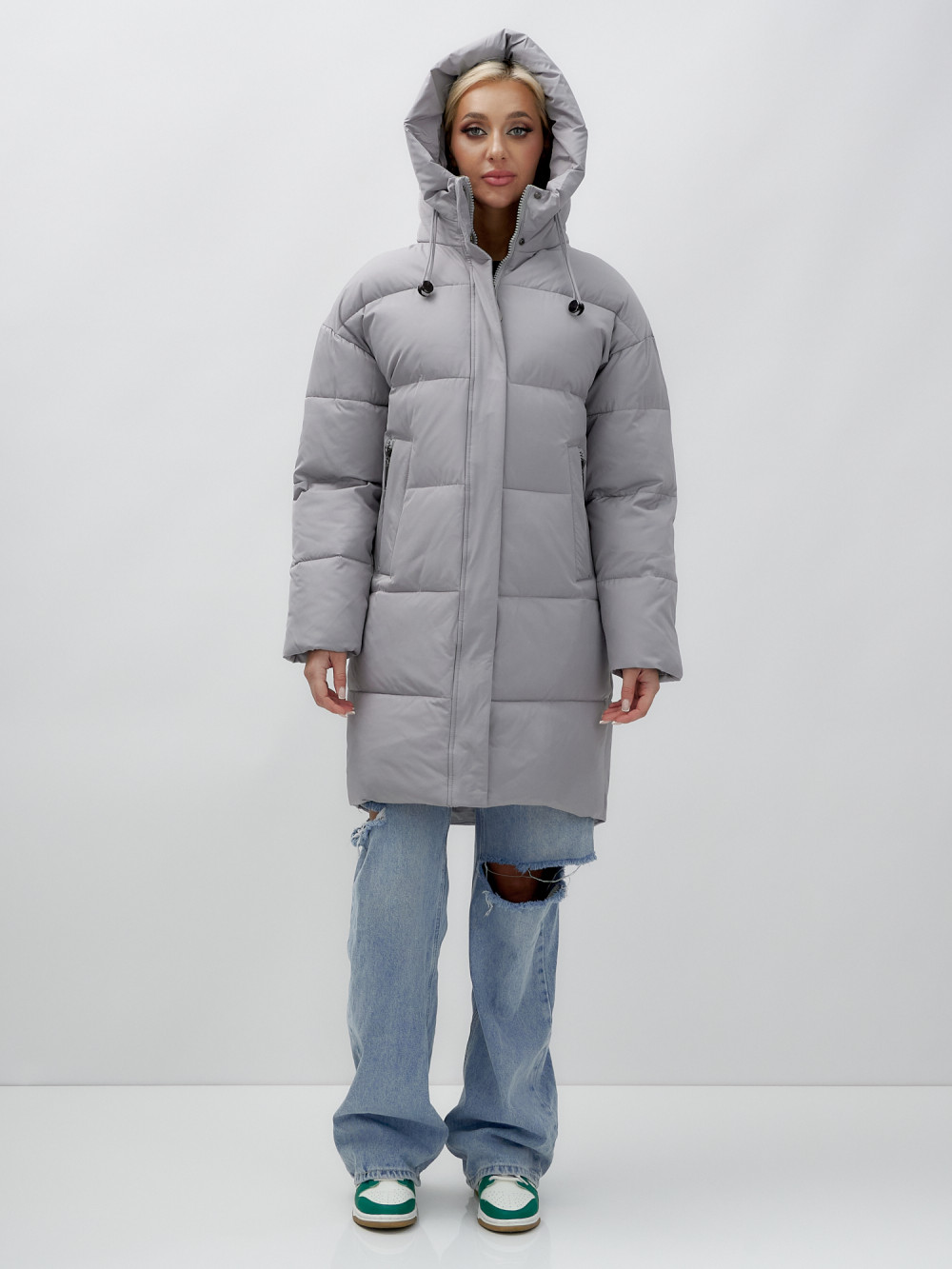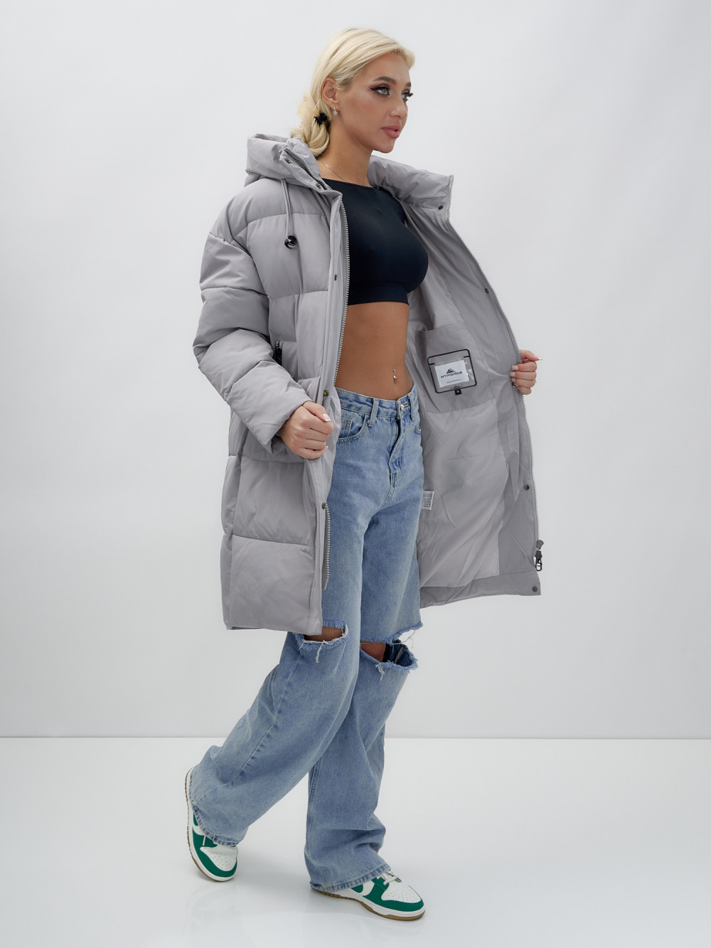 Куртка зимняя женская с капюшоном удлиненная стеганная серого цвета 9638Sr — MTFORCE