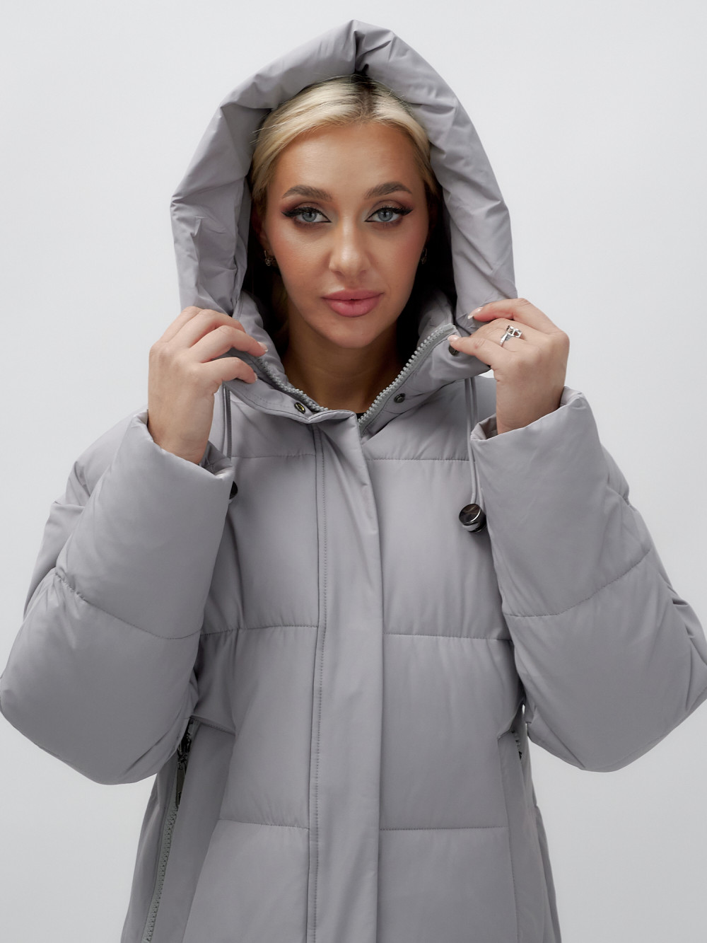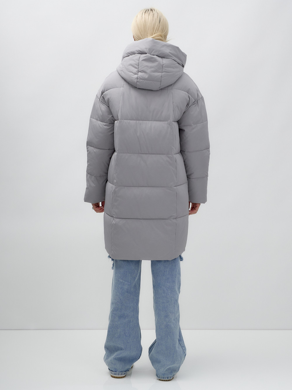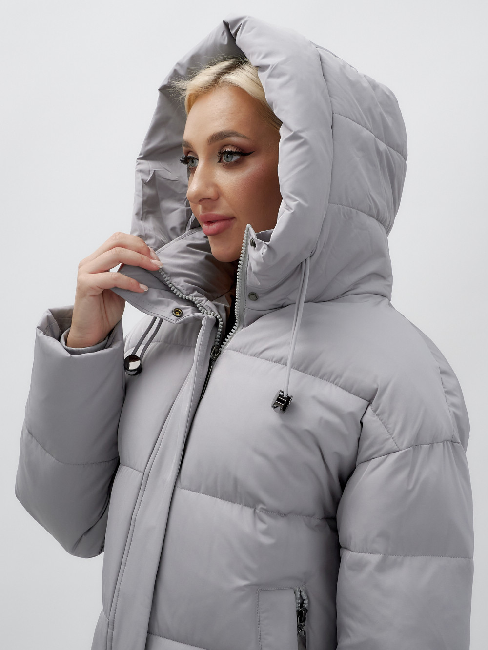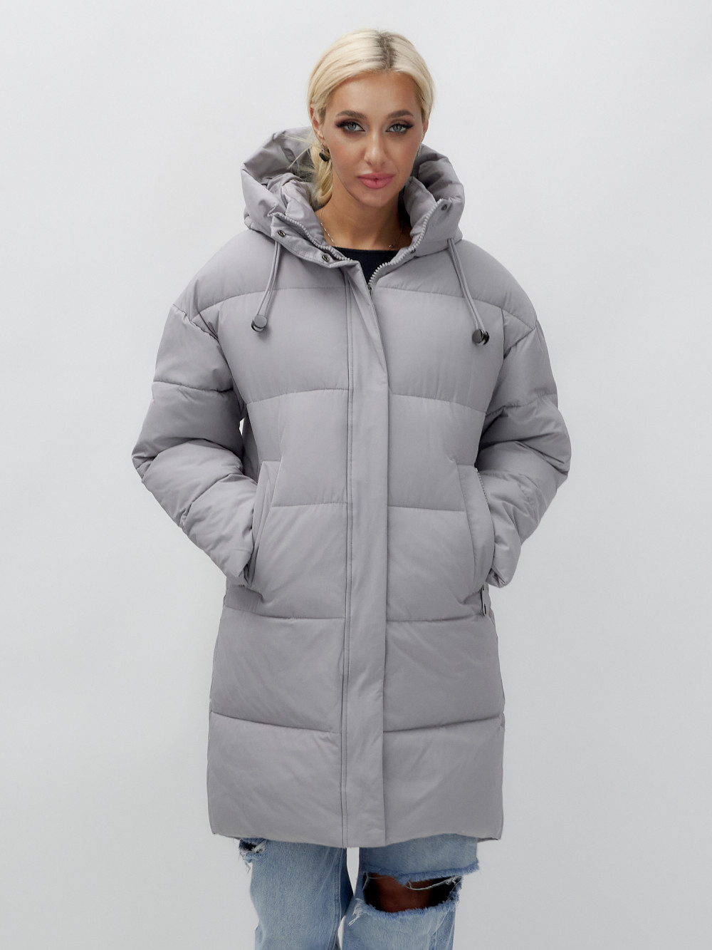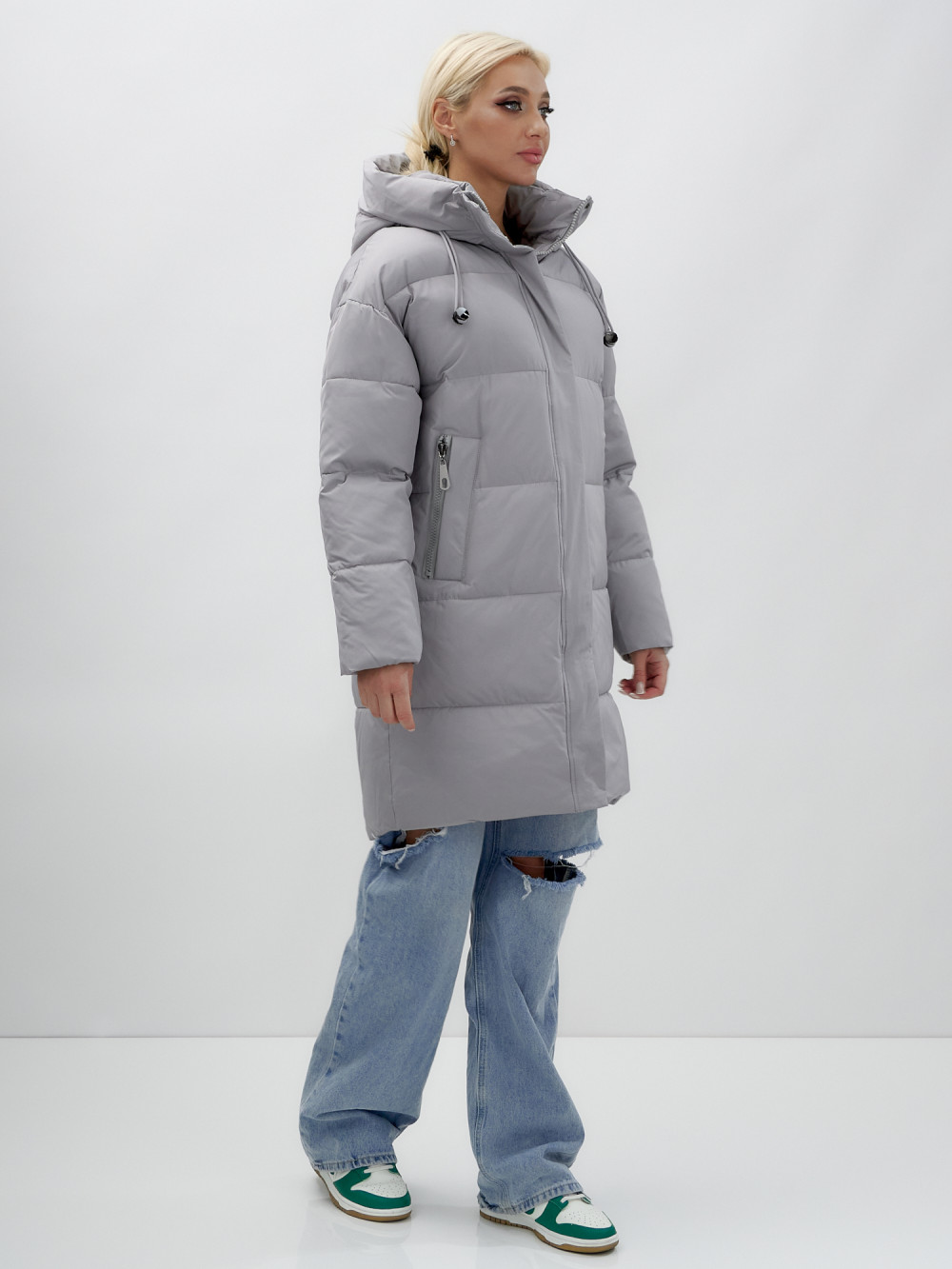 Куртка зимняя женская с капюшоном удлиненная стеганная серого цвета 9638Sr — MTFORCE