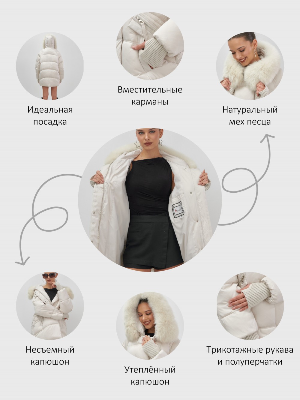 • Комплектация: Куртка/Капюшон/Мех песец натуральный