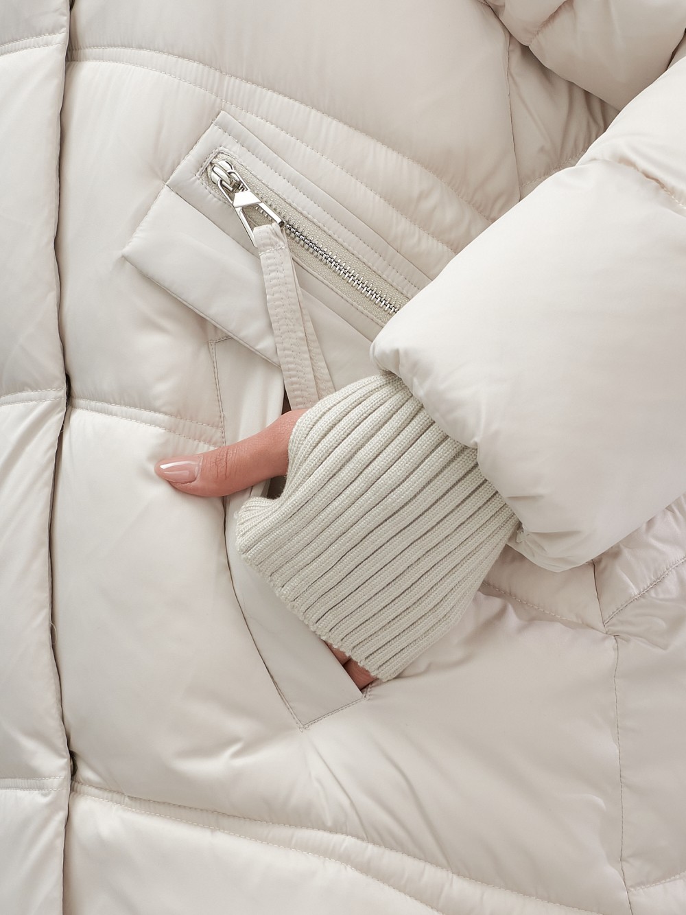 • Декоративные элементы: Вырез для пальца, Манжеты, Заклепки, Мех