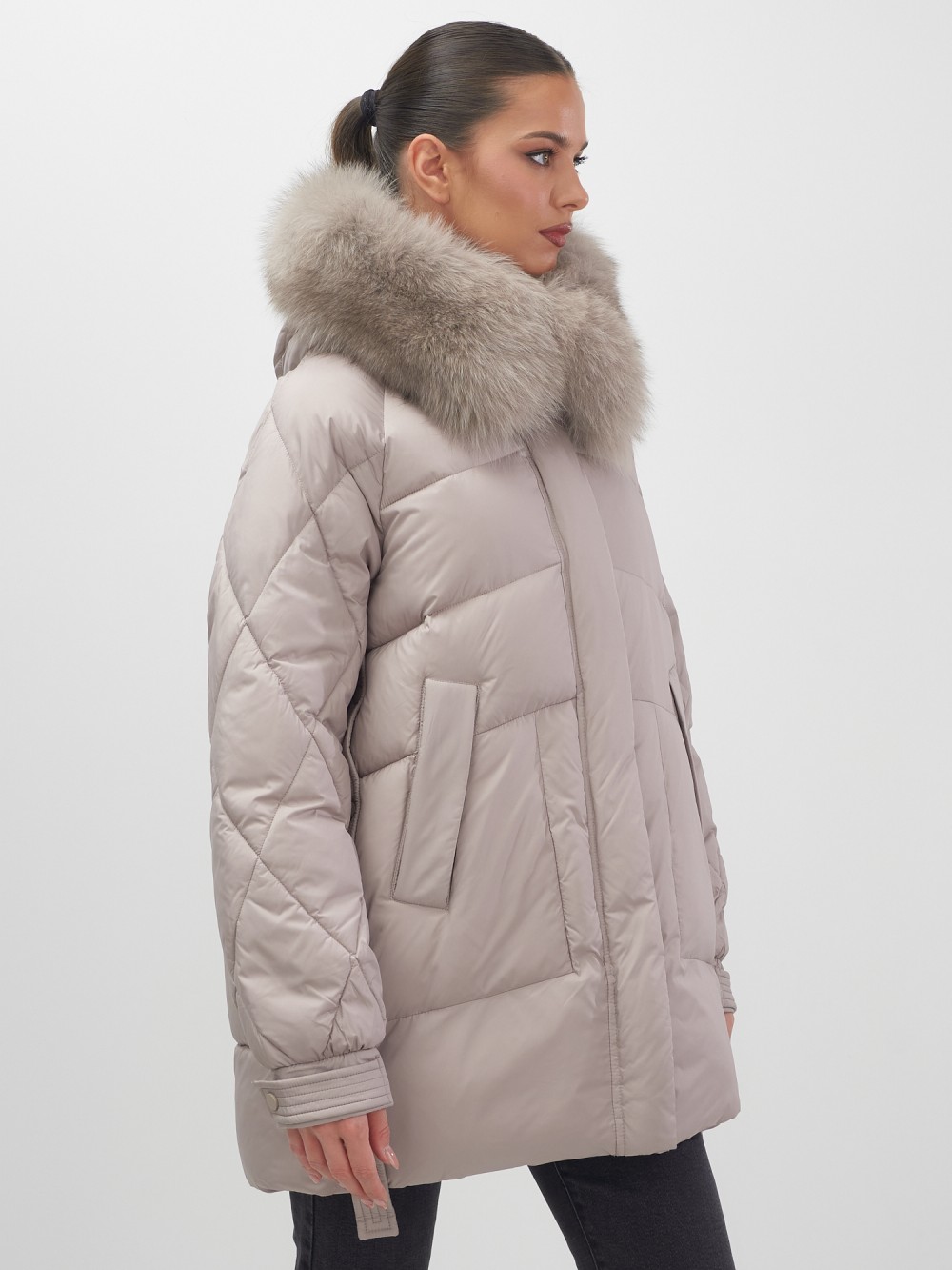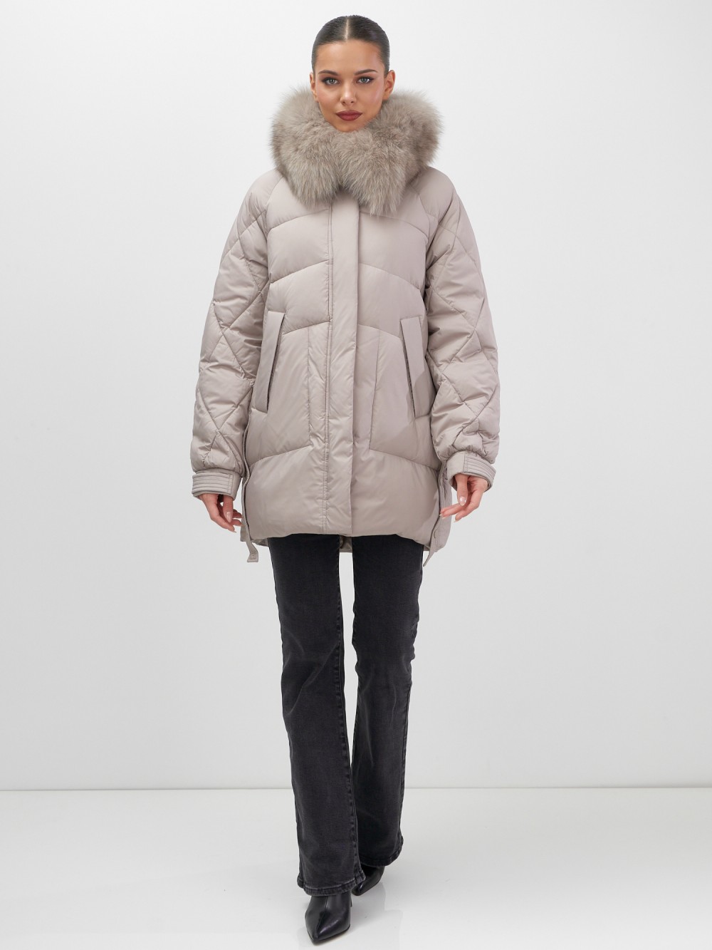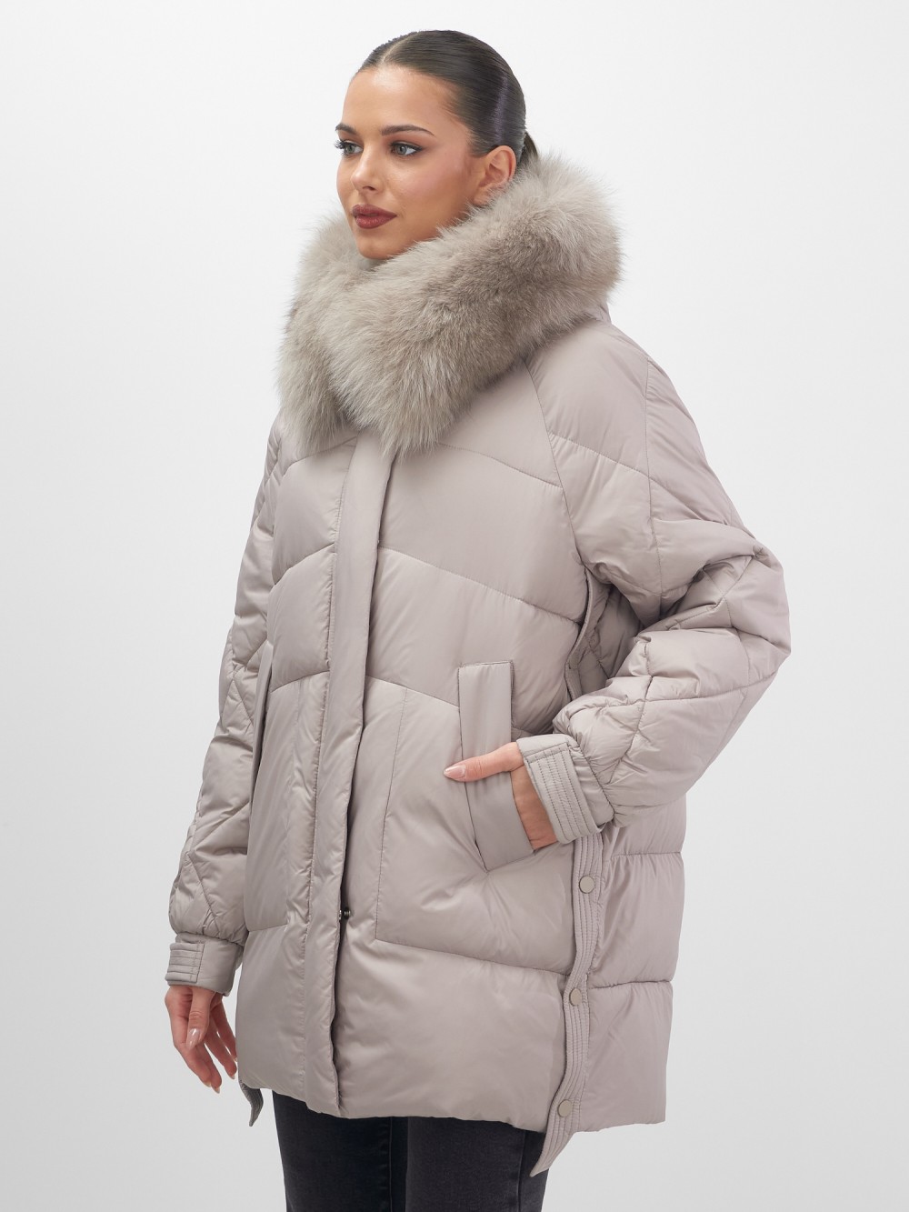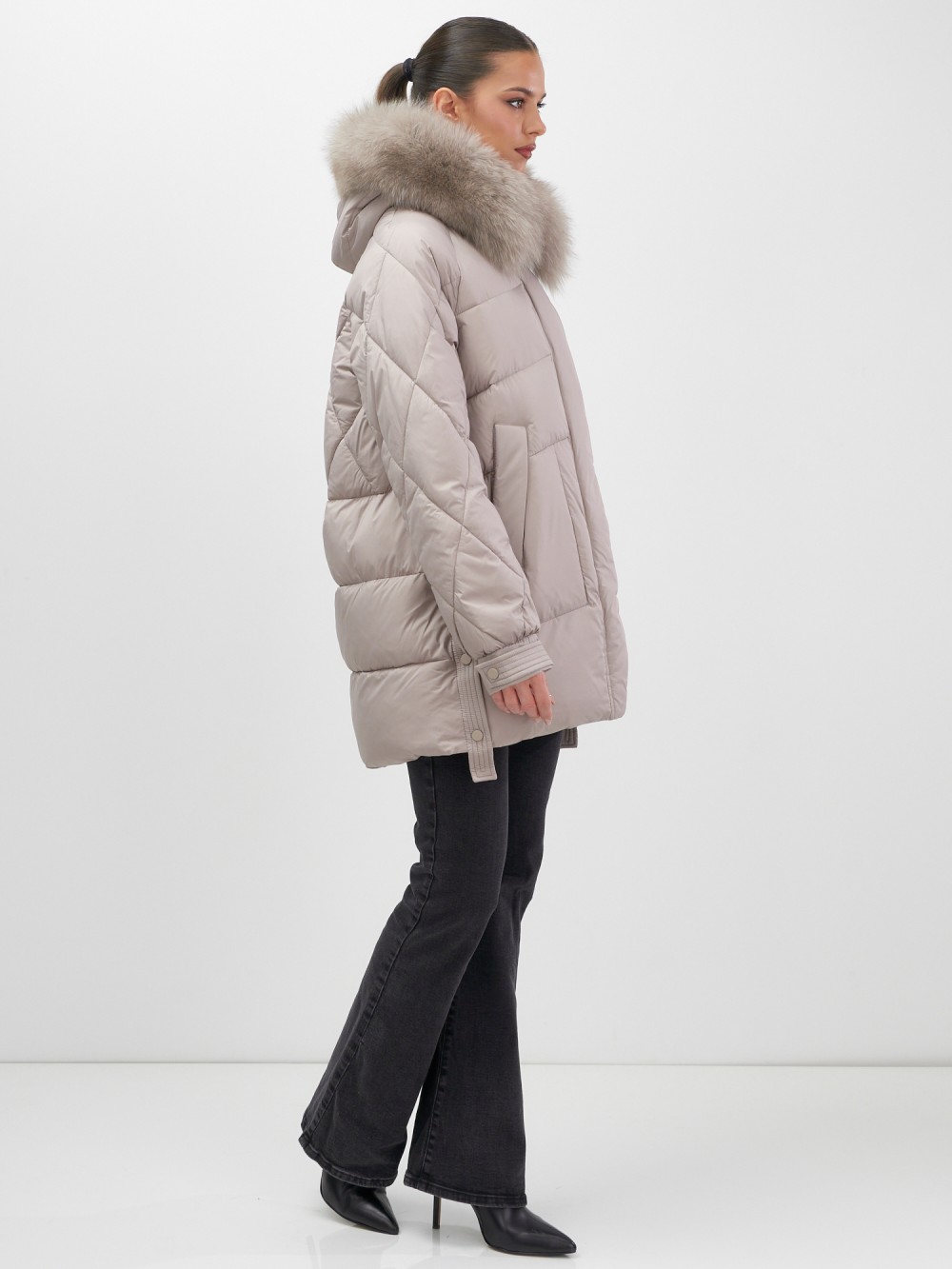 Четыре благородных оттенка – черный, бежевый, коричневый и светло-коричневый – идеально гармонируют с роскошным мехом песца, позволяя создавать элегантные образы для любого случая. Удлиненный силуэт до колена в сочетании с натуральным мехом песца делает фигуру более стройной и грациозной.