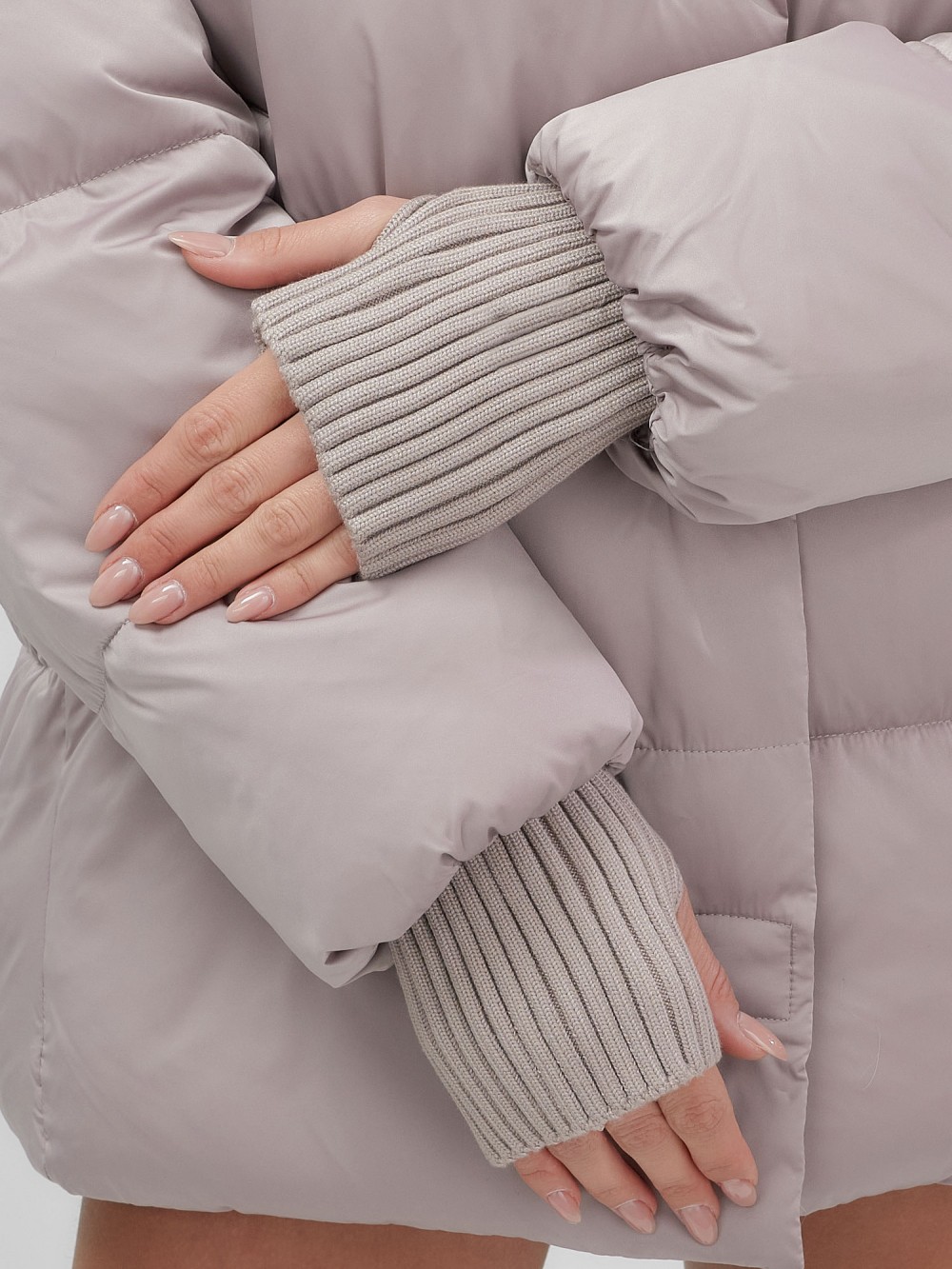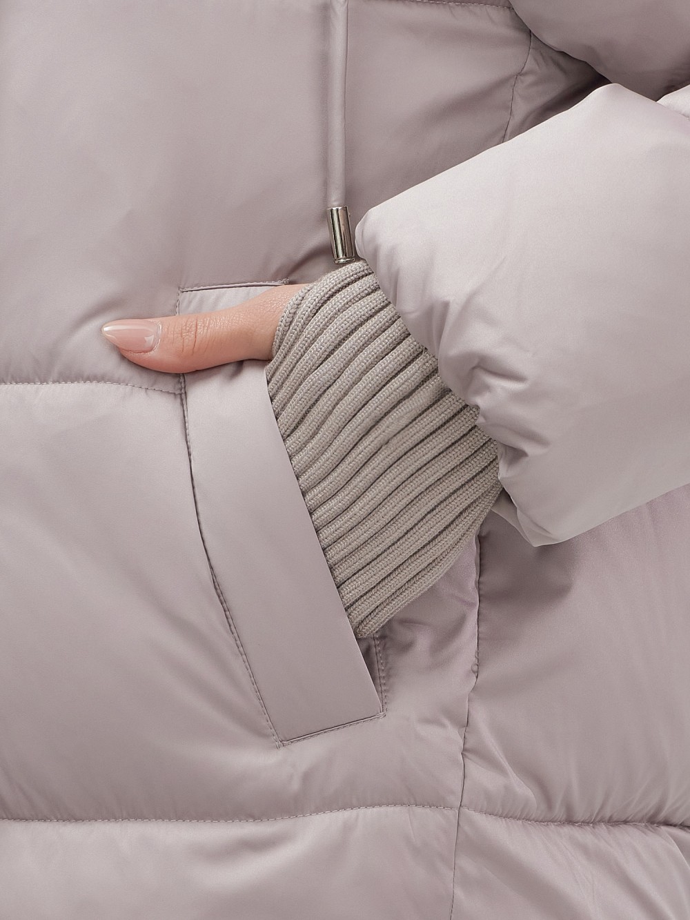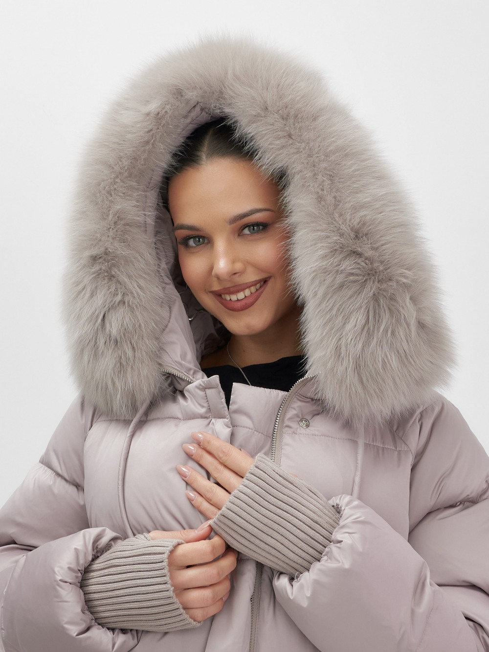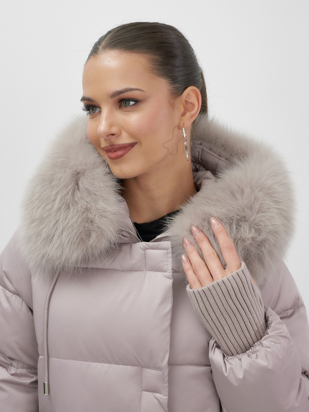 Куртка зимняя женская с мехом и капюшоном тренд светло-коричневого цвета 7658SK